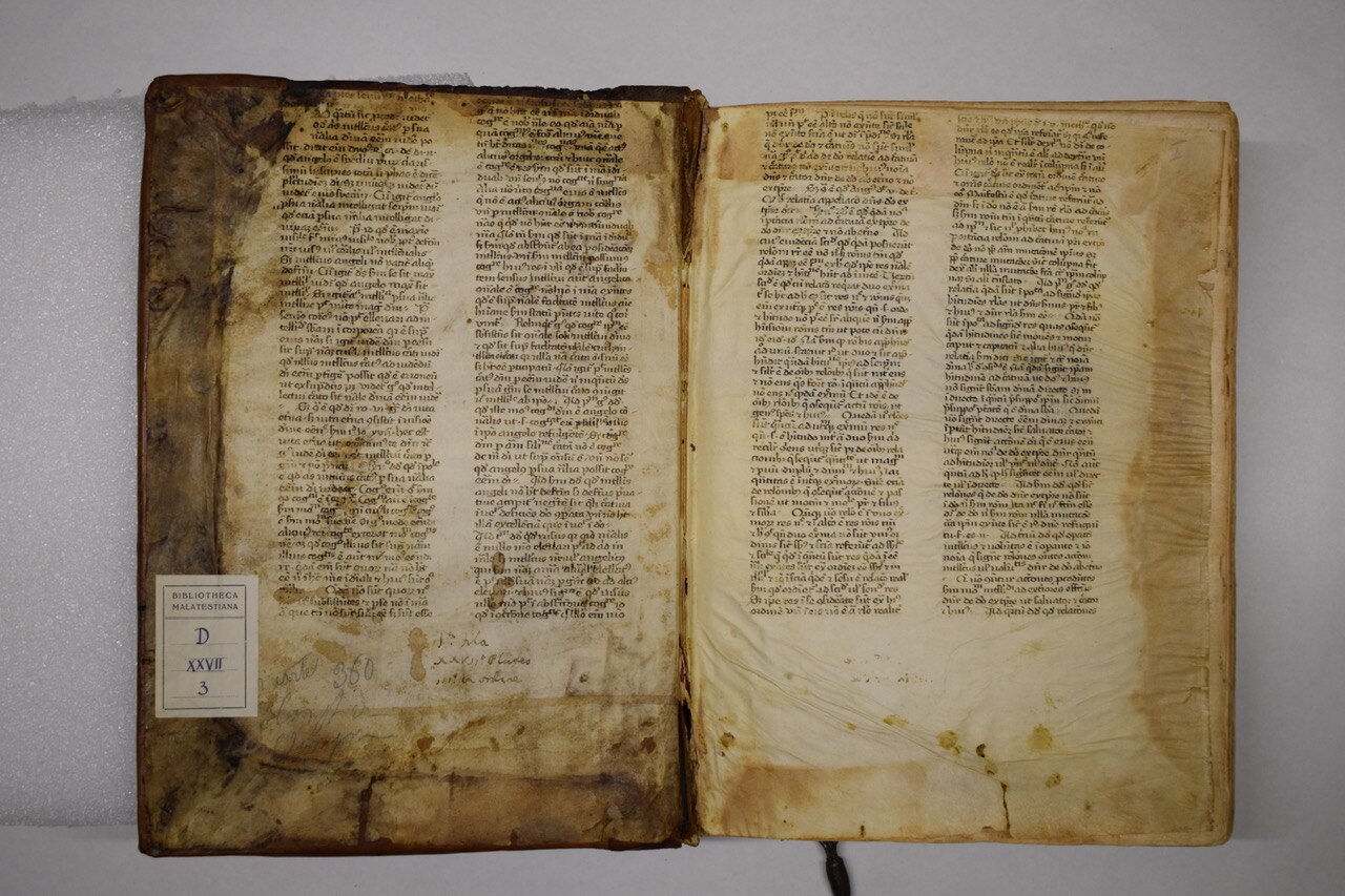 Nonostante la biblioteca Malatestiana (unico esempio di biblioteca umanistica perfettamente conservata, come ha riconosciuto l’Unesco che l’ha inserita nel Registro della Memoria del Mondo) assicuri le condizioni climatiche più favorevoli alla conservazione dei codici, il passare del tempo e la consultazione dei manoscritti, pur se effettuata con tutte le precauzioni del caso, provocano vari tipi di deterioramento. Di qui la necessità di interventi tempestivi di restauro e consolidamento. Si inizierà dal trattamento di eventuali tarme e dalla pulizia di superficie. Saranno quindi ricollocate le pagine distaccate, ripristinati e trattati con creme protettive la copertina in cuoio e i sostegni in legno.