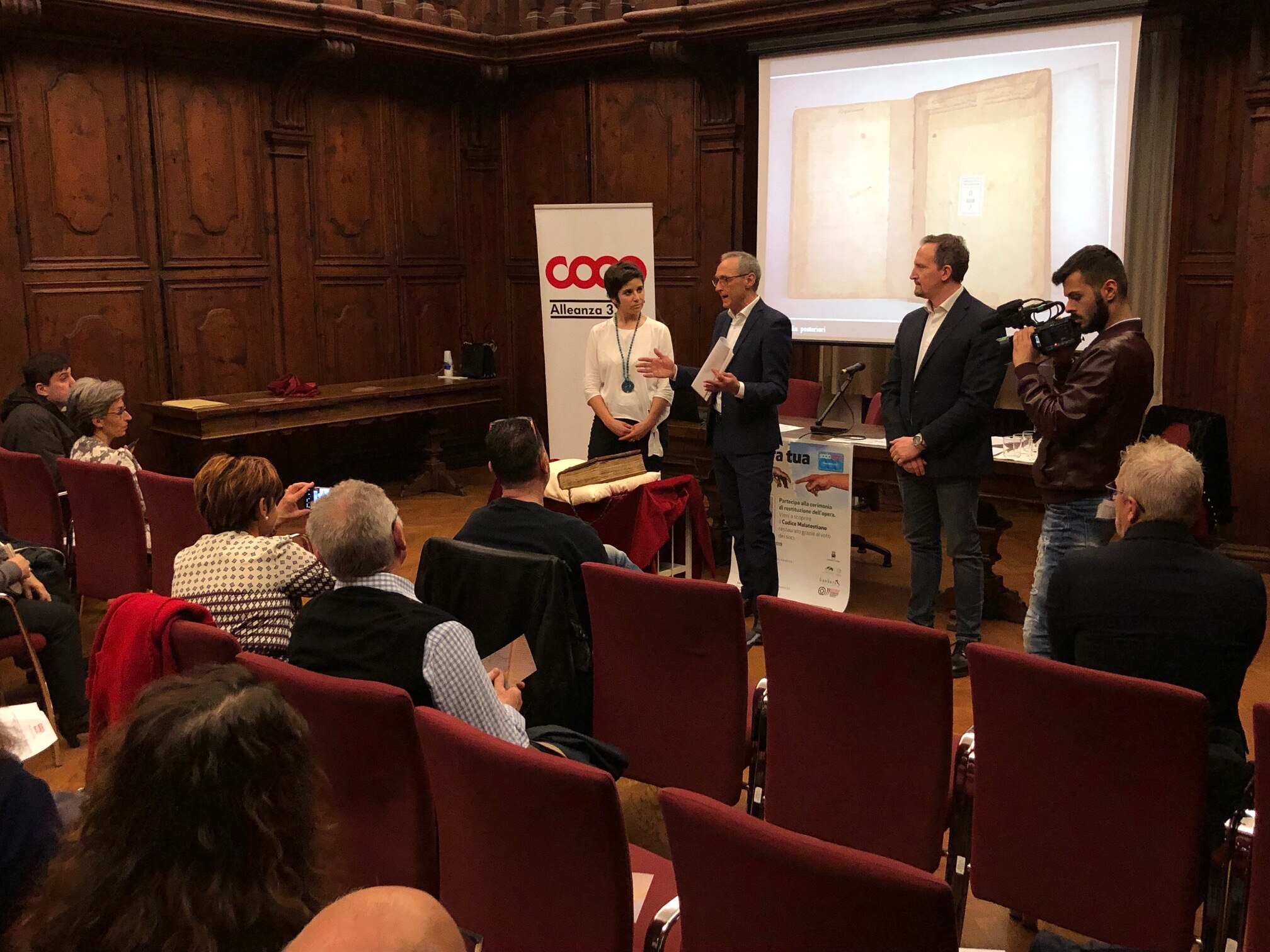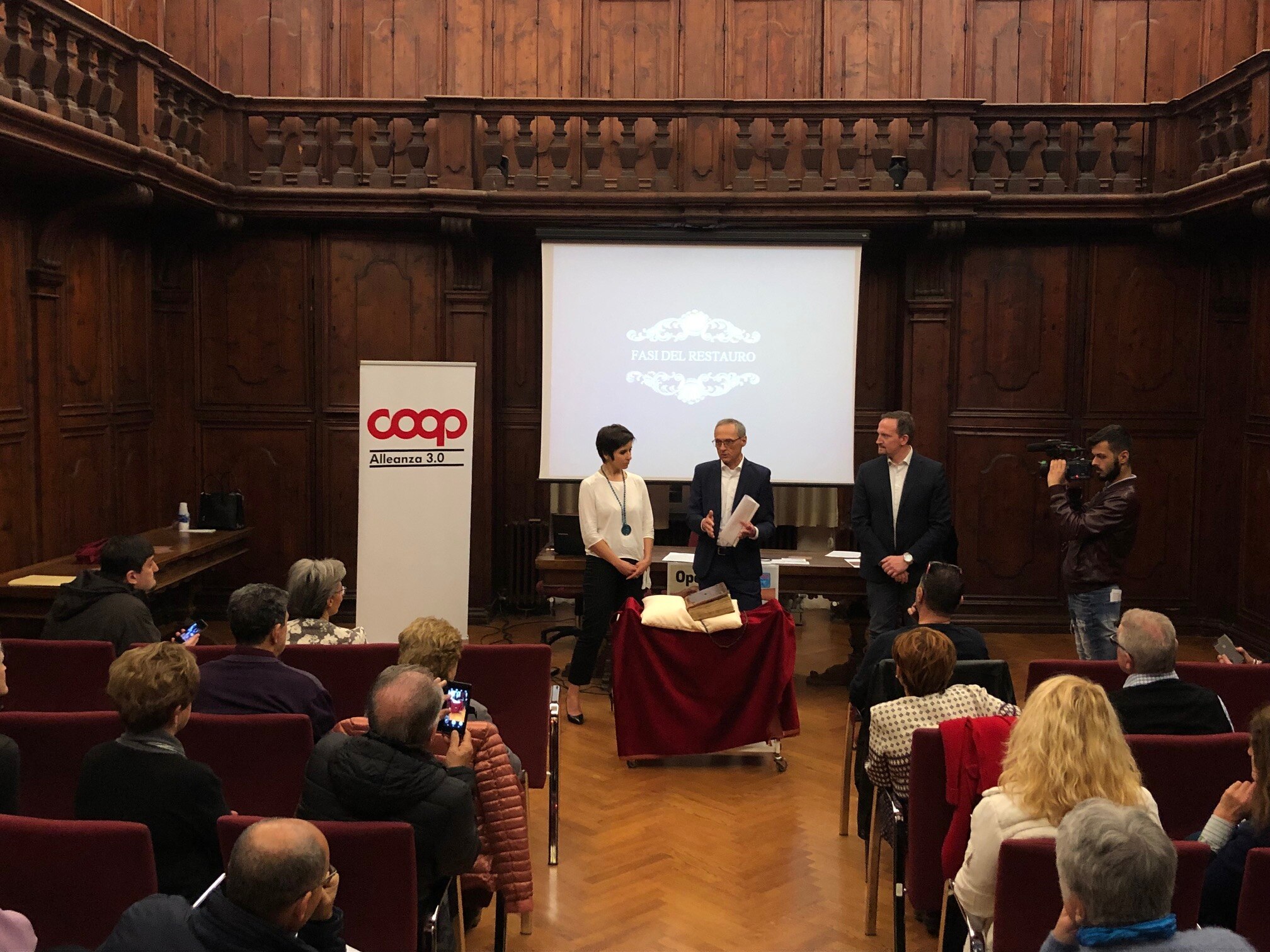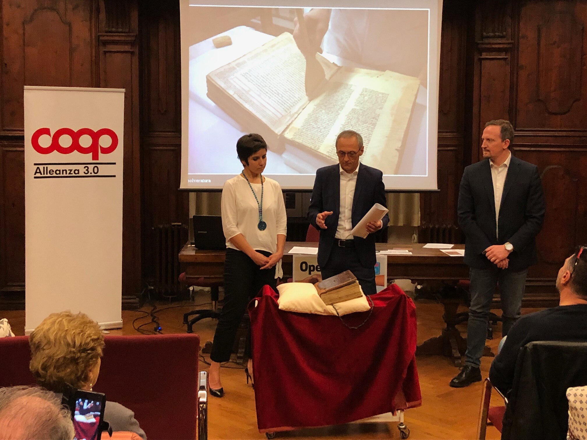 L'inaugurazione. Sabato 13 aprile si è tenuta presso la Biblioteca Malatestiana l'inaugurazione del Codice malatestiano, completamente restaurato. All’appuntamento hanno partecipato l’assessore comunale alla Cultura Christian Castorri, il coordinatore Politiche sociali Coop Alleanza 3.0 Enrico Quarello, il presidente di Fondaco Italia Enrico Bressan, la Dirigente del Servizio Biblioteca Malatestiana Cultura e Turismo Elisabetta Bovero, le responsabili del restauro Formula Servizi Silvia Bondi e Maria Roberta Stanzani e in rappresentanza dei soci Coop la Consigliera di amministrazione Coop Alleanza 3.0 e Presidente Zona soci Cesena Forlì, Veronica Bridi.