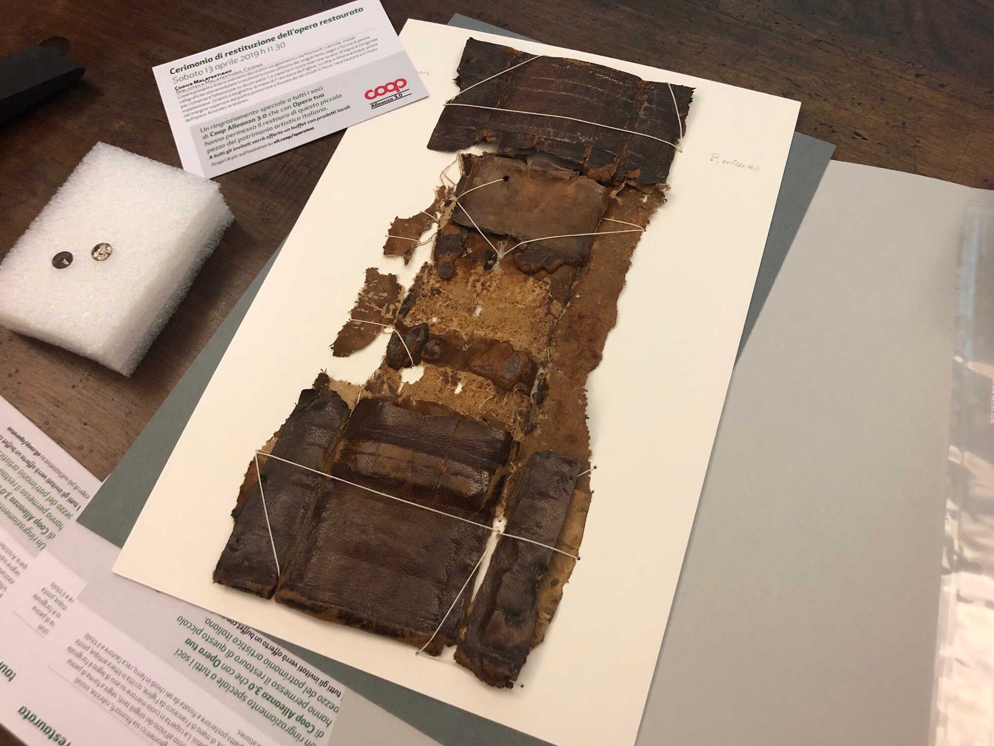 - Intervento di ripristino della coperta in cuoio e delle assi in legno che la sorreggono