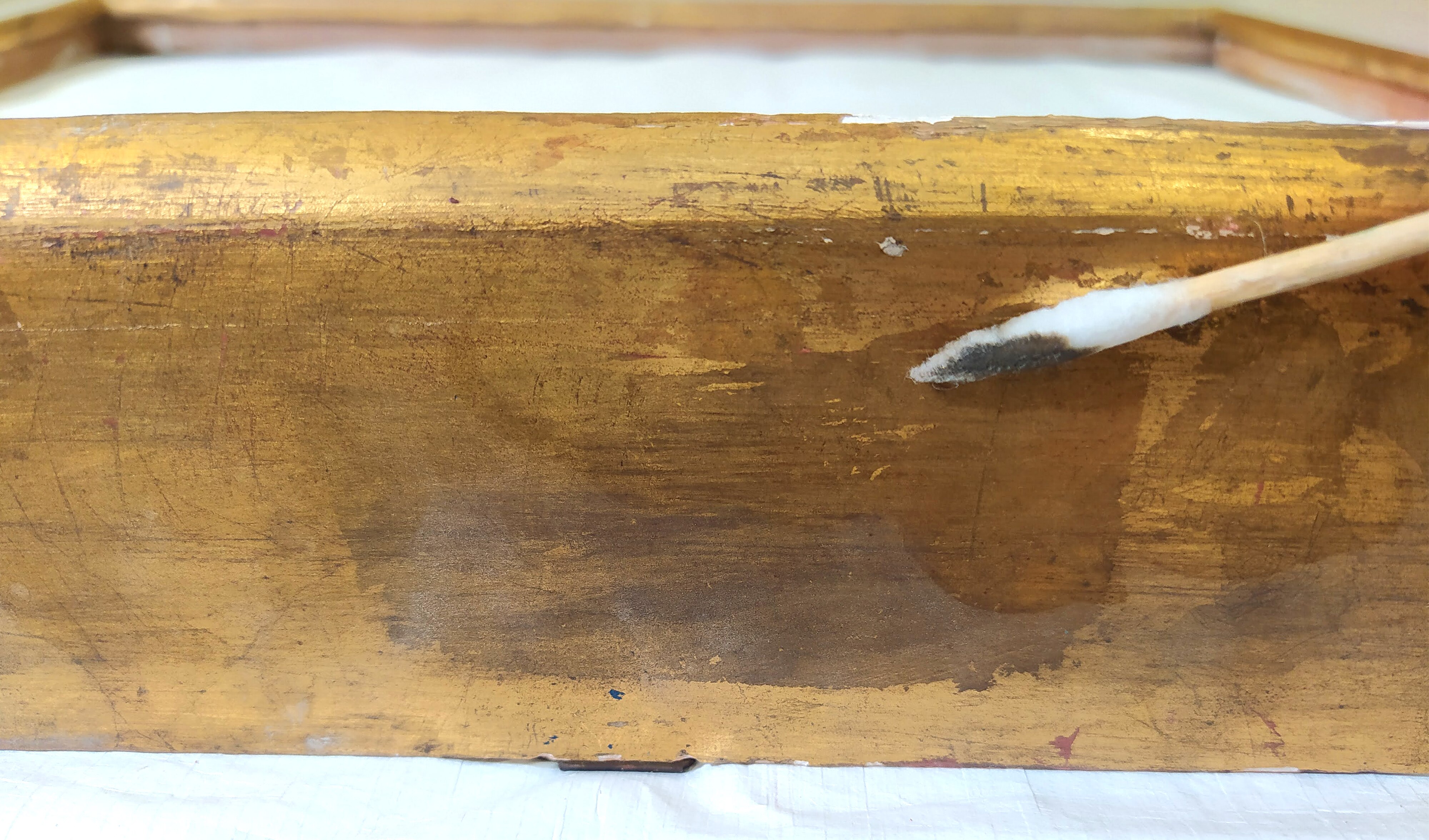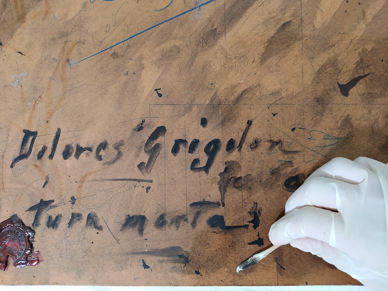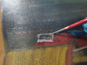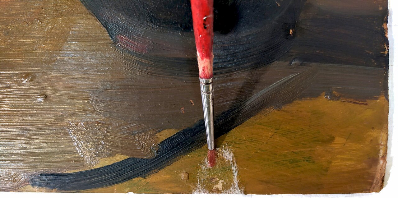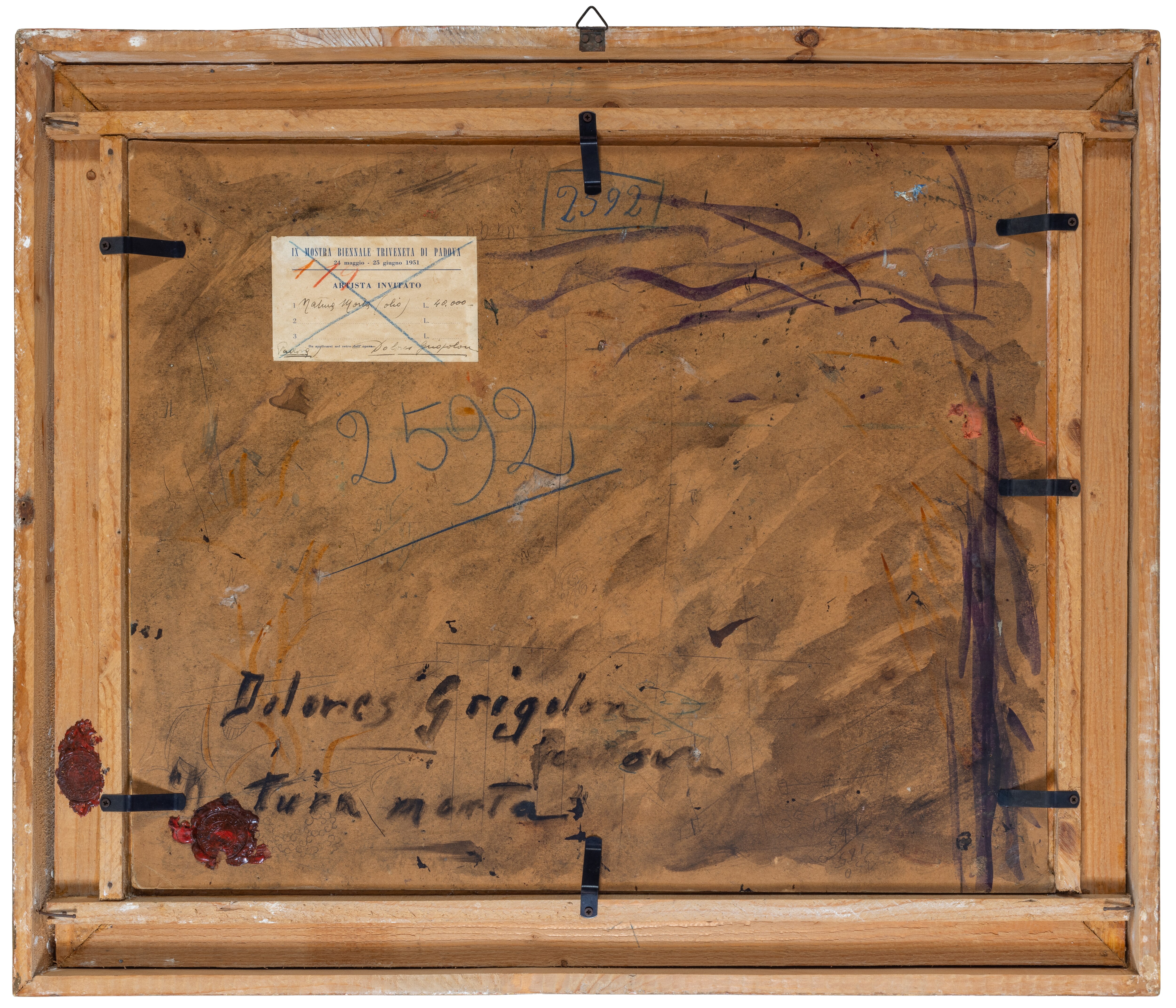 Al via il restauro. Ecco le immagini del ritiro e movimentazione dell'opera dal deposito del Museo d'Arte agli Eremitani di Padova. L'opera è stata sottoposta allo smontaggio della cornice dal dipinto, e all'osservazione ravvicinata e analisi dello stato di conservazione, allo stato di fatto. A seguito della spolveratura e rimozione del particellato incoerente con pennelli a setola morbida e aspiratore, sul recto e verso del dipinto e della cornice (con cautela laddove ci sono distacchi di colore), sulla pellicola pittorica del dipinto sono stati attuati fermatura e consolidamento localizzato in corrispondenza dei distacchi e sollevamenti di colore con resina sintetica in soluzione, velinatura di protezione e riadesione a caldo mediante l'utilizzo del termocauterio. Si è quindi proceduto alla pulitura con tensioattivo della superficie pittorica del dipinto e del supporto in cartone sul retro, alla rimozione delle sgocciolature di cera, al successivo incollaggio dei frammenti in distacco del sigillo in ceralacca presente sul verso del dipinto e infine al consolidamento e riadesione dei bordi frastagliati, scomposti o piegati del supporto in cartone, con adesivo cellulosico e asciugatura sotto peso. L'intervento è eseguito dalla restauratrice Valeria Saccarola.