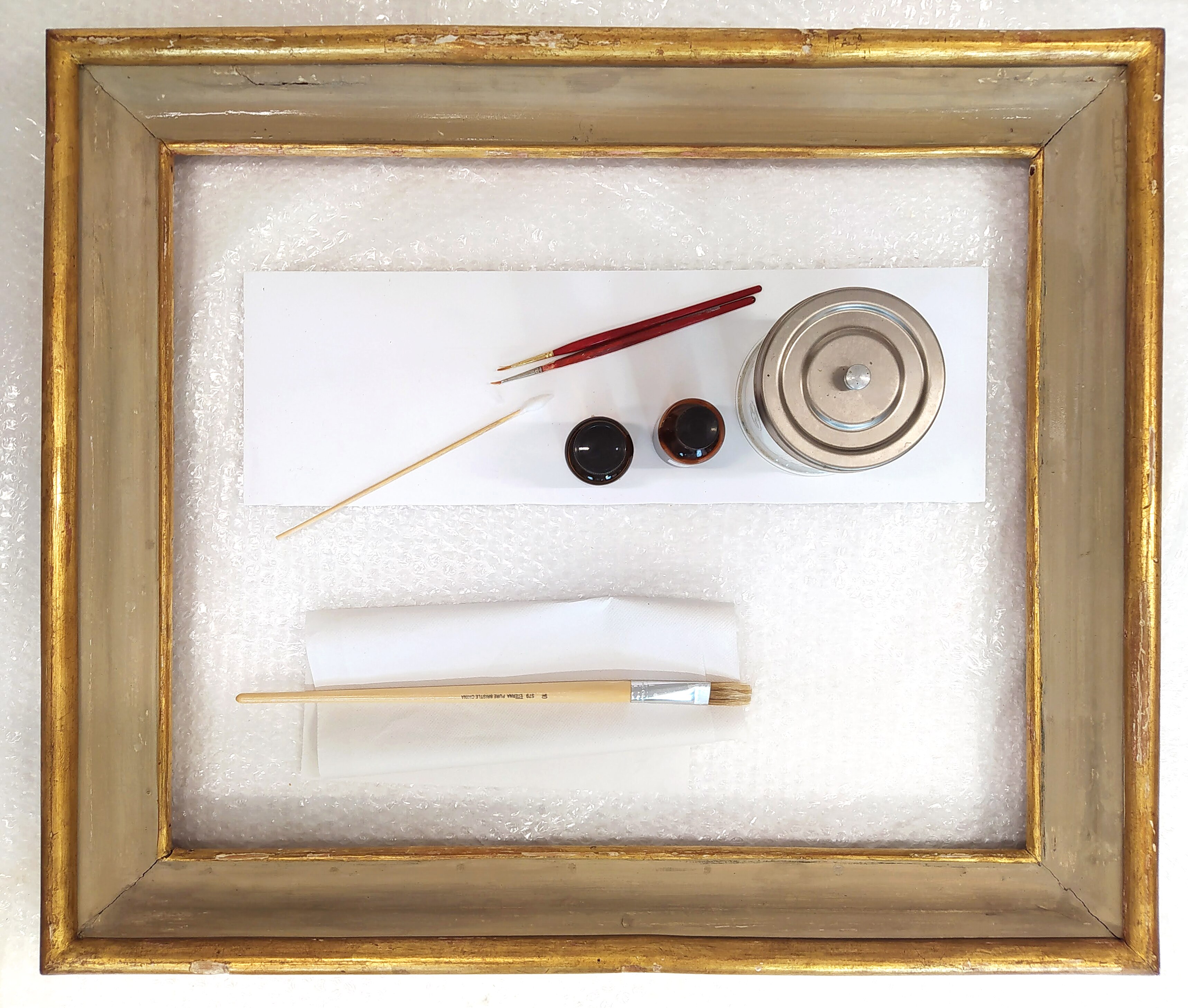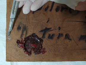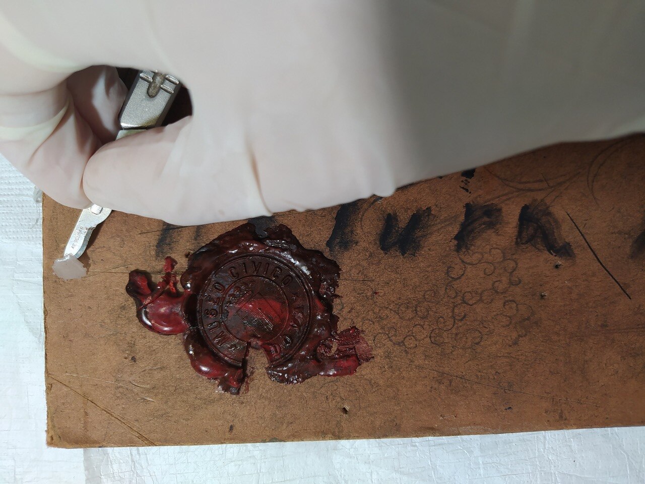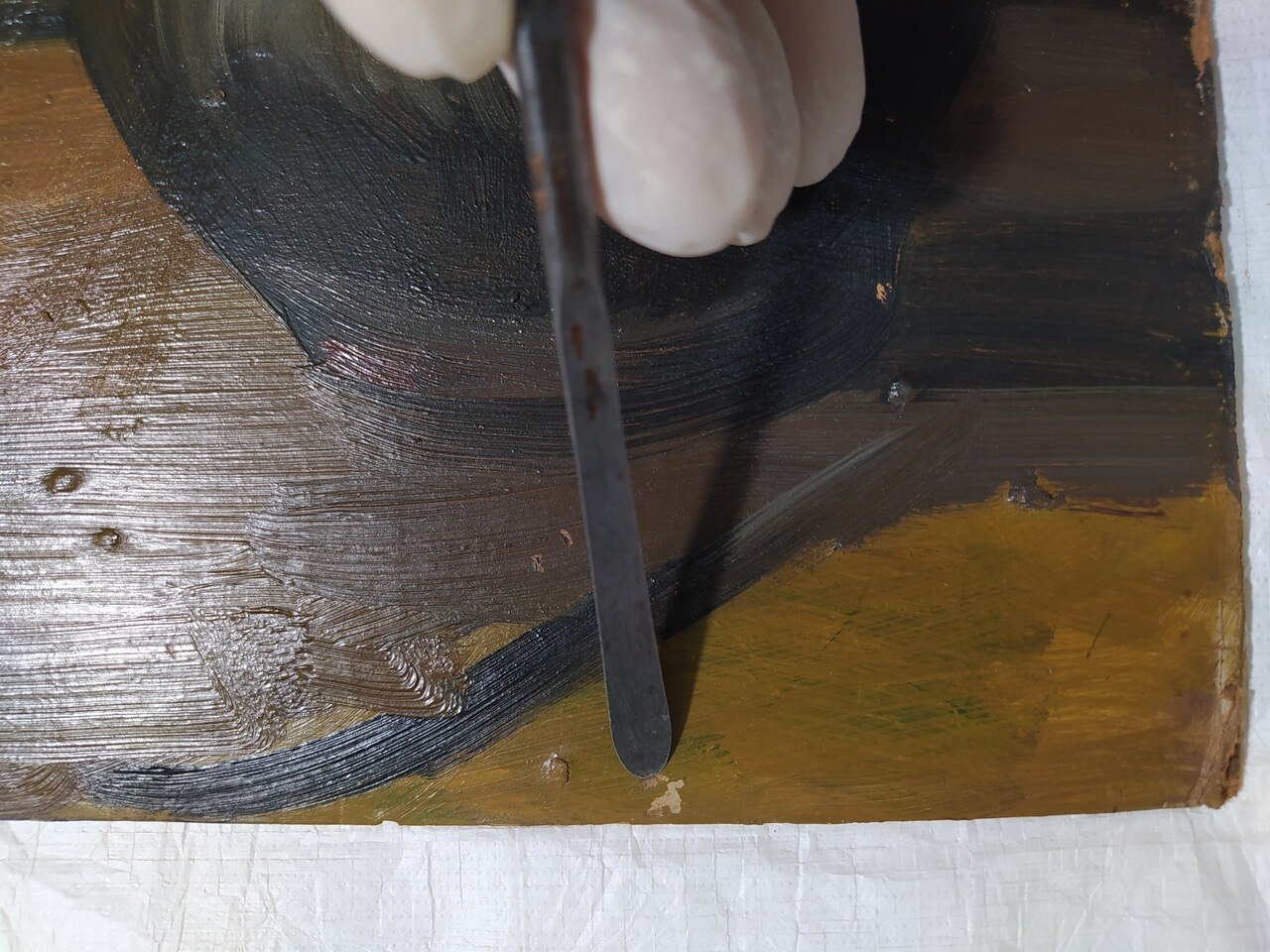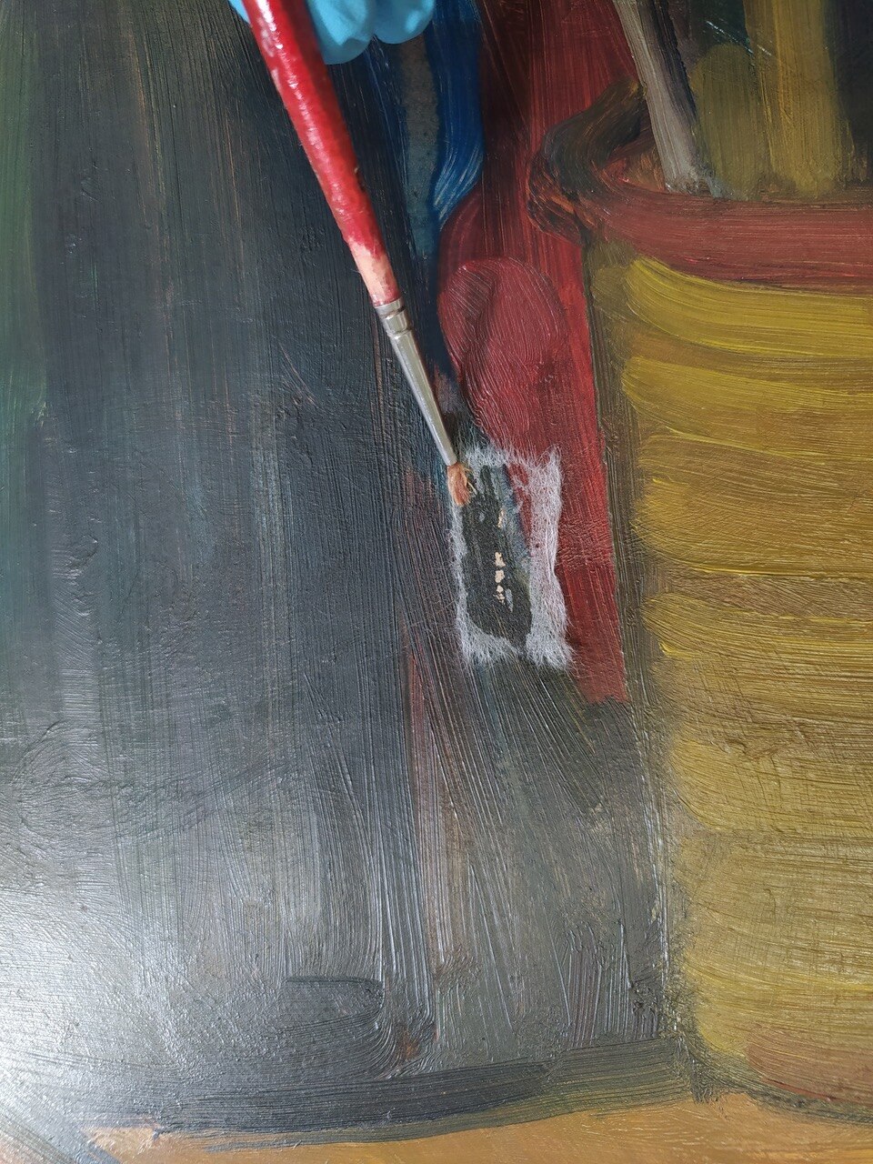 Al via il restauro. Ecco le immagini del ritiro e movimentazione dell'opera dal deposito del Museo d'Arte agli Eremitani di Padova. L'opera è stata sottoposta allo smontaggio della cornice dal dipinto, e all'osservazione ravvicinata e analisi dello stato di conservazione, allo stato di fatto. A seguito della spolveratura e rimozione del particellato incoerente con pennelli a setola morbida e aspiratore, sul recto e verso del dipinto e della cornice (con cautela laddove ci sono distacchi di colore), sulla pellicola pittorica del dipinto sono stati attuati fermatura e consolidamento localizzato in corrispondenza dei distacchi e sollevamenti di colore con resina sintetica in soluzione, velinatura di protezione e riadesione a caldo mediante l'utilizzo del termocauterio. Si è quindi proceduto alla pulitura con tensioattivo della superficie pittorica del dipinto e del supporto in cartone sul retro, alla rimozione delle sgocciolature di cera, al successivo incollaggio dei frammenti in distacco del sigillo in ceralacca presente sul verso del dipinto e infine al consolidamento e riadesione dei bordi frastagliati, scomposti o piegati del supporto in cartone, con adesivo cellulosico e asciugatura sotto peso. L'intervento è eseguito dalla restauratrice Valeria Saccarola.