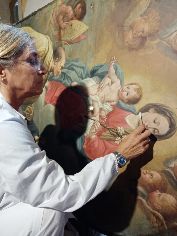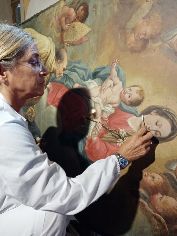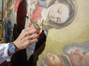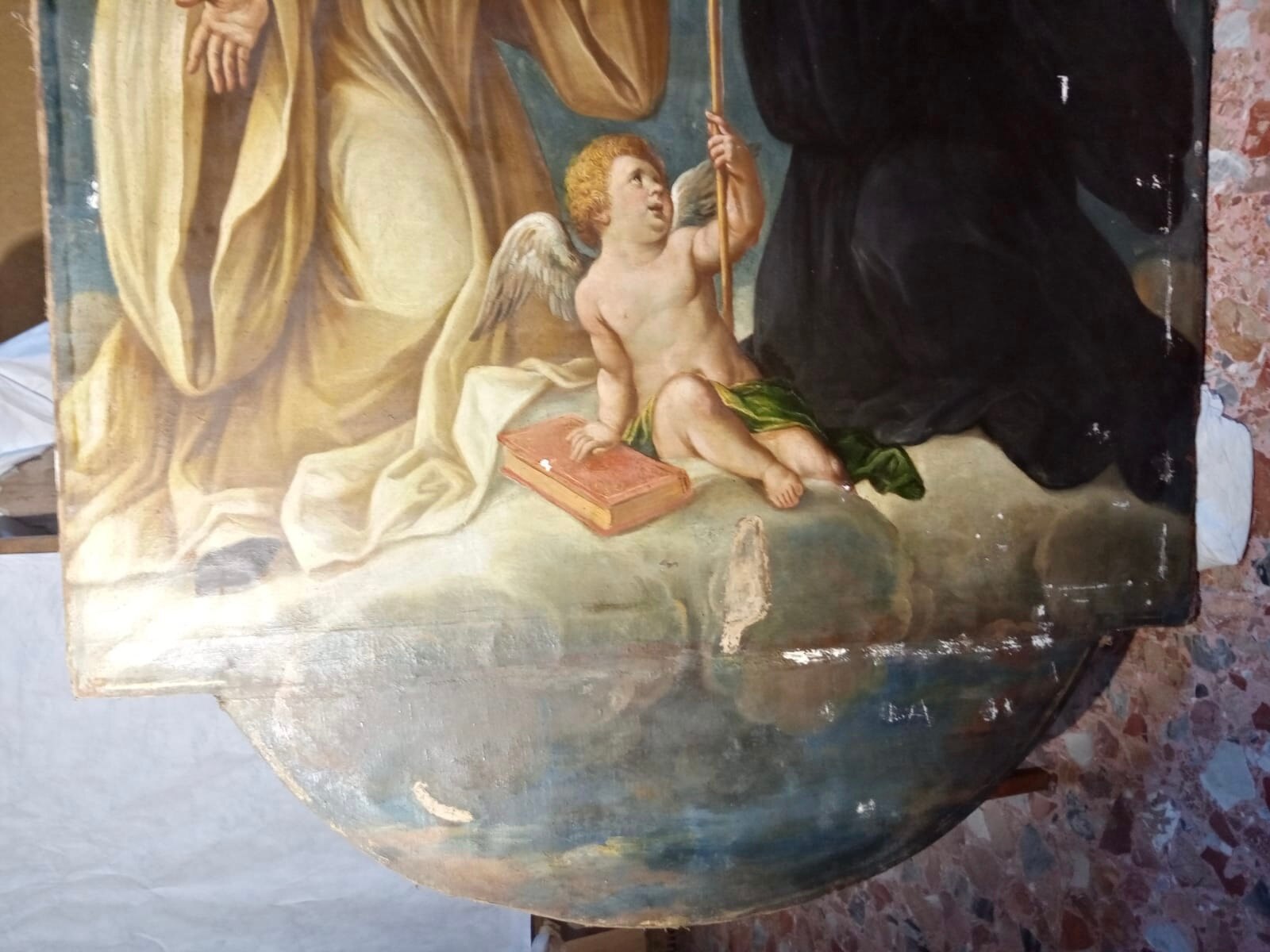 Verso la fine del restauro. Siamo quasi alle battute finali del restauro dell'opera di Lucia Ricci: ecco le immagini del ritocco pittorico dopo la fase di stuccatura delle lacune.