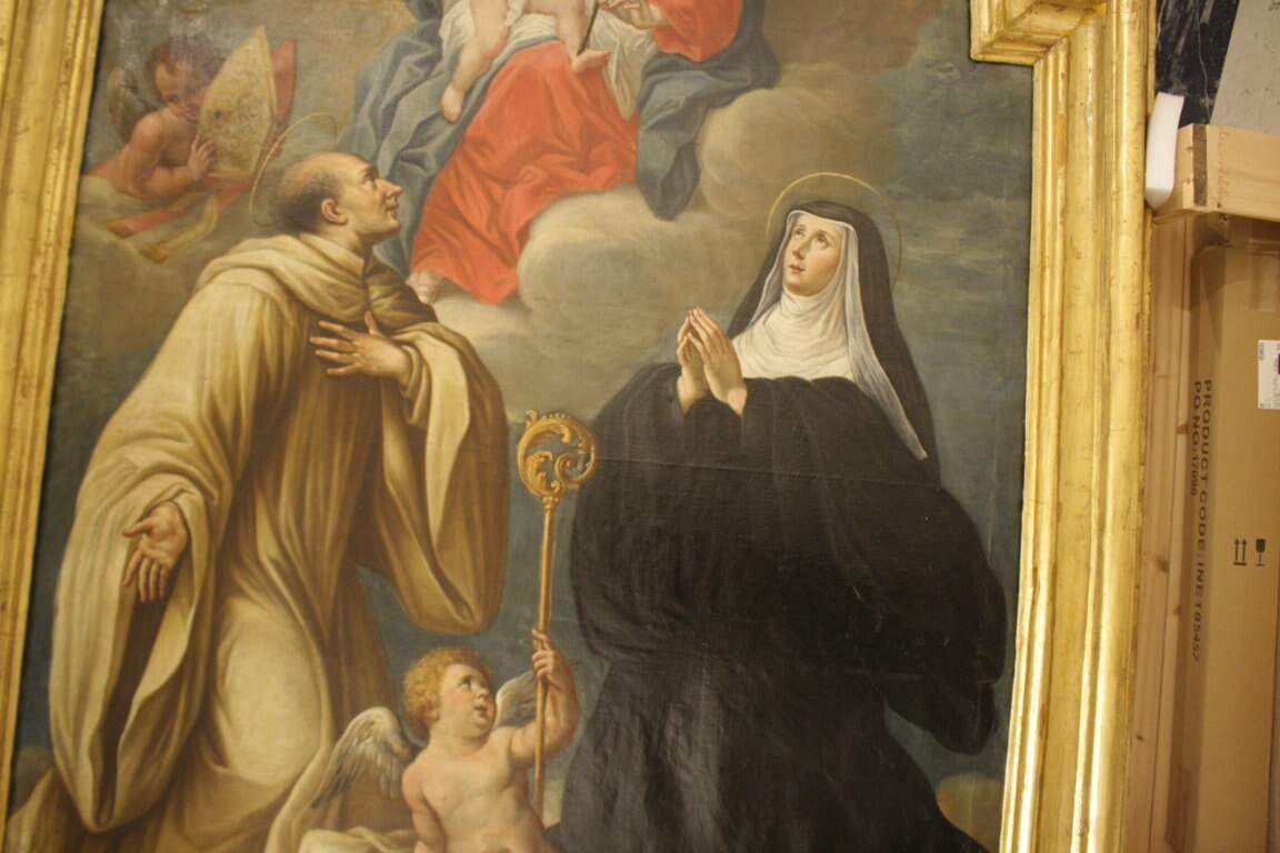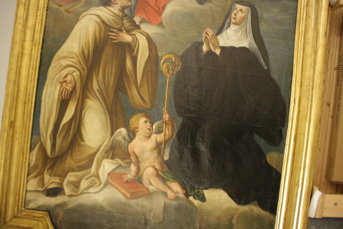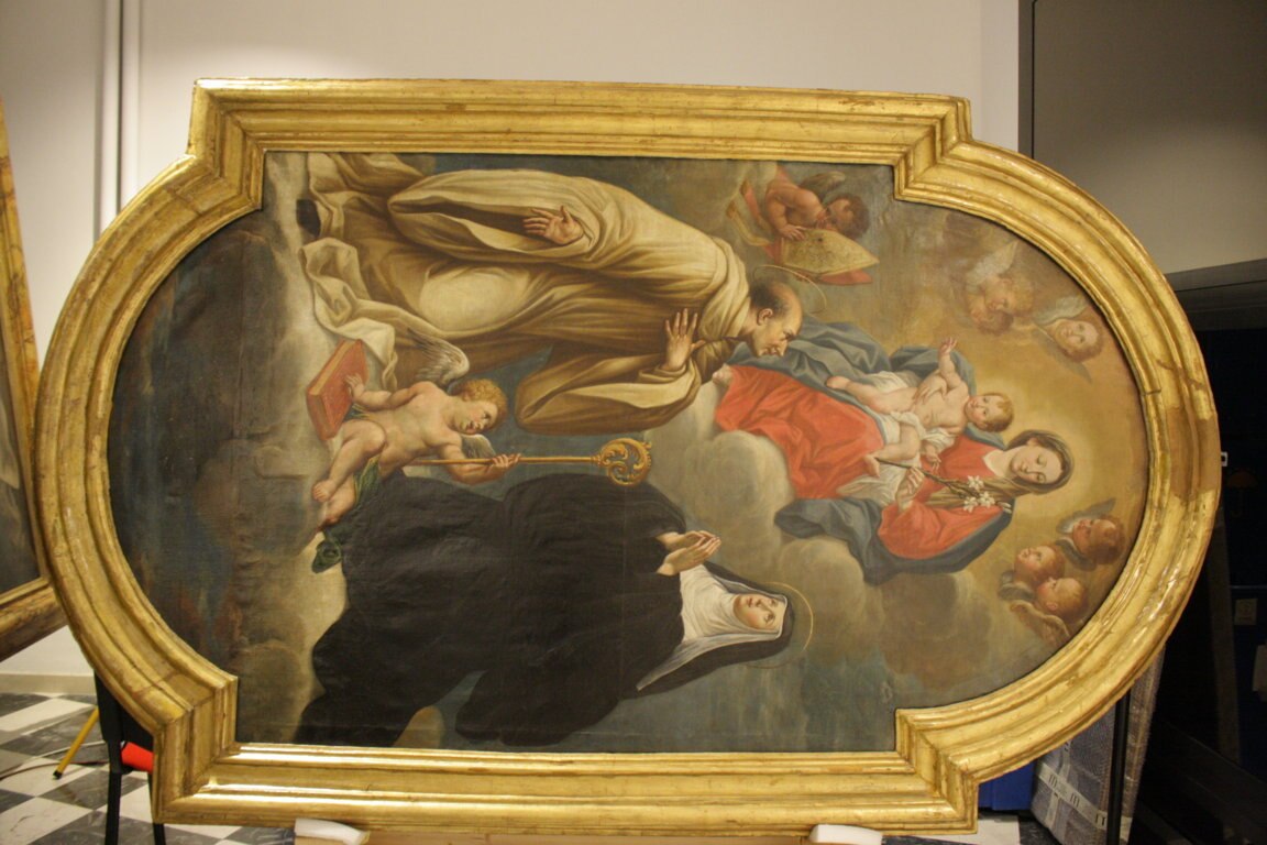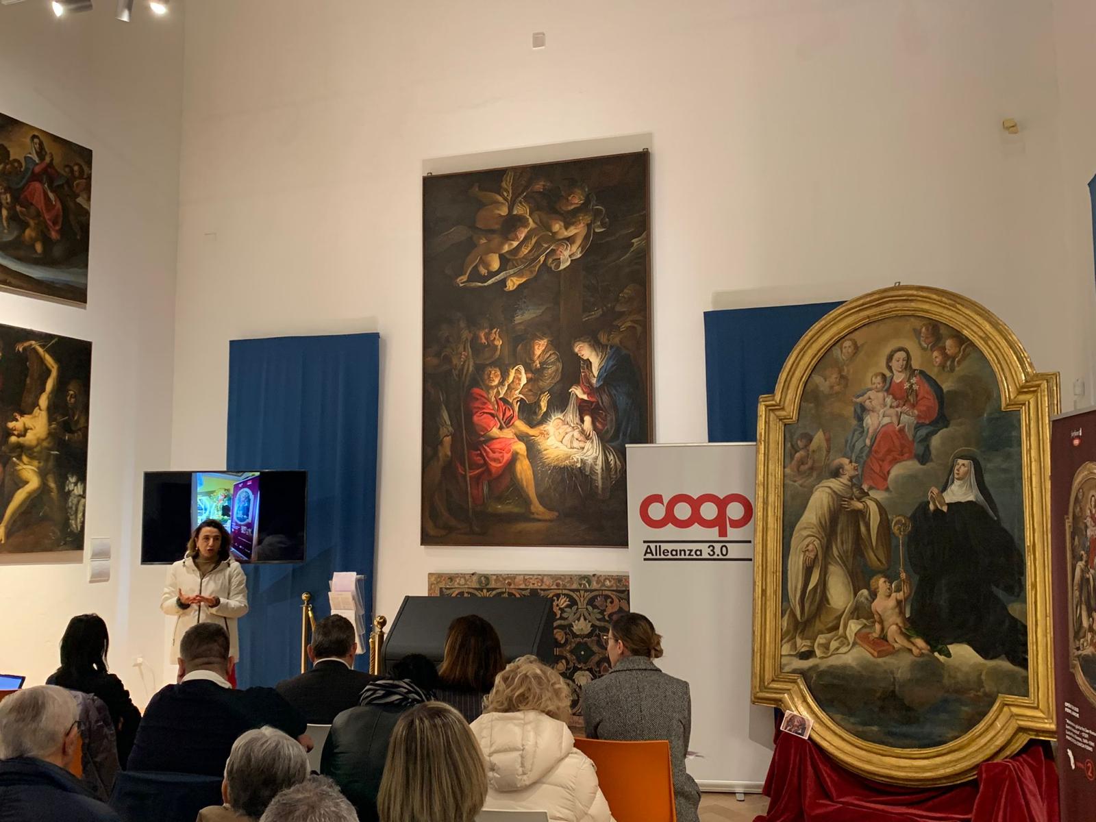 La riconsegna ufficiale. È tornata a splendere nella Pinacoteca Civica di Fermo la pala d’altare “Madonna in gloria fra San Romualdo e Santa Scolastica”: oggi la restituzione ufficiale dopo gli interventi di restauro, eseguito dalla dott.ssa Francesca Ascenzi, organizzata nella Sala del Seicento di Palazzo dei Priori, con la partecipazione del Sindaco, Paolo Calcinaro, dell’Assessora comunale alle Politiche culturali e beni culturali, Micol Lanzidei, della Consigliera di Amministrazione di Coop Alleanza 3.0 Meri Marziali e del presidente di Fondaco Enrico Bressan.