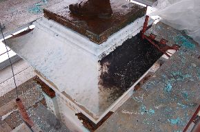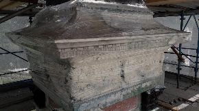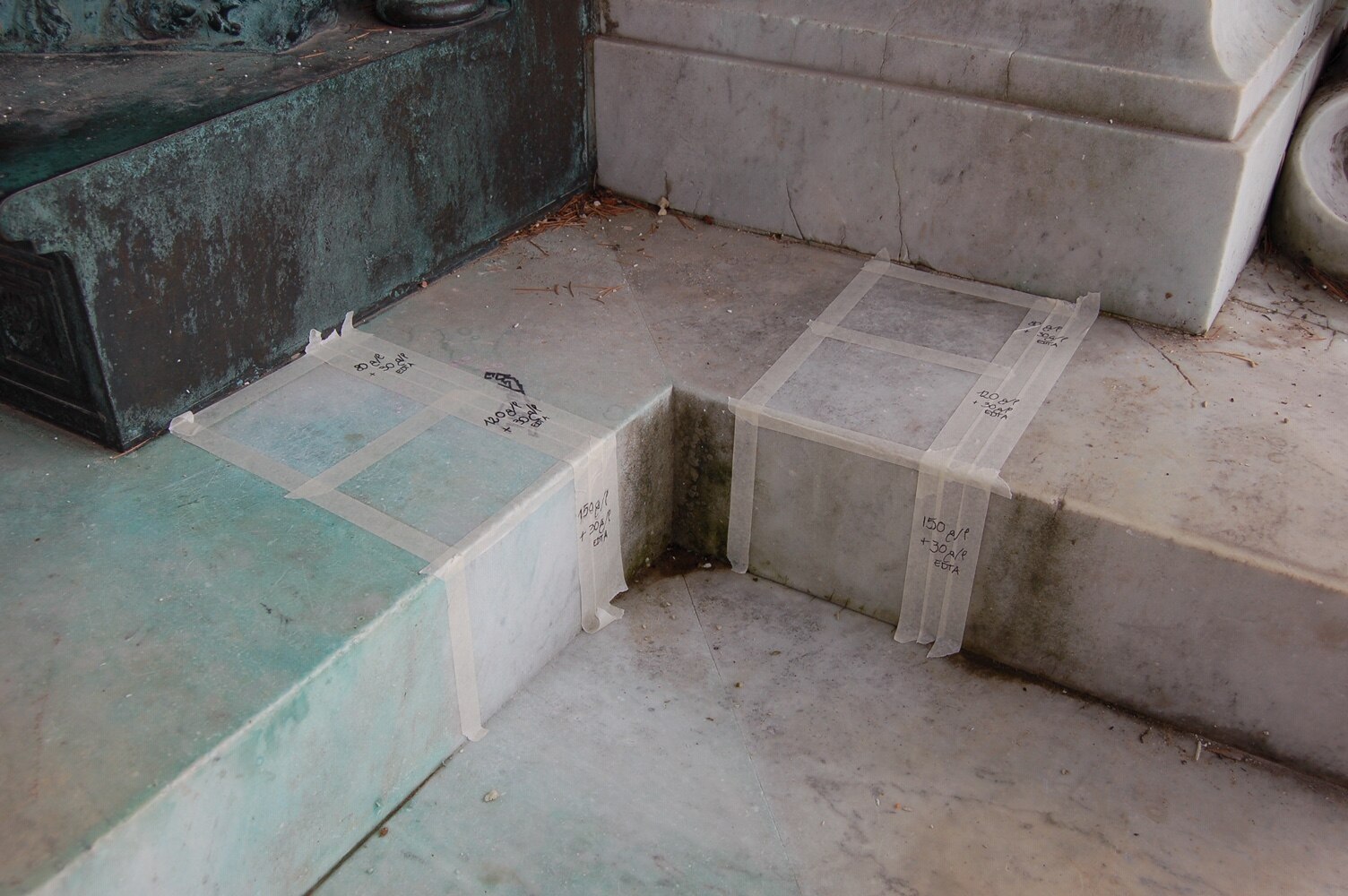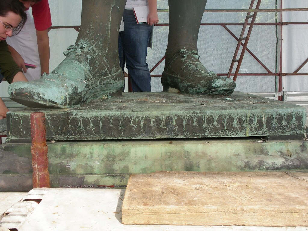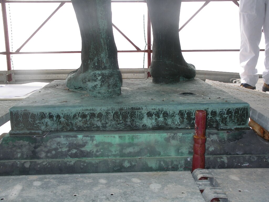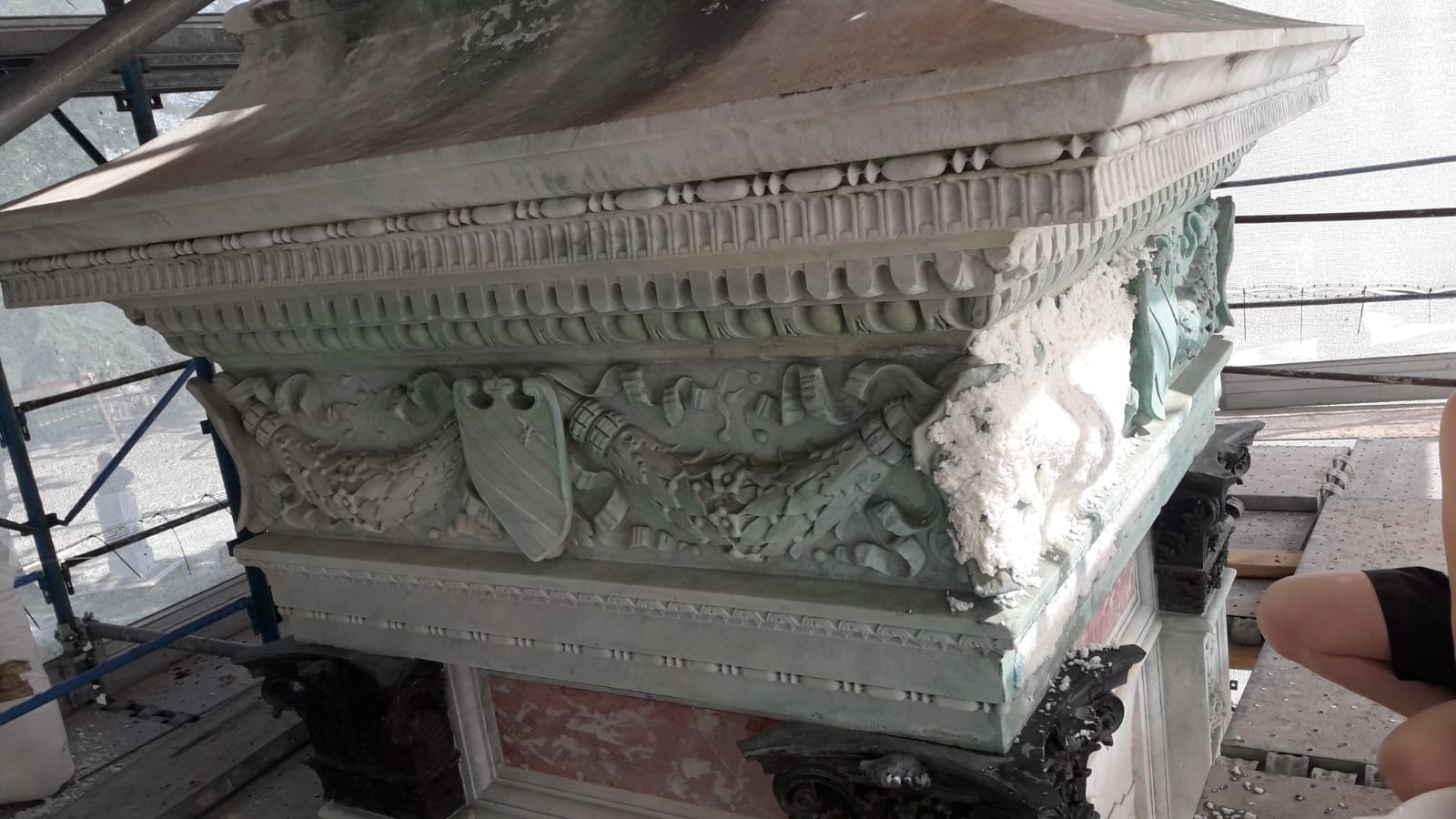 Il restauro del monumento prevede la ripulitura delle patine biologiche depositate nel tempo per tutte le parti costituenti l’opera: metalliche e lapidee. Sarà inoltre necessario riqualificare le pavimentazioni dell’area basamentale del monumento, compreso il sentiero di accesso.