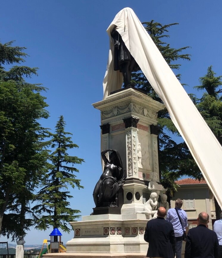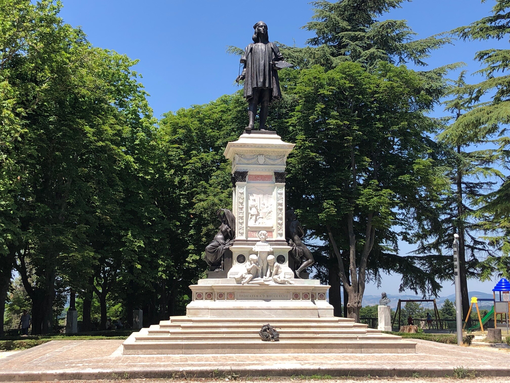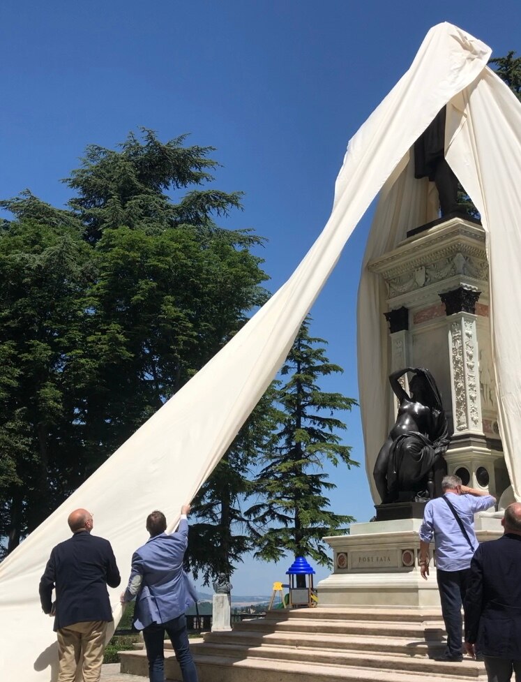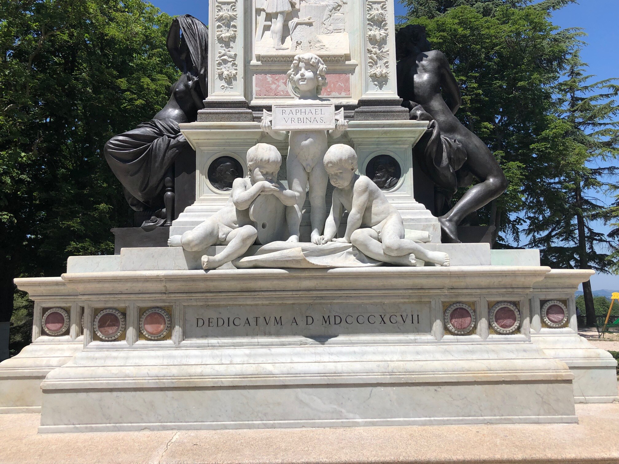 Il Monumento è stato realizzato alla fine del XIX secolo dallo scultore torinese Luigi Belli. L’opera originariamente collocata in Piazza Duca Federico, nel 1947 venne trasferita in Piazzale Roma, detto anche “Pian del Monte”, area verde limitrofa al sito che ospita, insieme al monumento, anche i busti dei grandi artisti urbinati.
