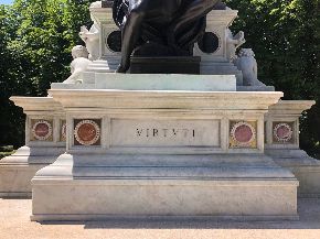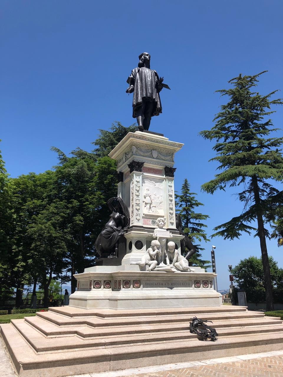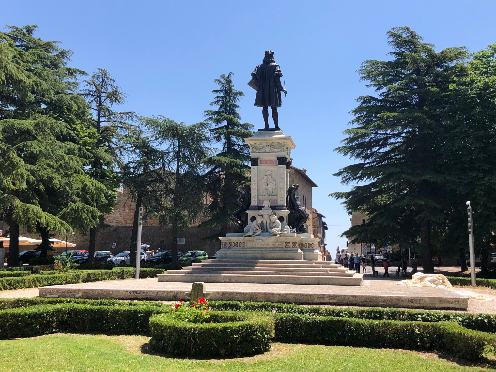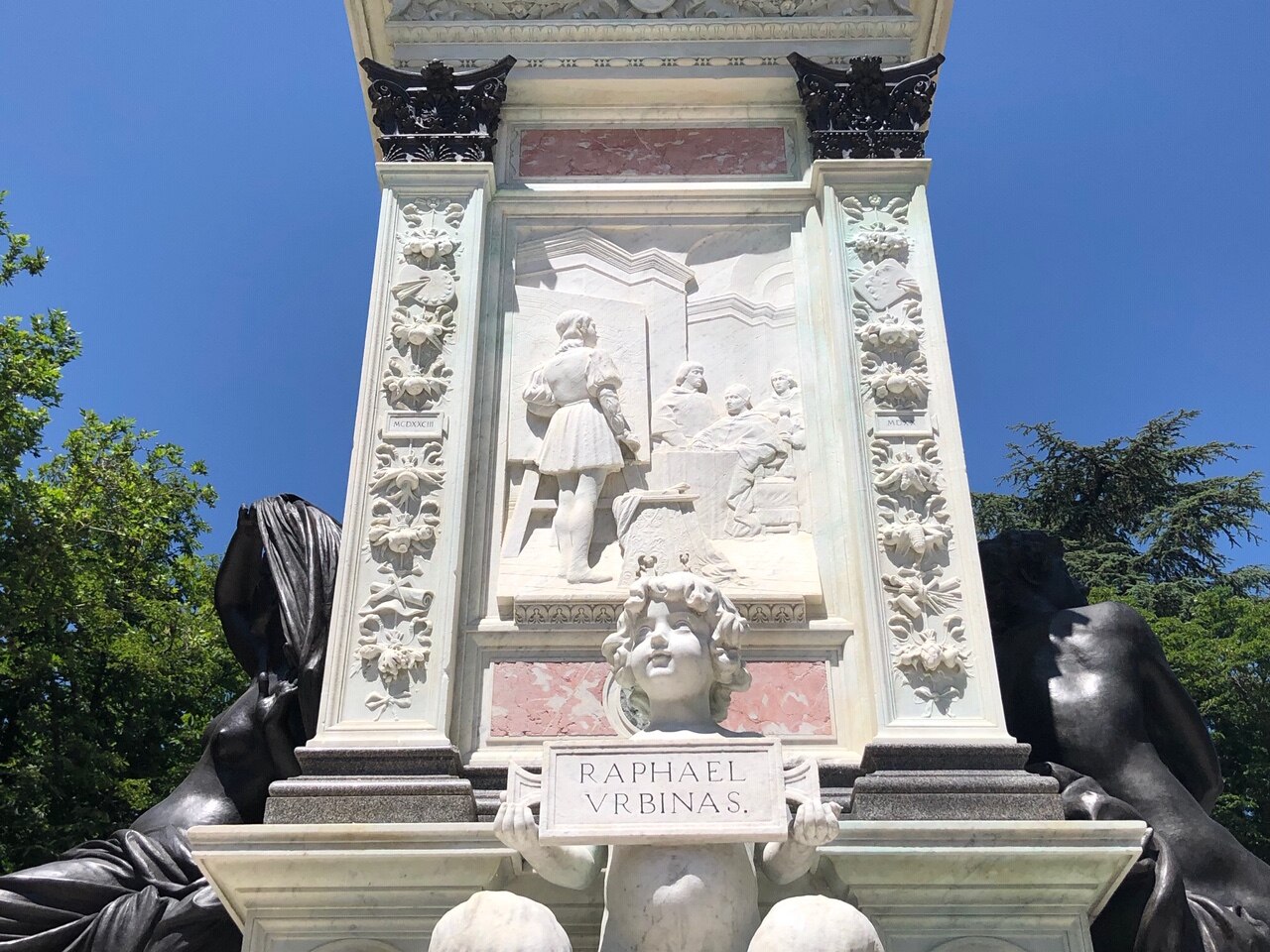Il Monumento è stato realizzato alla fine del XIX secolo dallo scultore torinese Luigi Belli. L’opera originariamente collocata in Piazza Duca Federico, nel 1947 venne trasferita in Piazzale Roma, detto anche “Pian del Monte”, area verde limitrofa al sito che ospita, insieme al monumento, anche i busti dei grandi artisti urbinati.