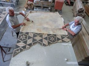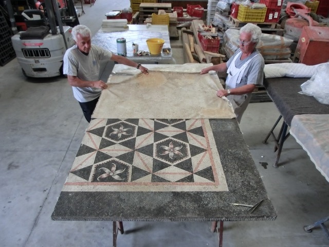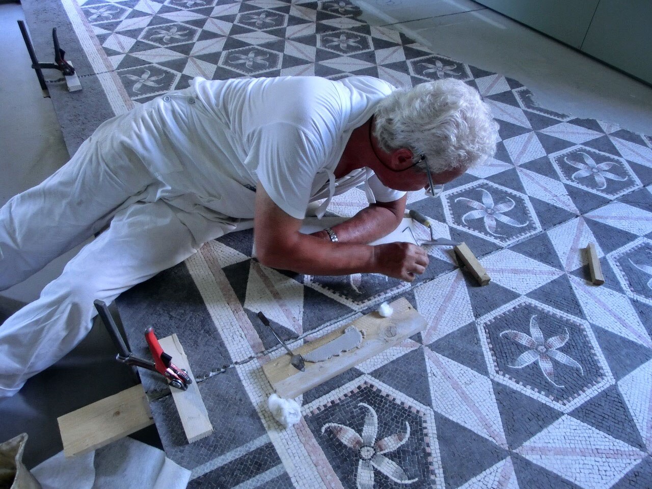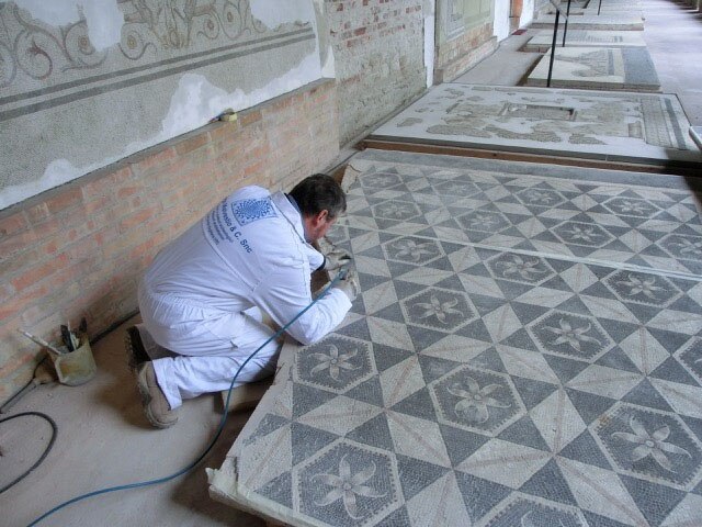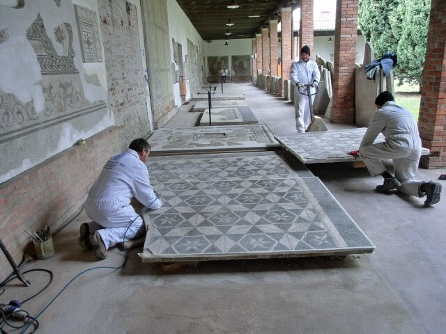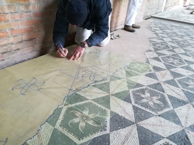 La posa del mosaico. Ecco le prime immagini del ricollocamento dell'opera. Vuoi vedere come avviene la posa del mosaico? Guarda il timelapse sulla pagina Fb del Museo Archeologico Nazionale di Aquileia