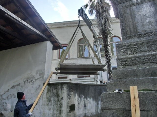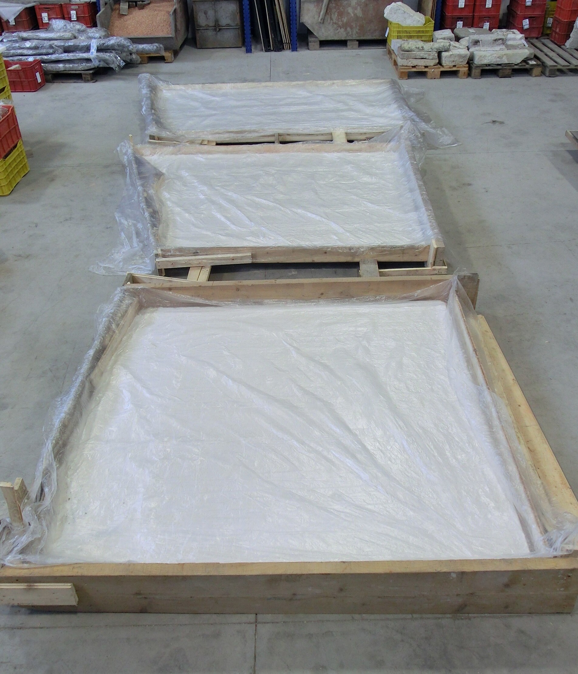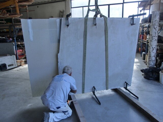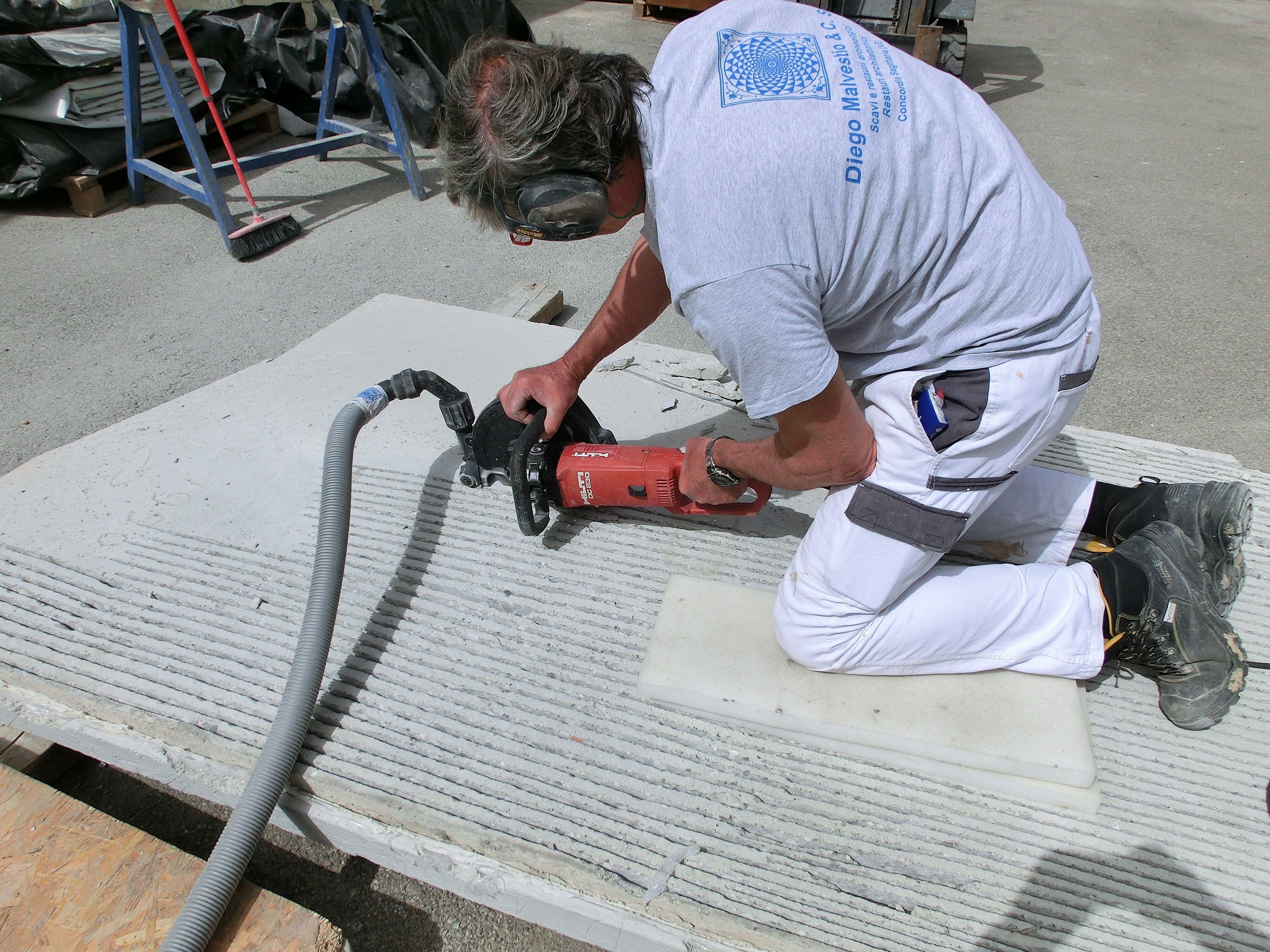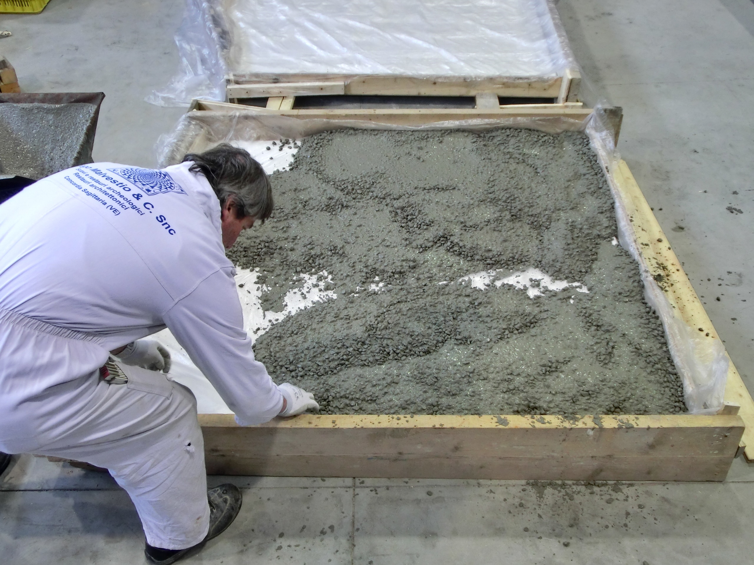 I lavori proseguono. Dopo la velinatura e gessatura, si è proceduto con l'esecuzione della controforma di ogni sezione mediante getto di calcestruzzo: l'operazione è necessaria per il capovolgimento delle sezioni e le lavorazioni sul retro delle sezioni.
