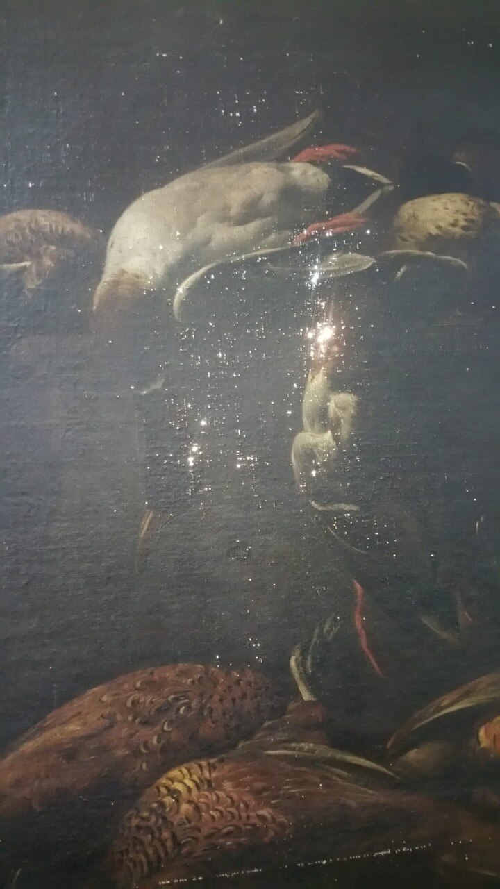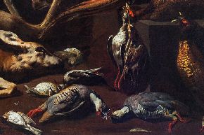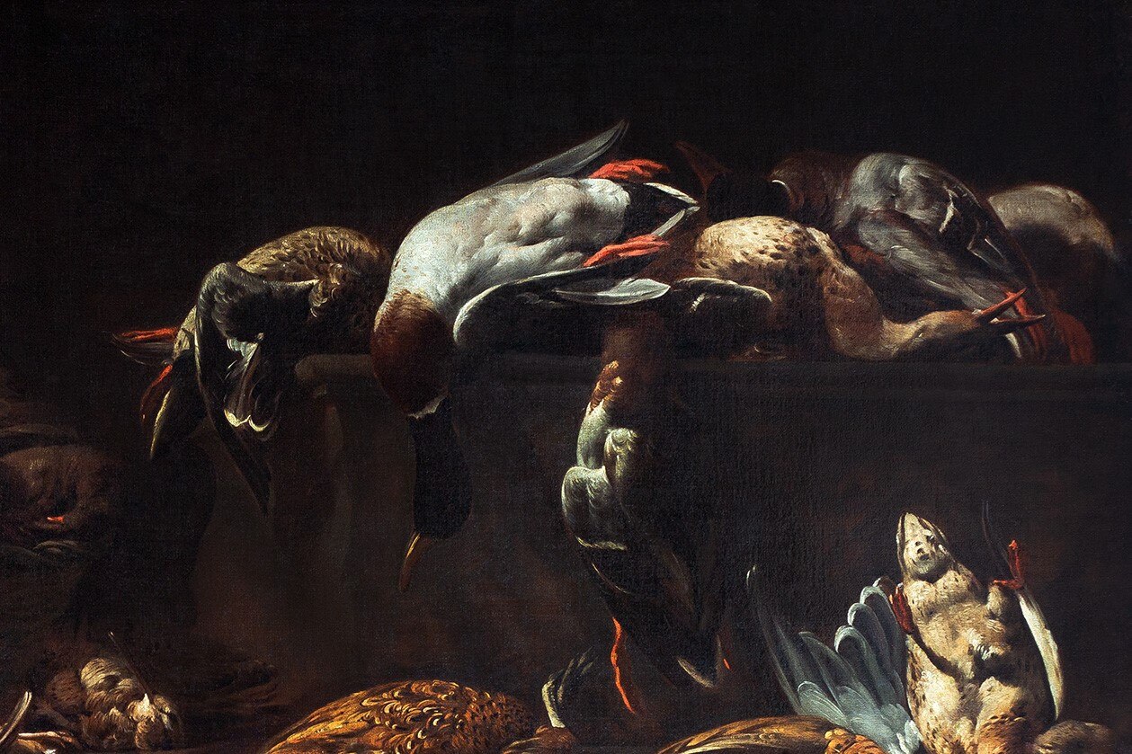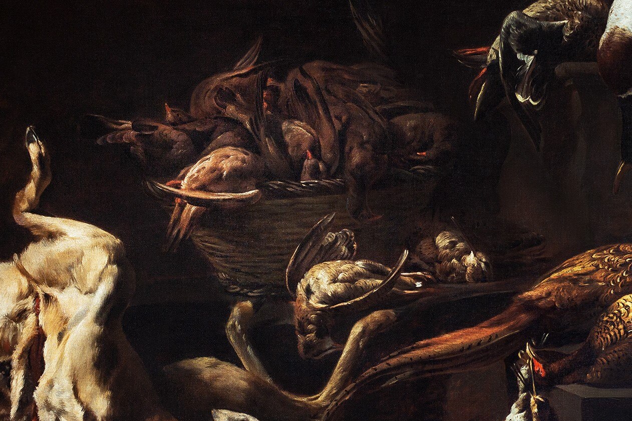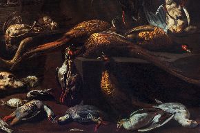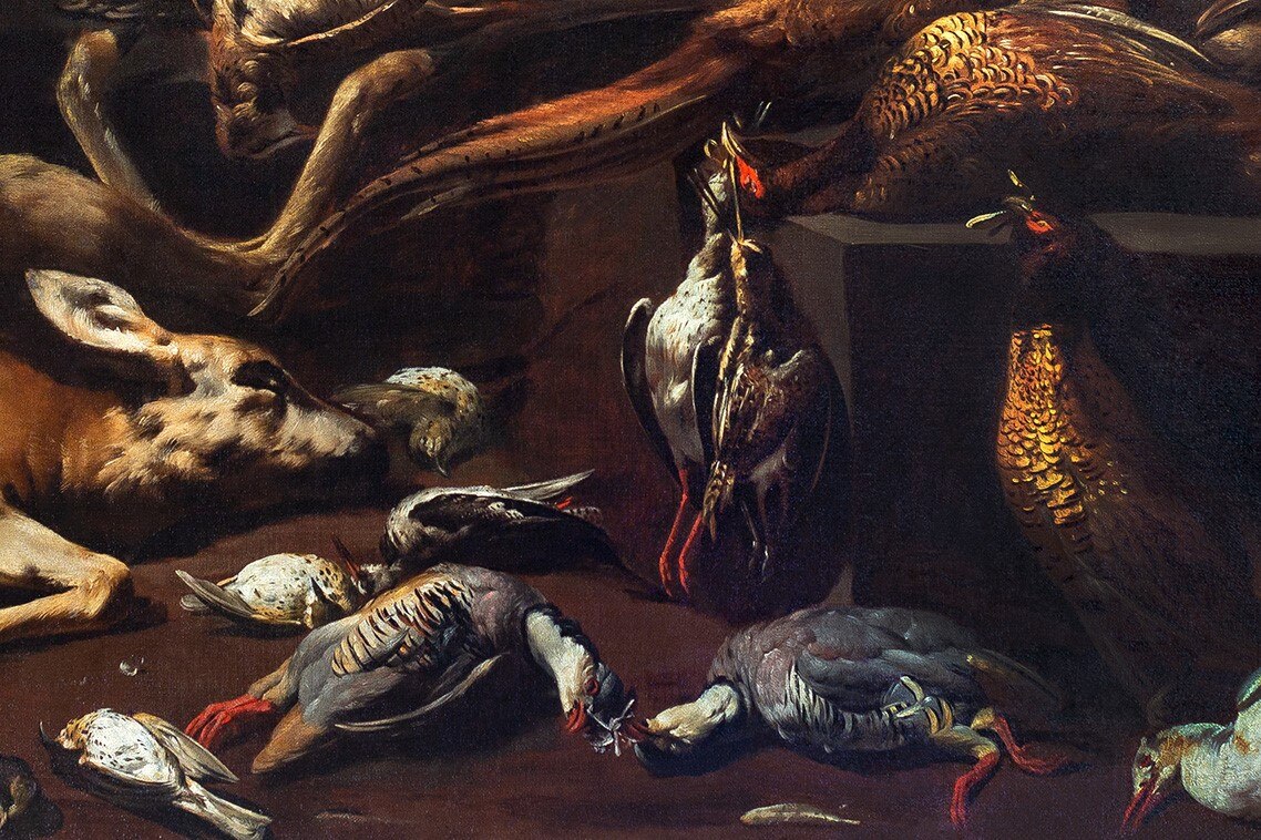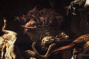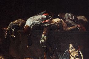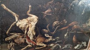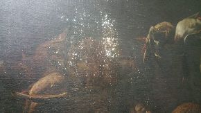 L’opera di Joannes Hermans detto Monsù Aurora (1630 – 1677), pittore fiammingo che lavorò a lungo per il Principe Camillo Pamphilj e per il figlio, cardinale Benedetto, presenta un colore denso, l’esposizione accurata e ordinata degli animali, la luminosità che ferma i particolari con netta precisione ottica caratteristiche tipiche della produzione fiamminga.