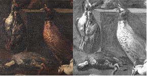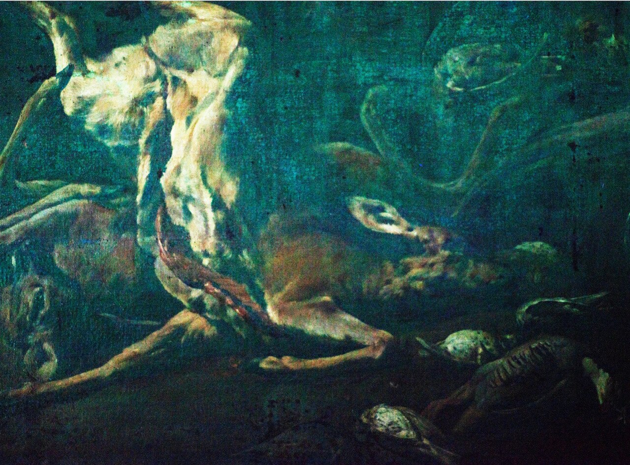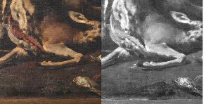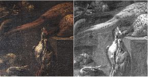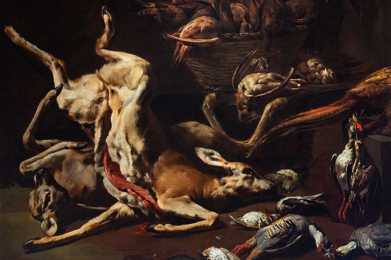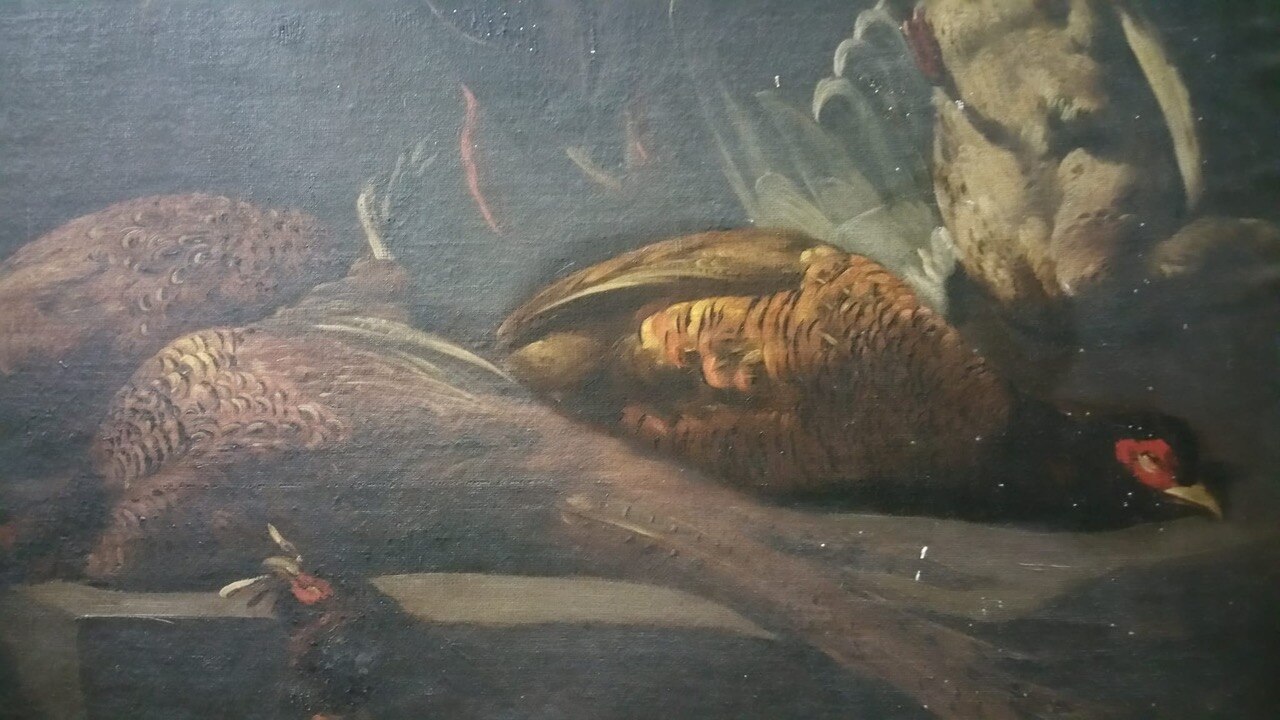 L’opera di Joannes Hermans detto Monsù Aurora (1630 – 1677), pittore fiammingo che lavorò a lungo per il Principe Camillo Pamphilj e per il figlio, cardinale Benedetto, presenta un colore denso, l’esposizione accurata e ordinata degli animali, la luminosità che ferma i particolari con netta precisione ottica caratteristiche tipiche della produzione fiamminga.