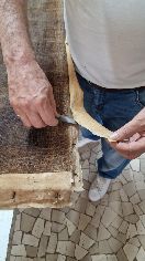 La rifoderatura. Ecco le immagini della rimozione delle vecchie toppe sul retro della tela e della rifoderatura della stessa perché molto degradata. Questo permette di consolidare l’opera per non rischiare nel tempo che abbia dei cedimenti che potrebbero lesionarla definitivamente. L'intervento è eseguito dal restauratore Angelo Pavoni di Ascoli Piceno.