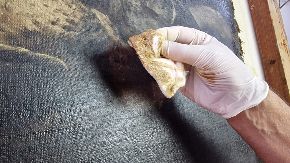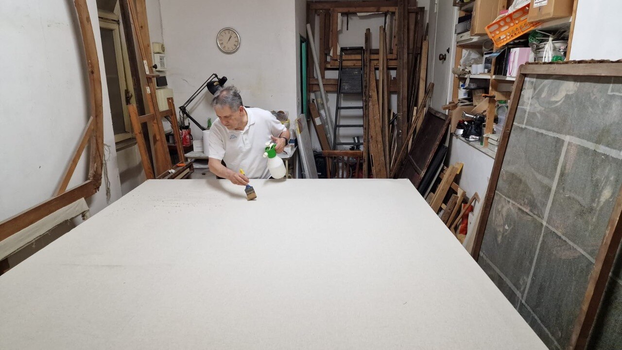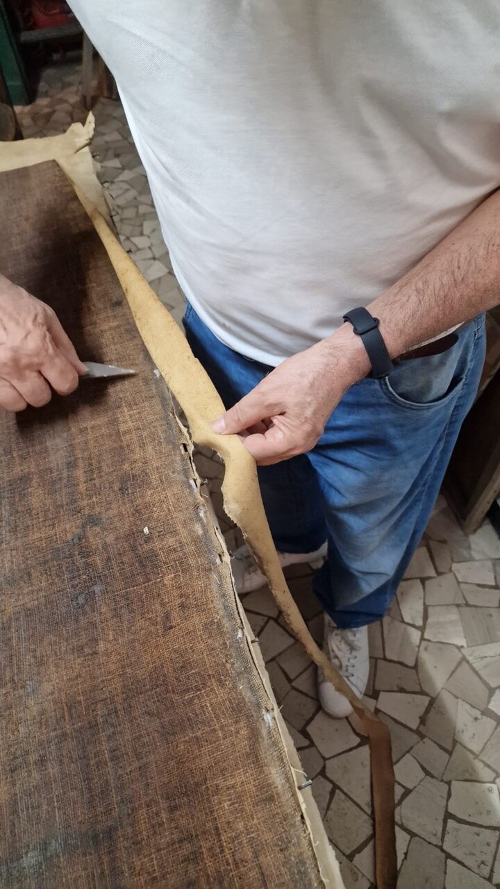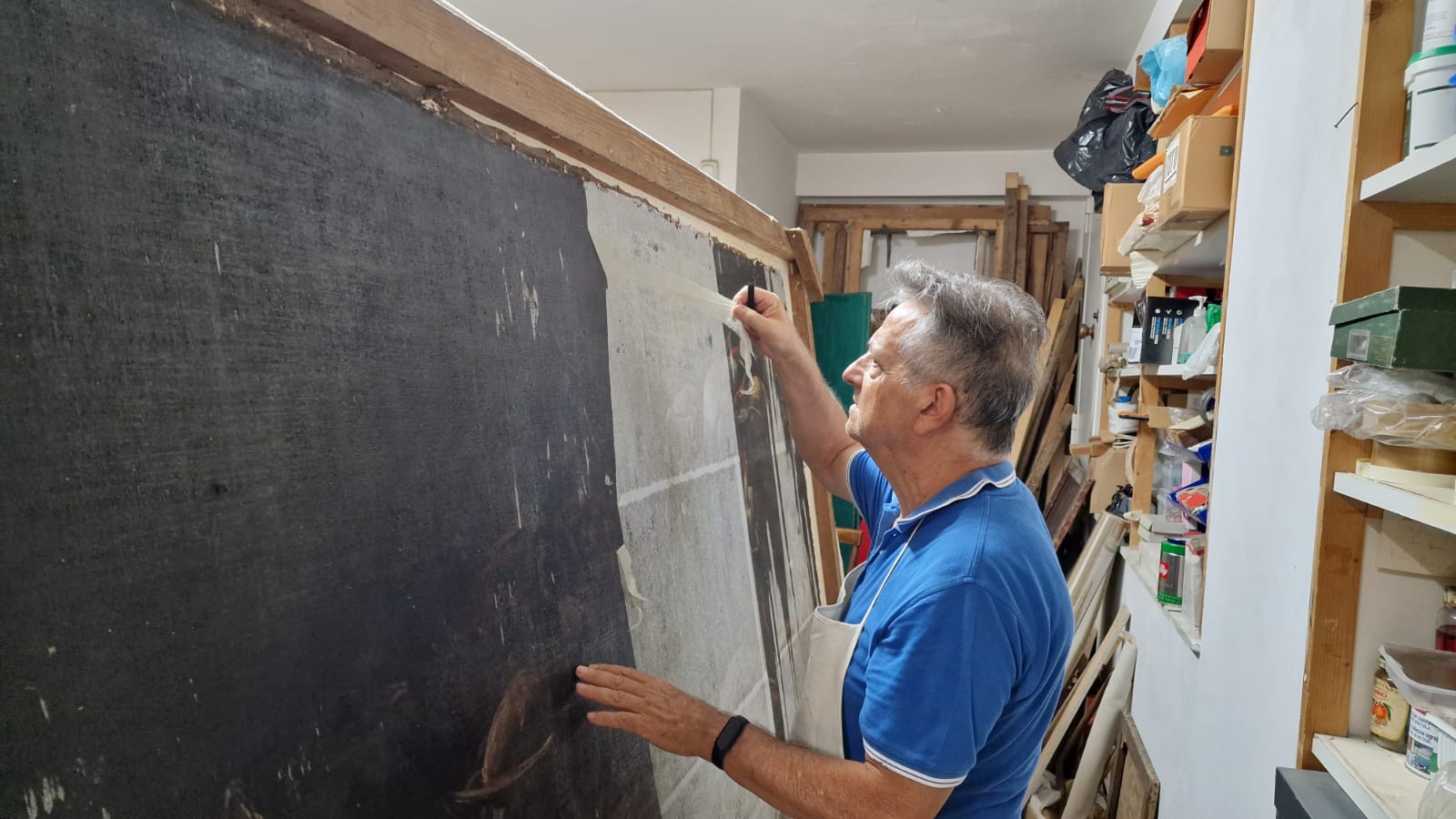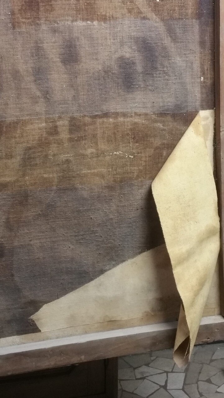 La pulitura. Ecco le immagini della pulitura del retro, il nuovo telo ed il ripristino delle fessure. Siamo a metà del percorso di restauro!