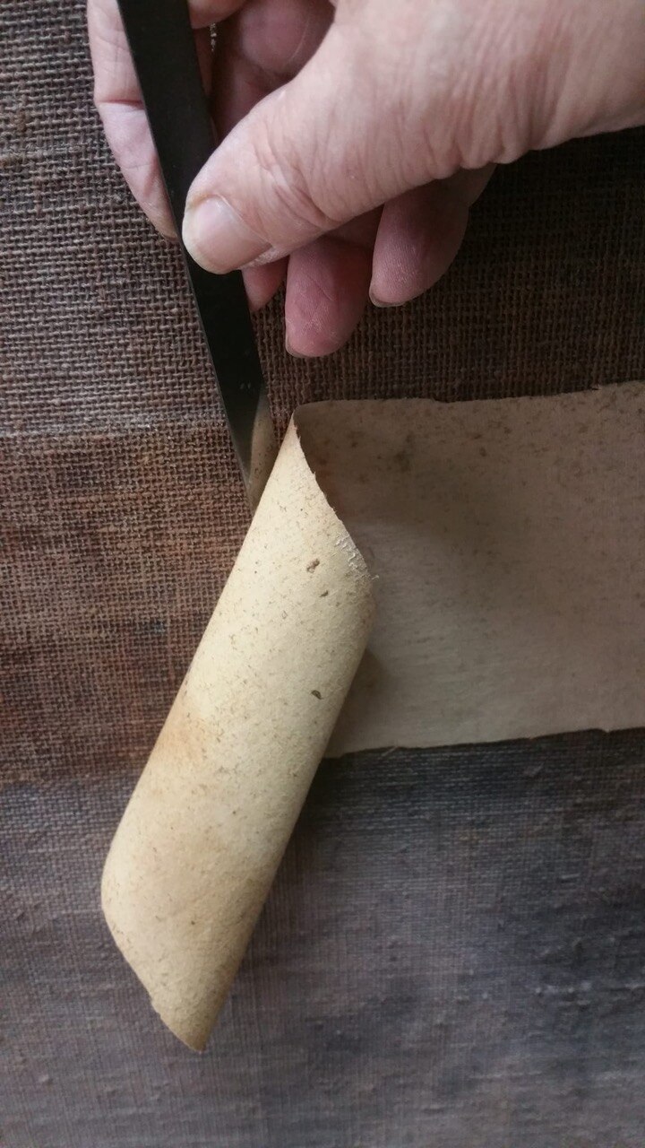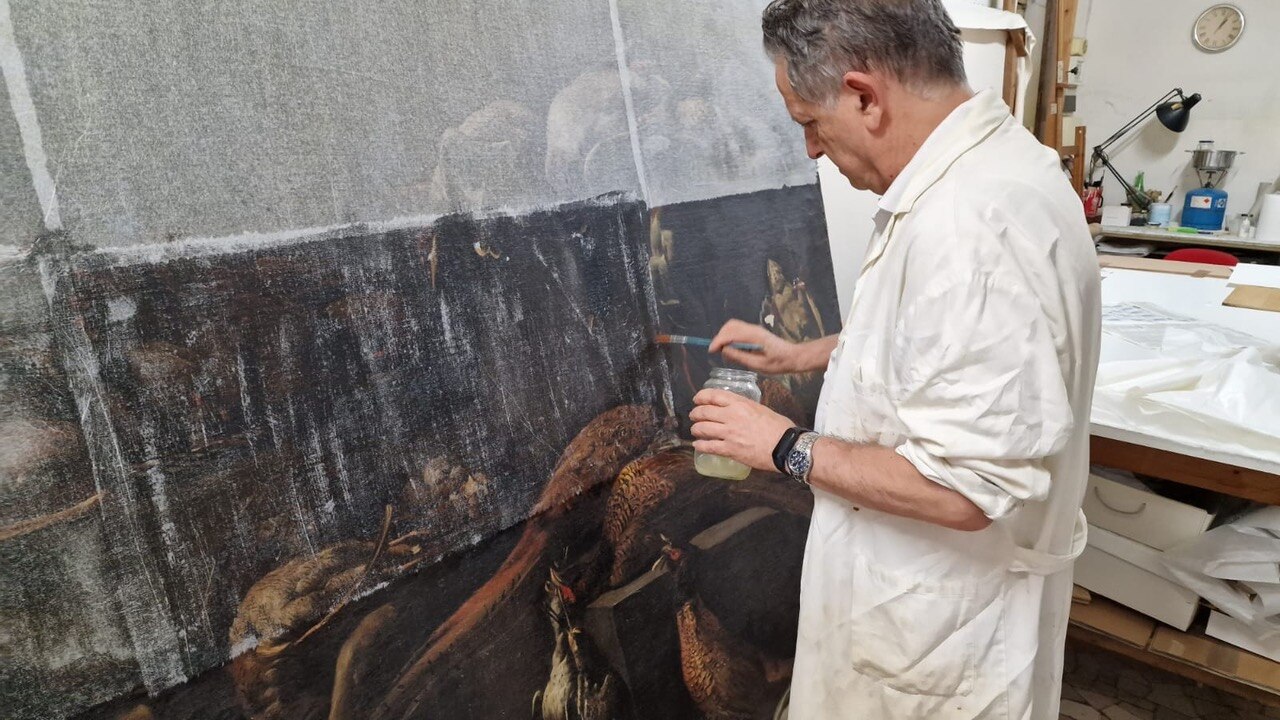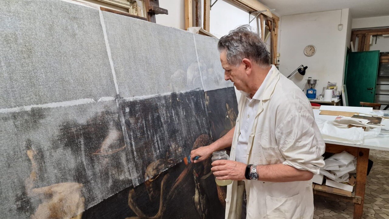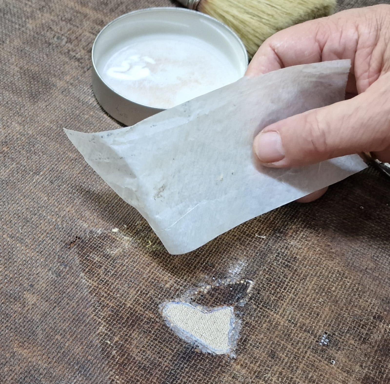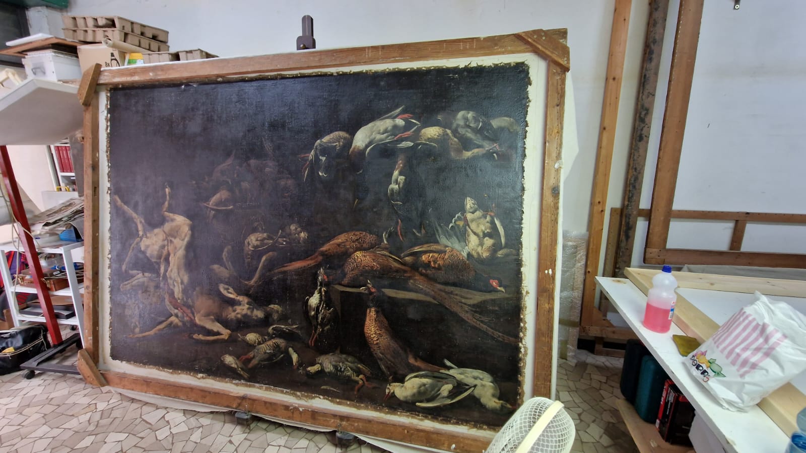La pulitura. Ecco le immagini della pulitura del retro, il nuovo telo ed il ripristino delle fessure. Siamo a metà del percorso di restauro!