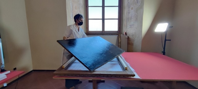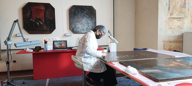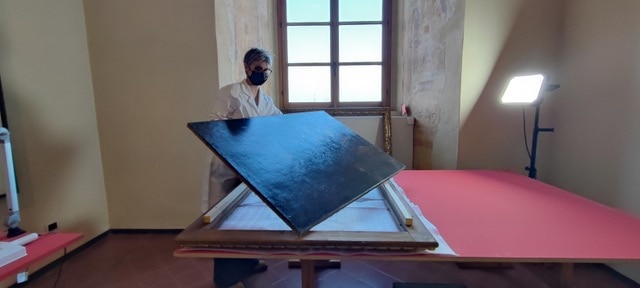 Al via il restauro! Ieri mattina nell'alcova della Pinacoteca, con le restauratrici Valentina Rimondi di Cool Tour e Cristina Gasperotti di Ocra Restauri al lavoro, l'avvio dell'intervento è stato presentato alla stampa