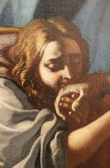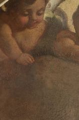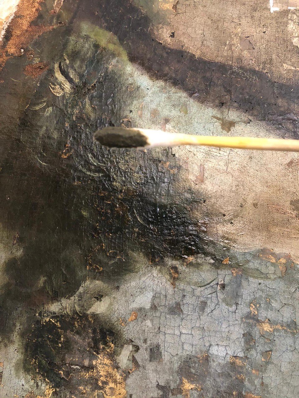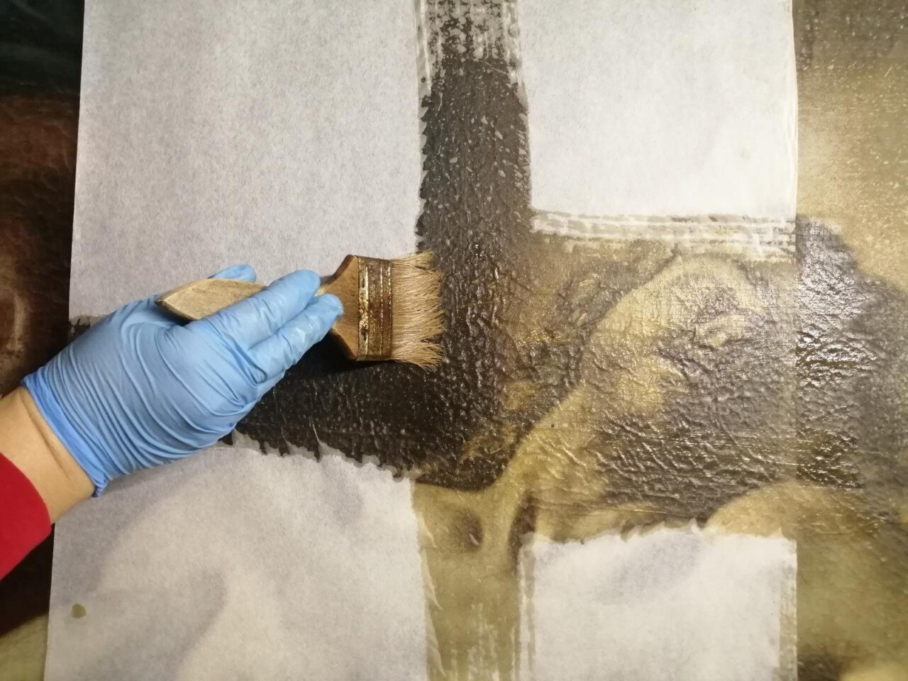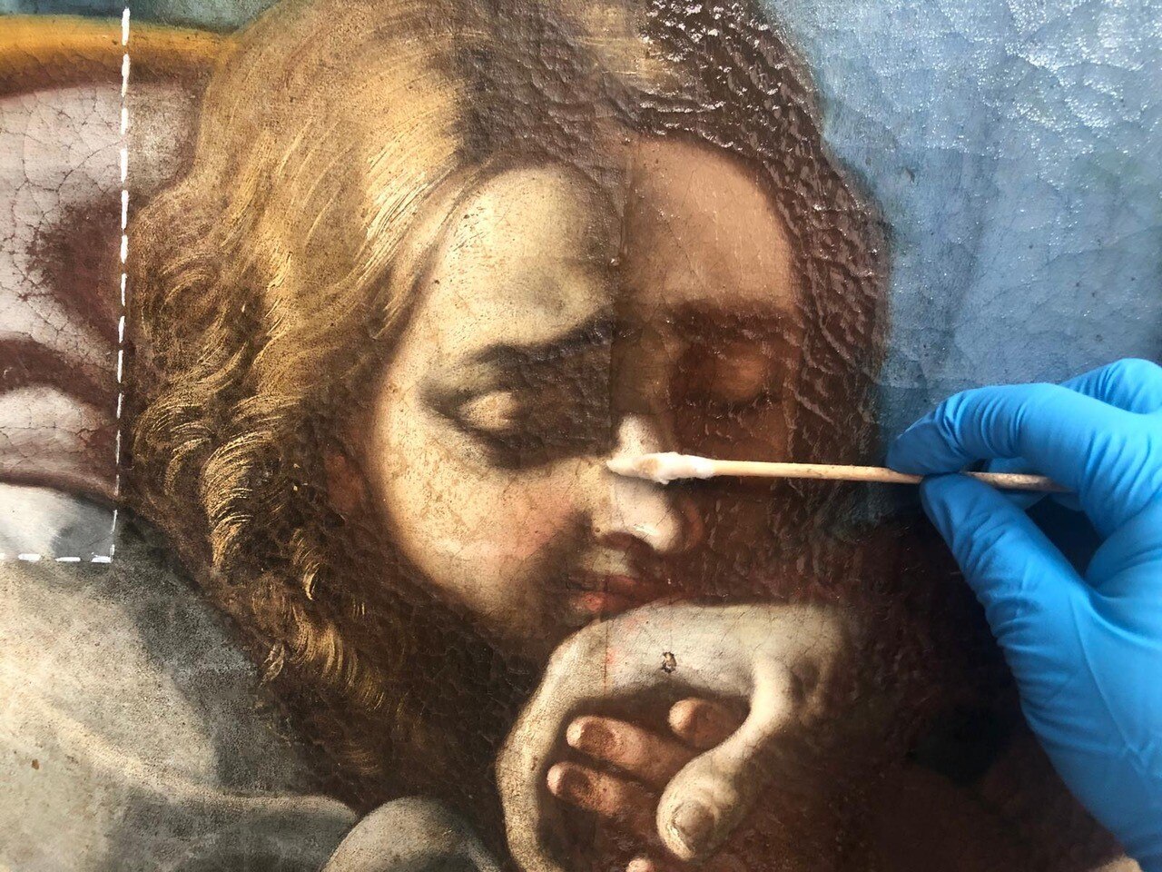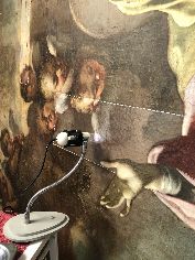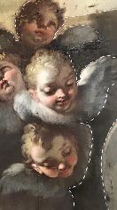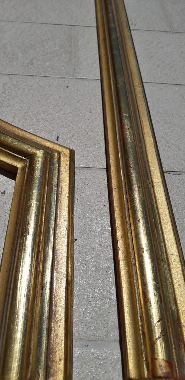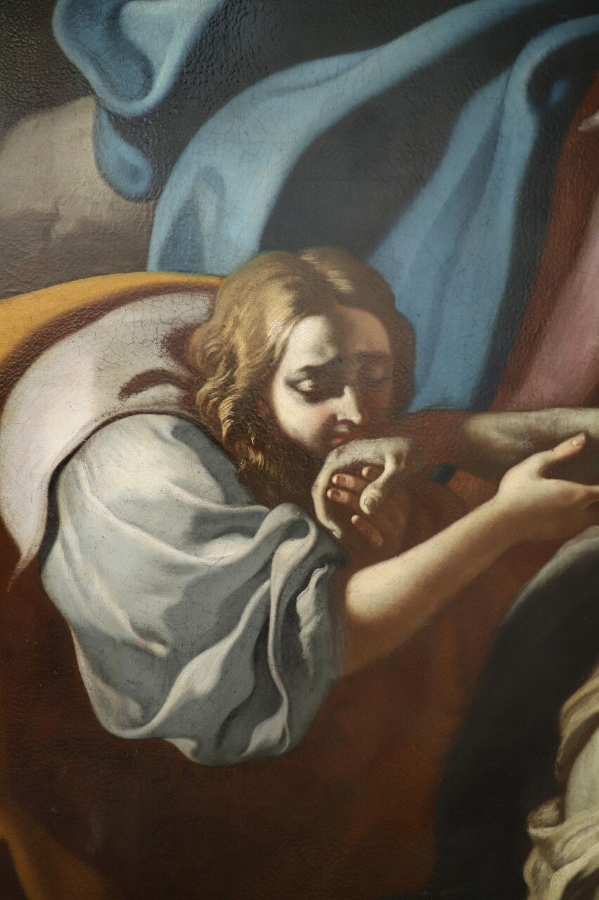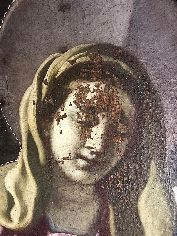 Verso la fine del restauro. Ecco le ultime fasi del restauro: l'opera è quasi pronta a brillare di una nuove luce! Vediamo le immagini del completamento della pulitura chimico-fisica, della realizzazione della cornice in legno di tiglio, della gessatura, della doratura e patinatura con bolo rosso armeno, della saturazione della pulitura della tela, del tensionamento sul telaio nuovo e infine del livellamento delle stuccature. Manca il ritocco pittorico e l’applicazione del protettivo e il restauro sarà completato!