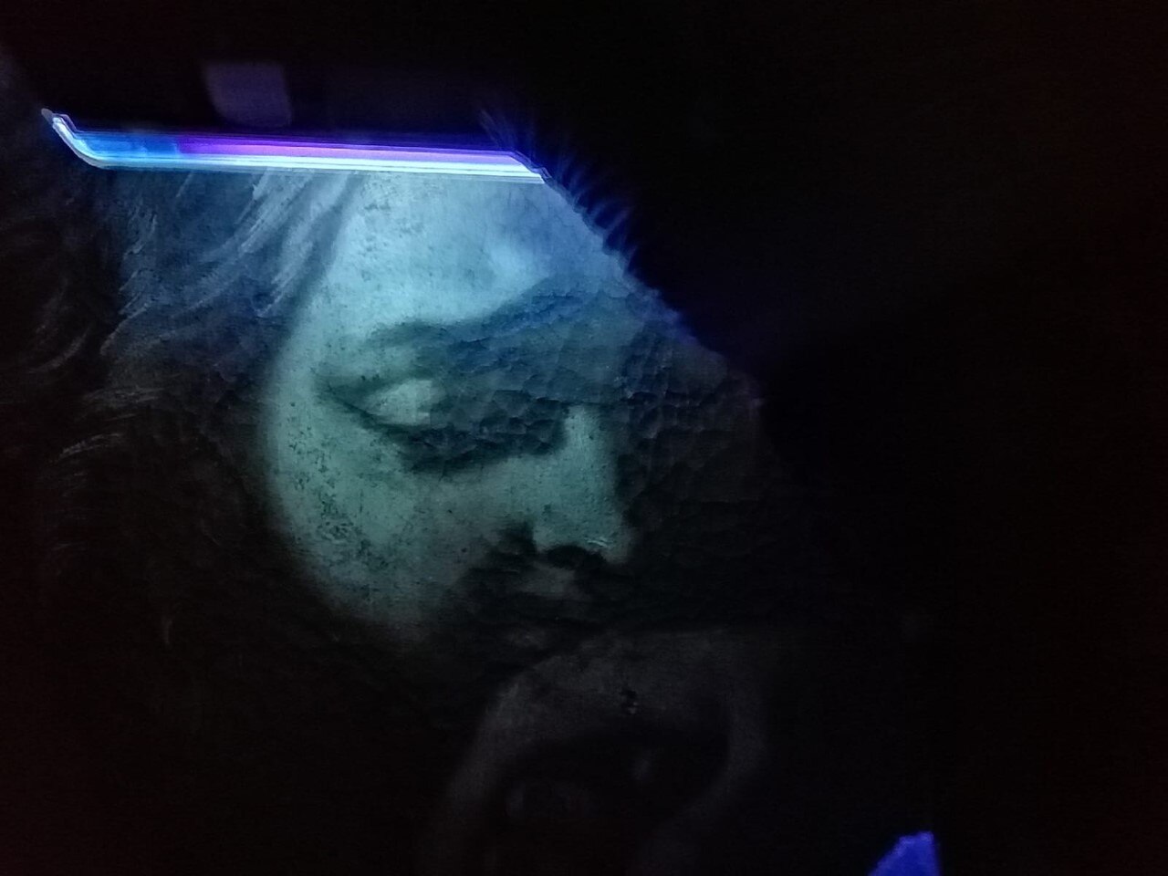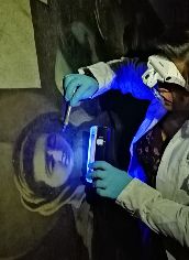 La Pietà da vicino. Ecco i primi saggi di pulitura e analisi con la lampada a raggi ultravioletti.