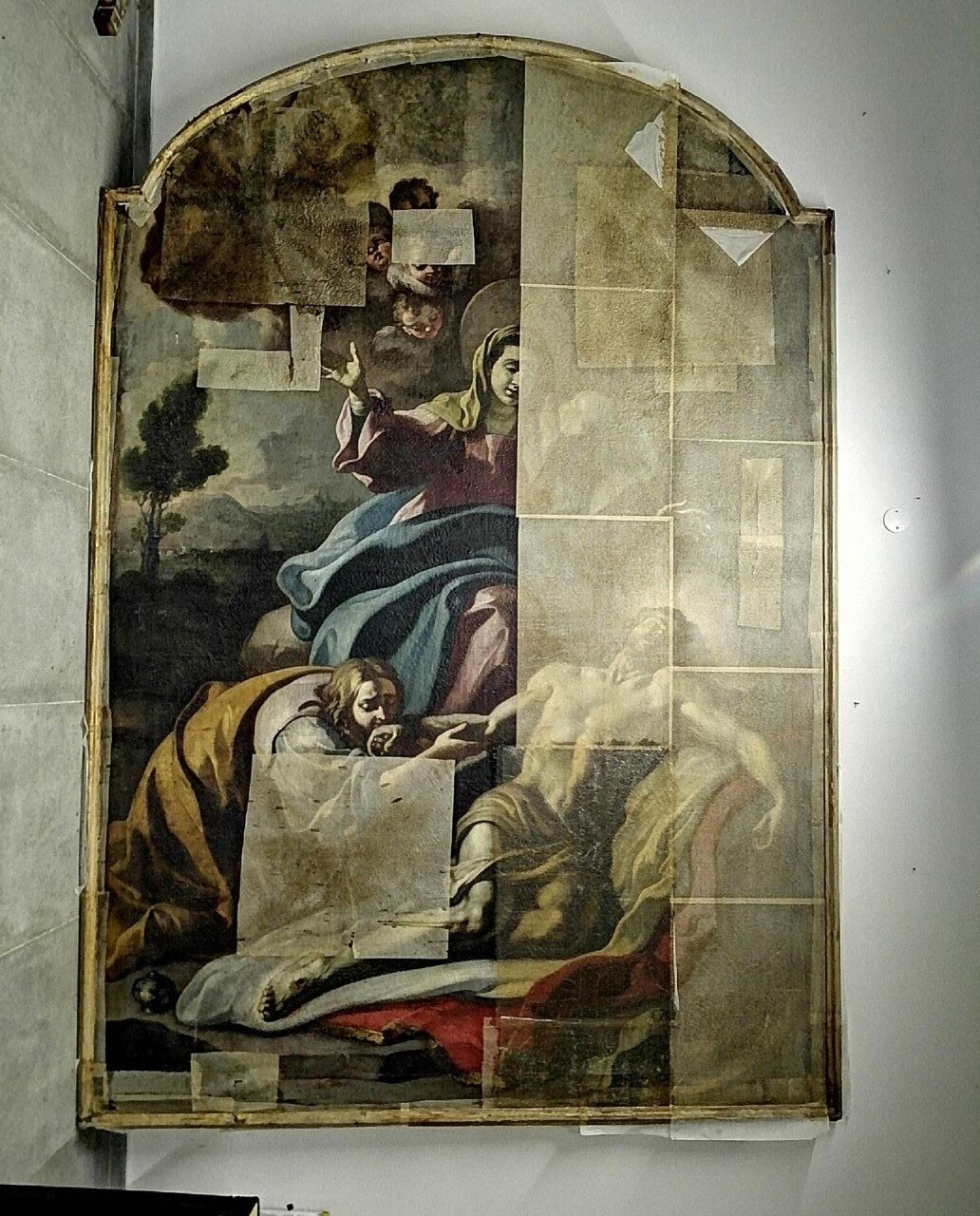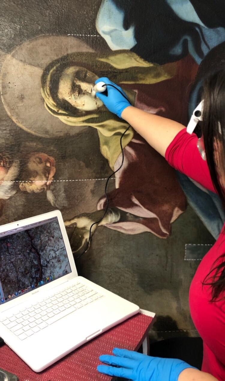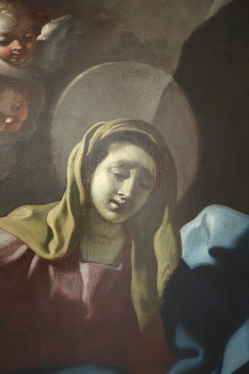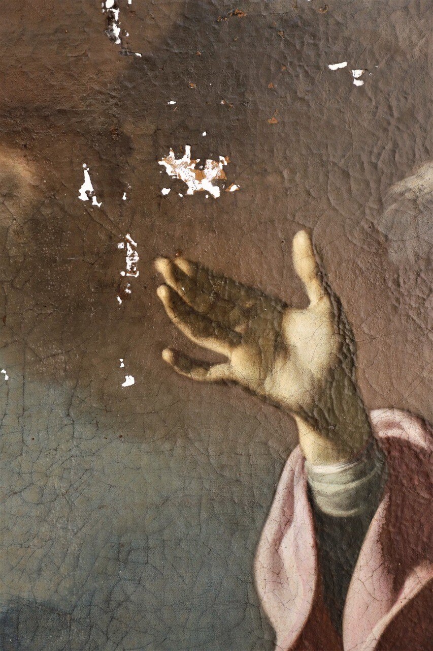 L’intervento prevede l’asporto dell’opera dal suo alloggiamento e le indagini preliminari, condotte anche tramite microprelievi per la localizzazione delle zone maggiormente degradate della tela. Si procederà quindi all'eliminazione delle fessurazioni e a un ritensionamento della tela. Dopo le operazioni di consolidamento, si prevede un ritocco pittorico, cui seguirà l'applicazione di un protettivo neutro.