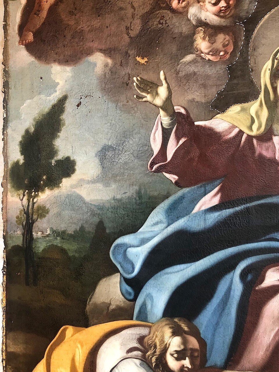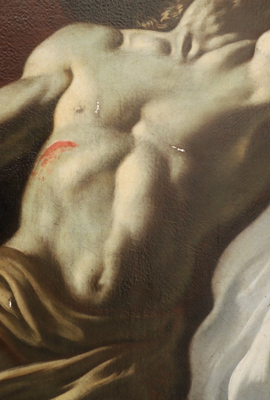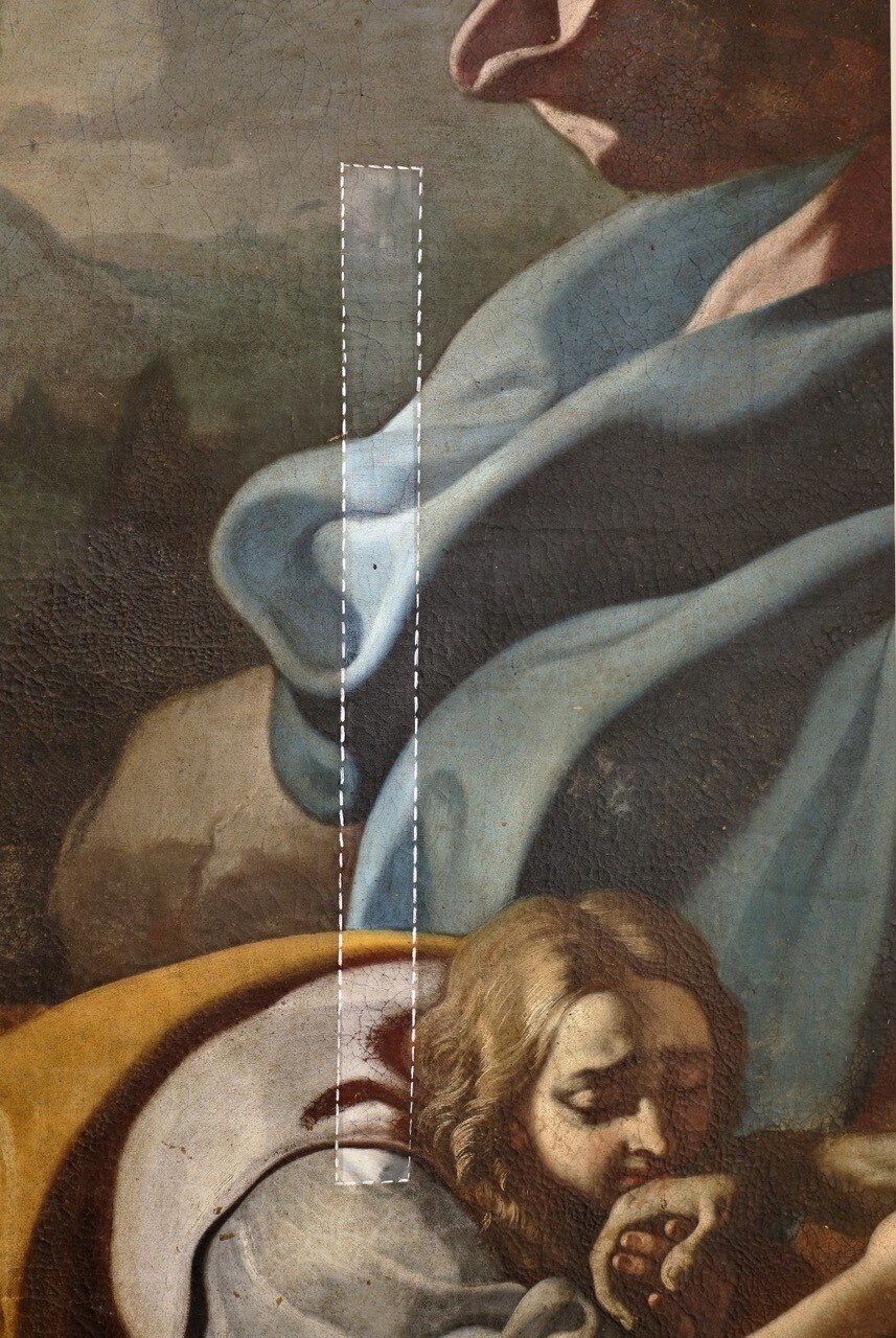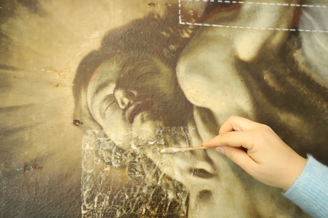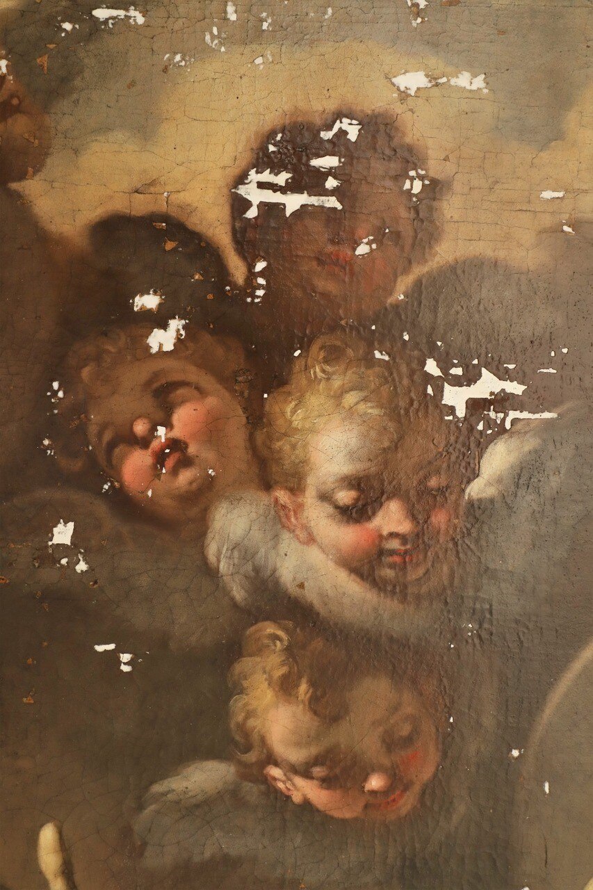 L’intervento prevede l’asporto dell’opera dal suo alloggiamento e le indagini preliminari, condotte anche tramite microprelievi per la localizzazione delle zone maggiormente degradate della tela. Si procederà quindi all'eliminazione delle fessurazioni e a un ritensionamento della tela. Dopo le operazioni di consolidamento, si prevede un ritocco pittorico, cui seguirà l'applicazione di un protettivo neutro.