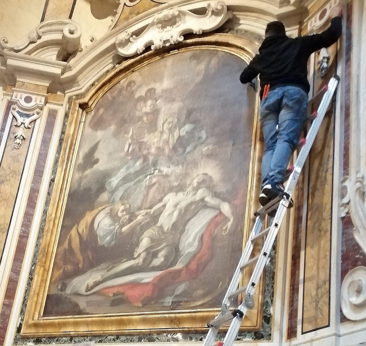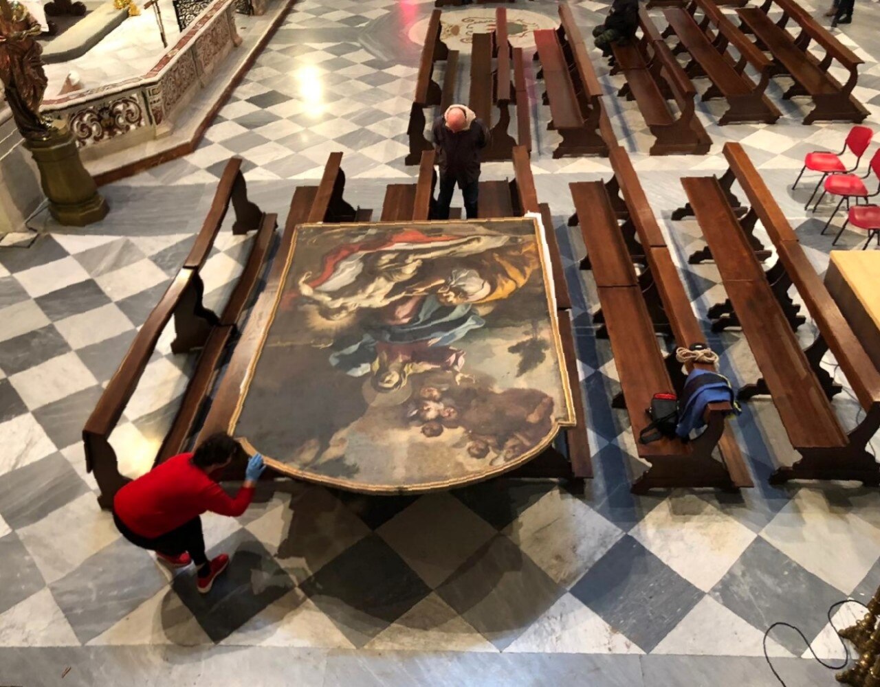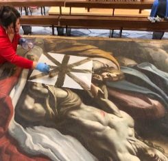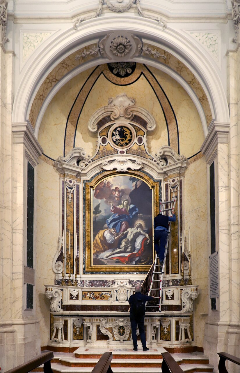 La ricollocazione. Ecco le immagini dell'opera ricollocata alla Cattedrale della Beata Vergine Maria Assunta in Cielo, con la restauratice Daniela Pirro.