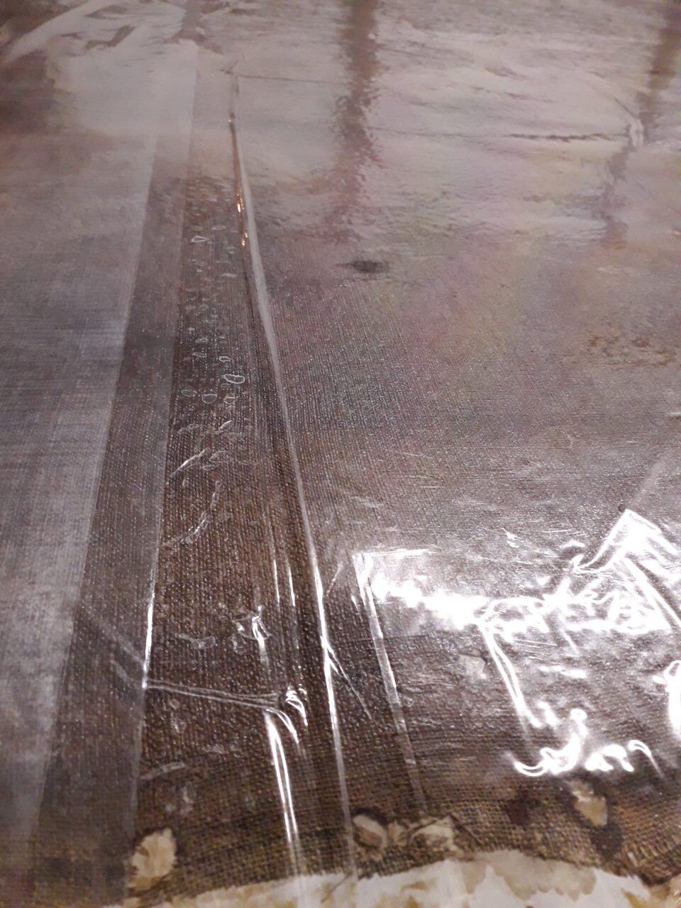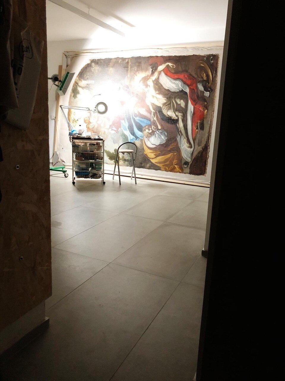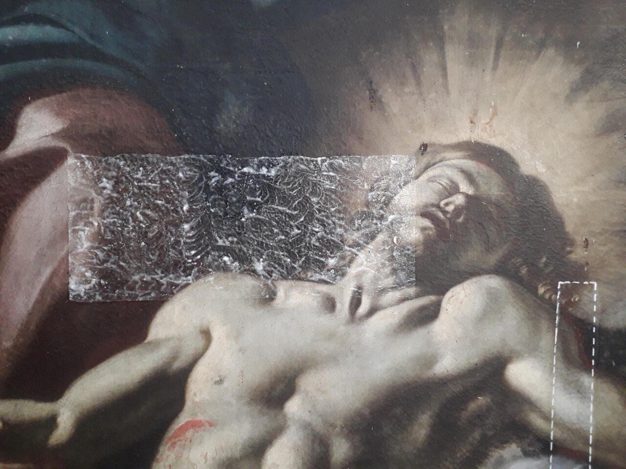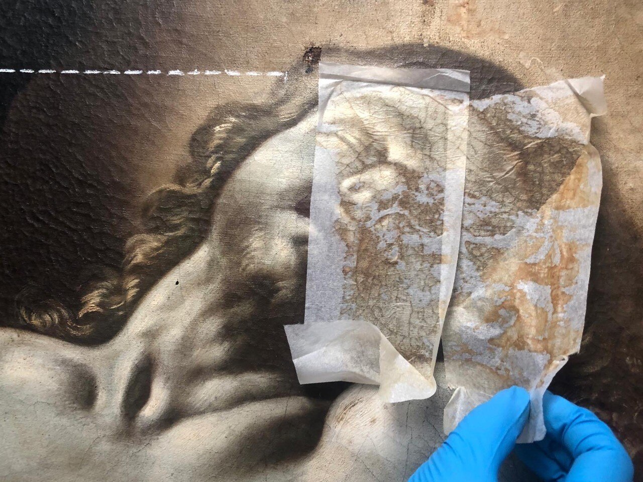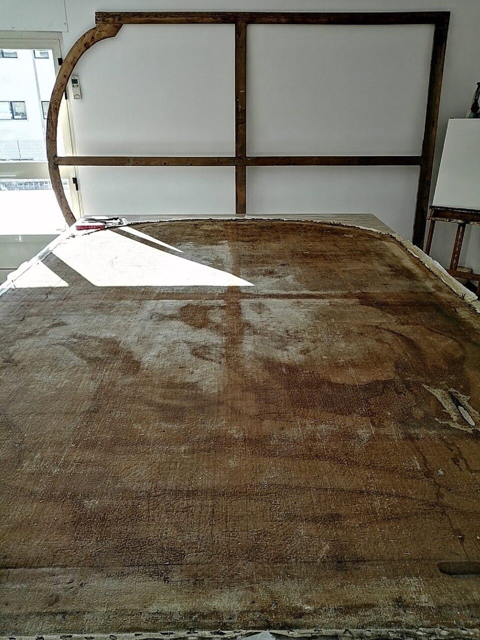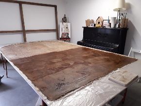 Al giro di boa. Siamo a metà dell'intervento di restauro della Pietà: ecco le immagini delle operazioni di stiratura del retro e del frontale della tela, di tensionatura, di preparazione del sottovuoto con camera anossica e infine di svelinatura.