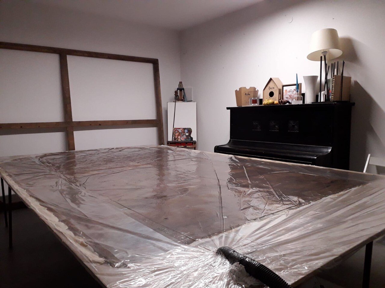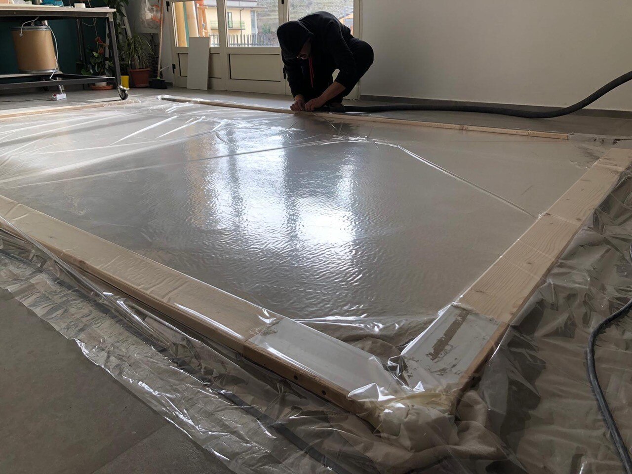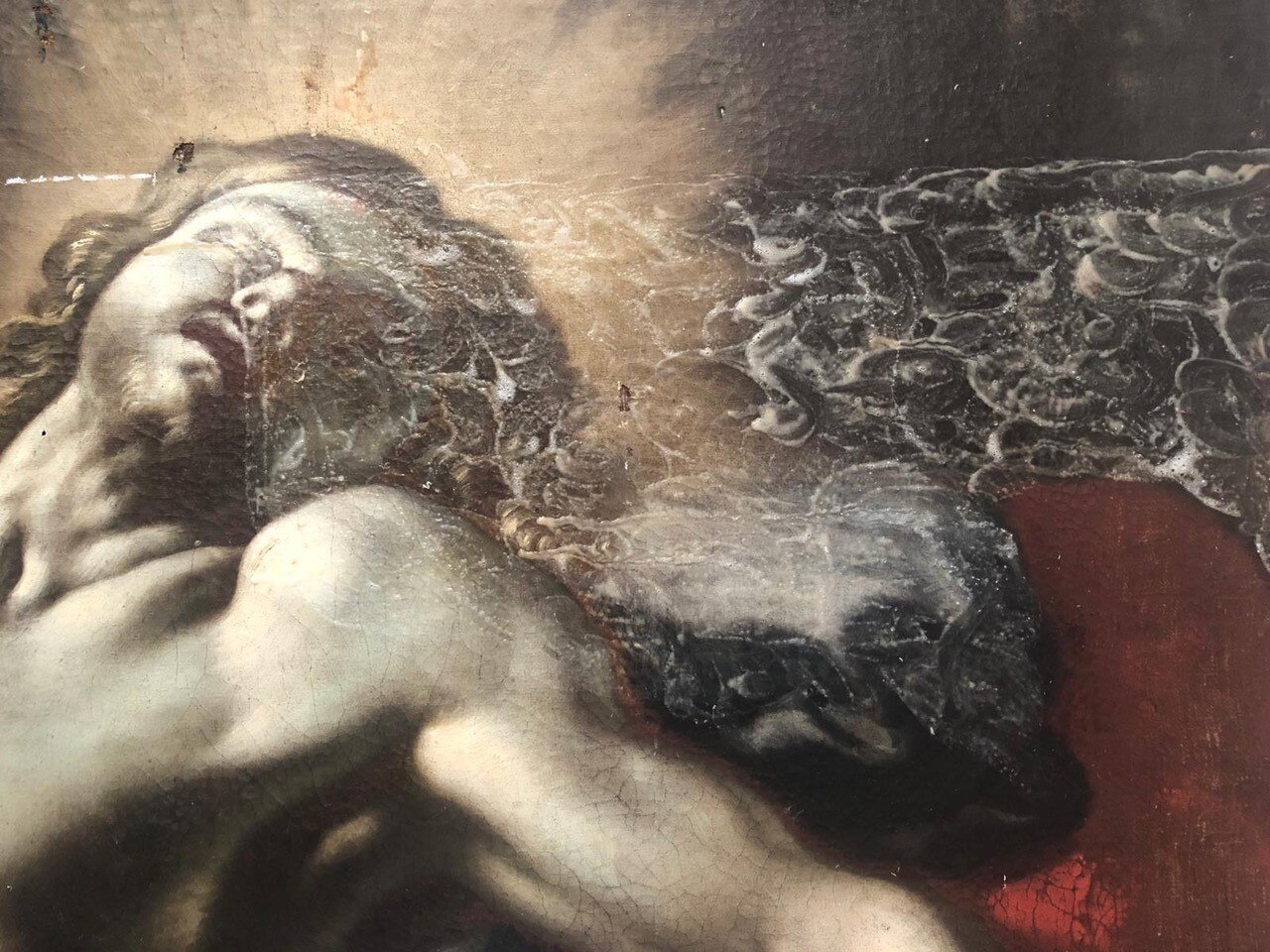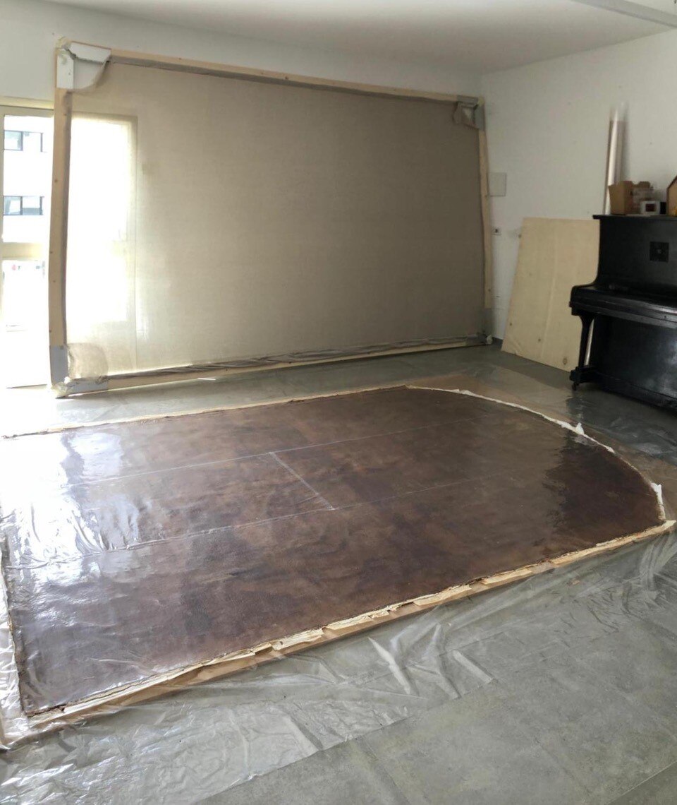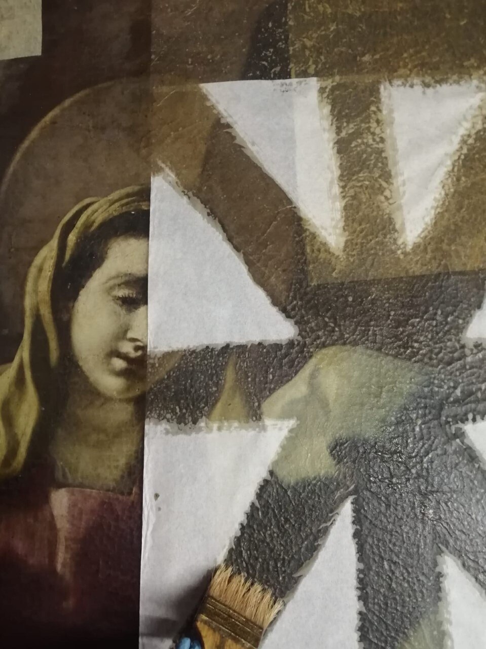 Al giro di boa. Siamo a metà dell'intervento di restauro della Pietà: ecco le immagini delle operazioni di stiratura del retro e del frontale della tela, di tensionatura, di preparazione del sottovuoto con camera anossica e infine di svelinatura.