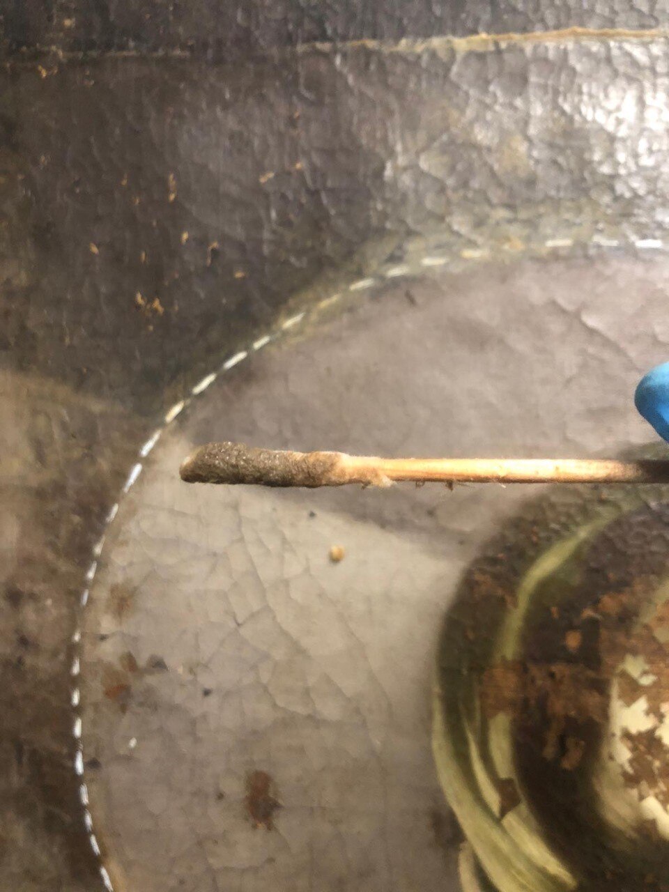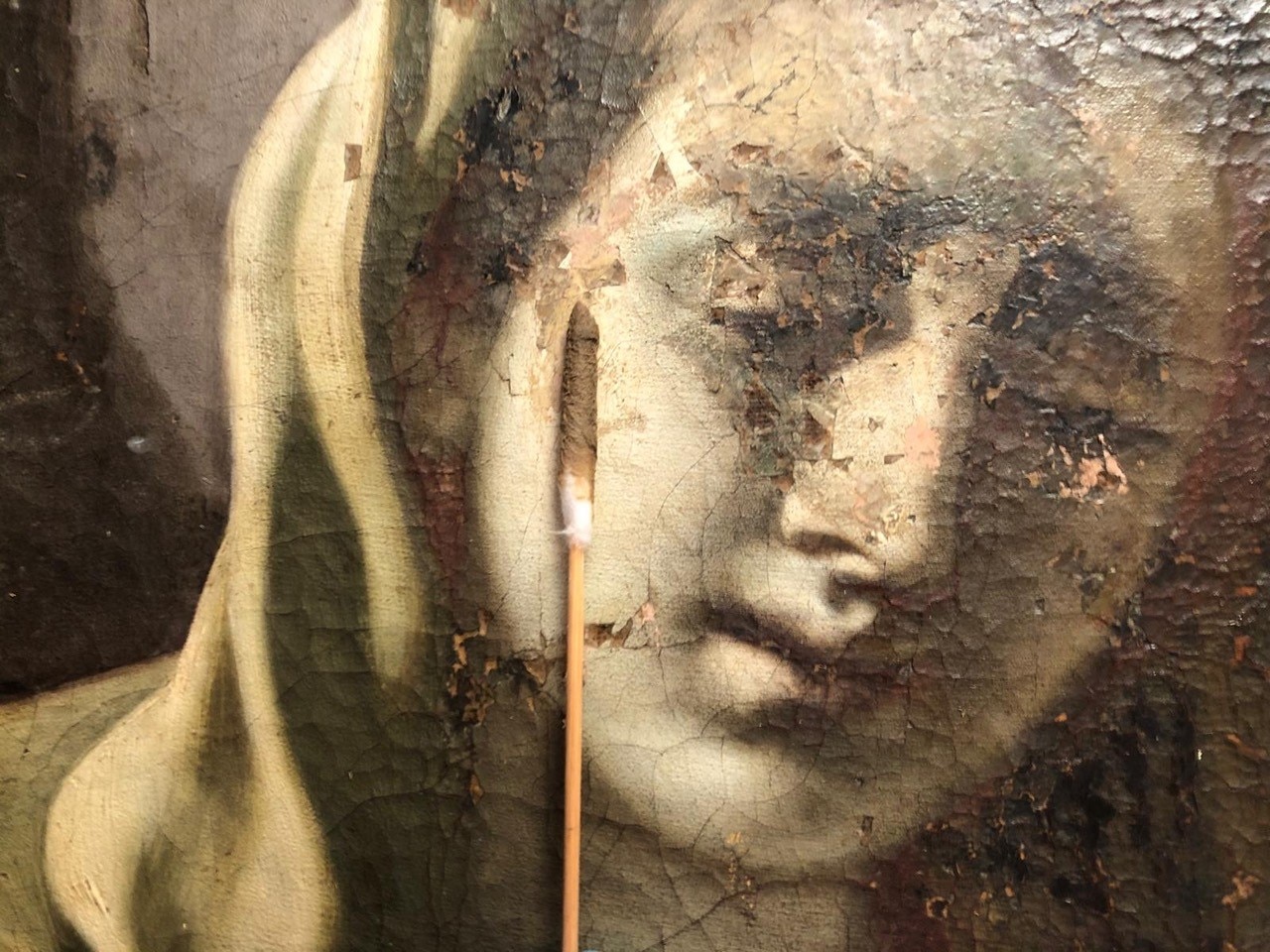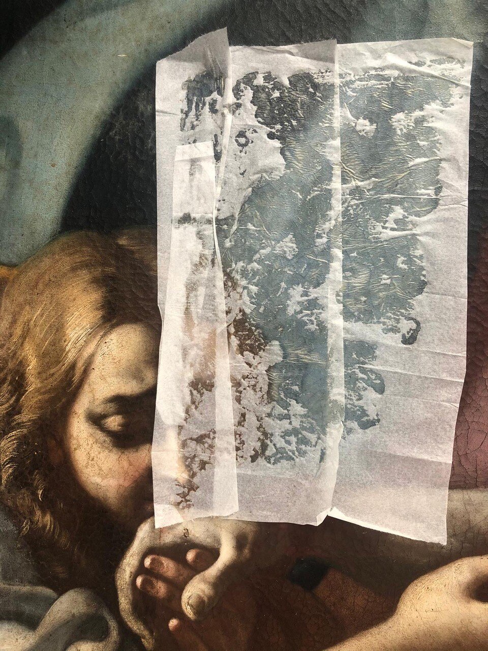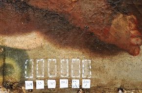 I saggi di pulitura. Ecco le foto relative ai saggi di pulitura: con enzimi e sulle policromie non originali.