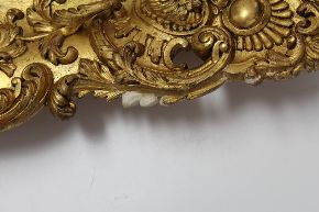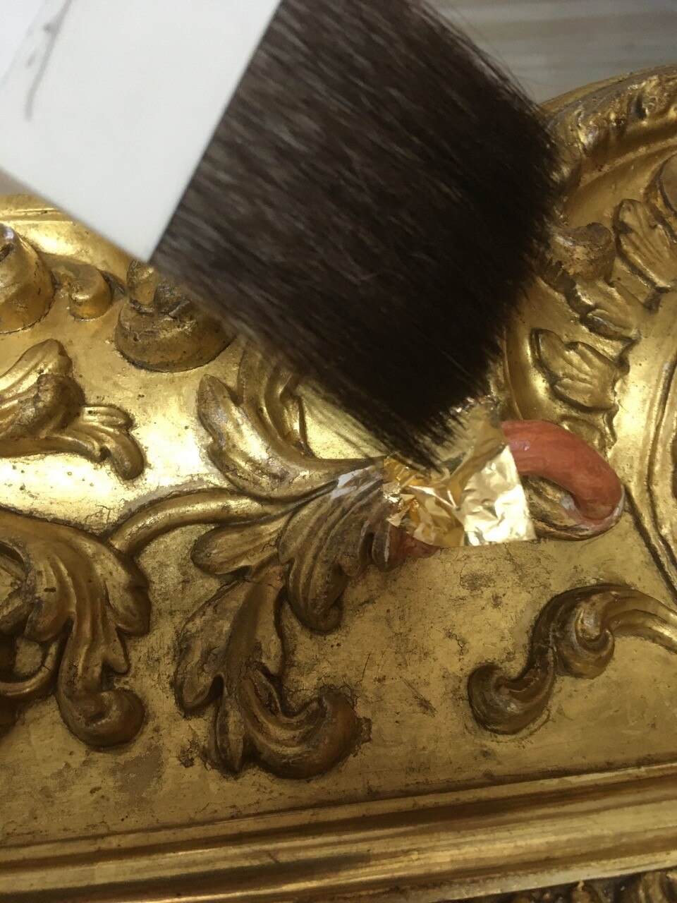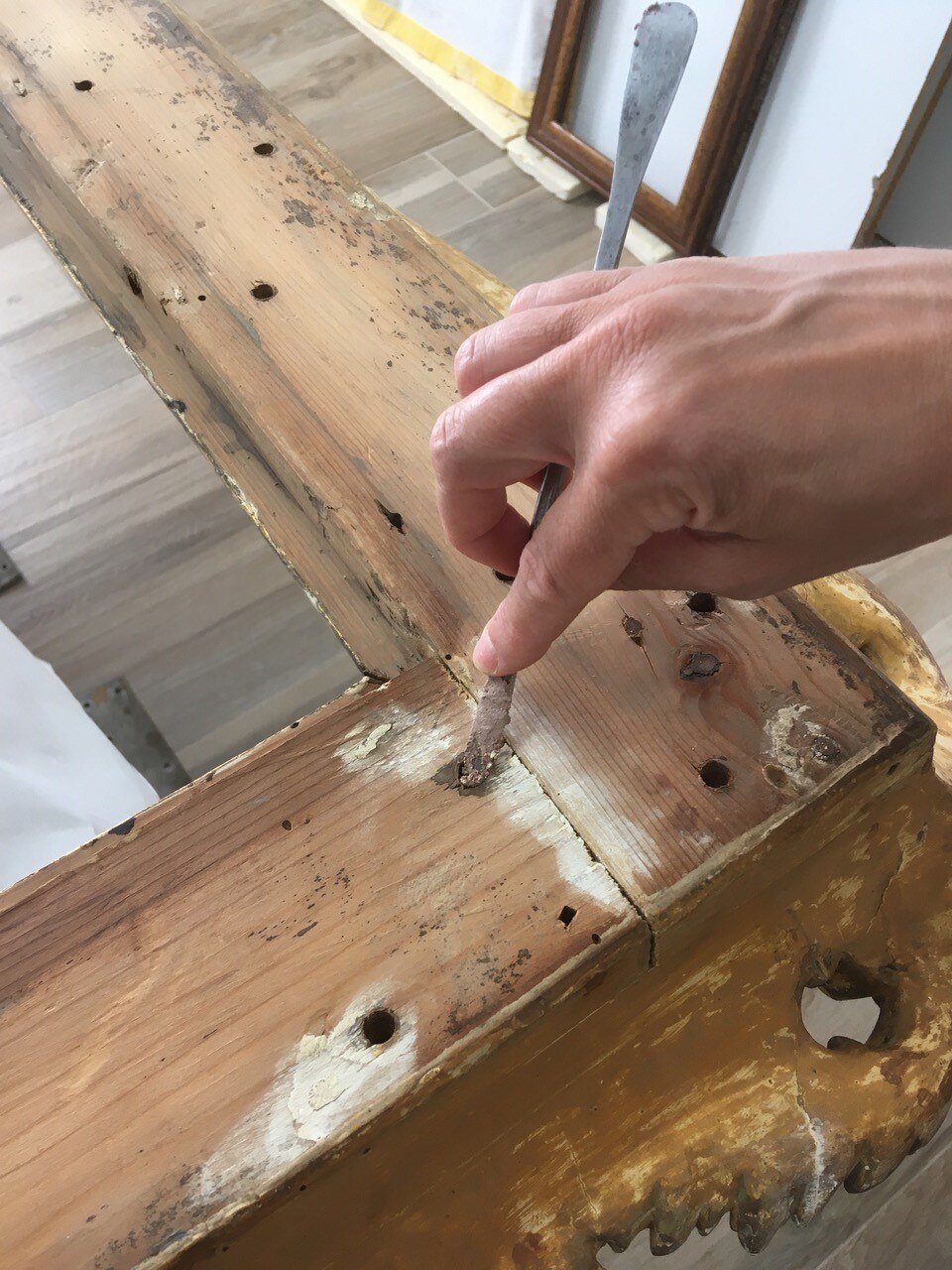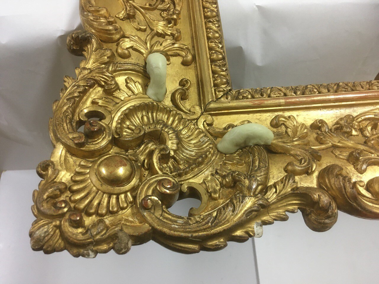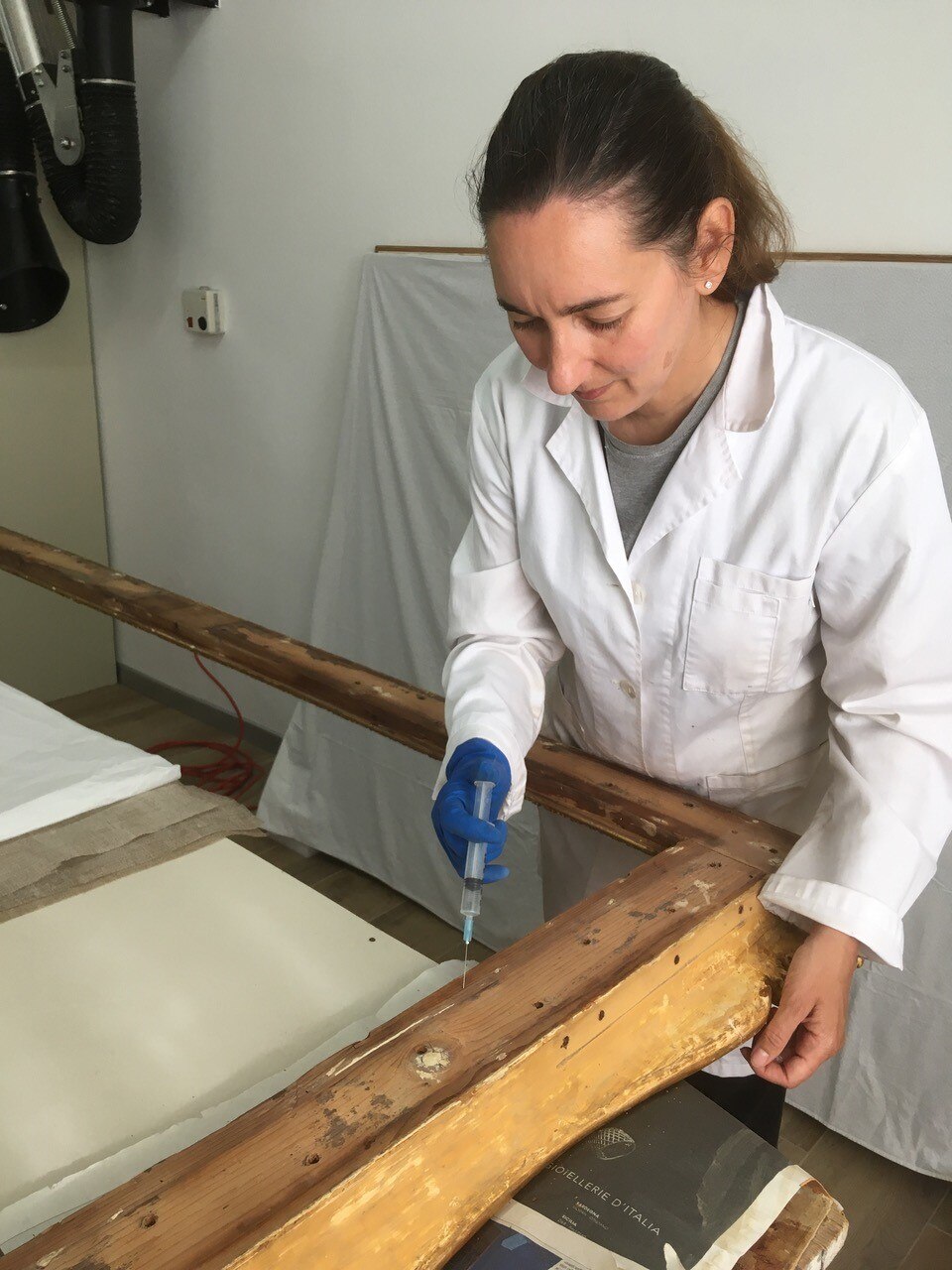 Questione di...cornice! Ecco le immagini dell’intervento sulla cornice, mentre la tela è in fase di tensionatura. Le fasi descritte sono quelle dell'applicazione del prodotto antitarlo, della pulitura, della stuccatura, e infine del rifacimento delle parti mancanti.