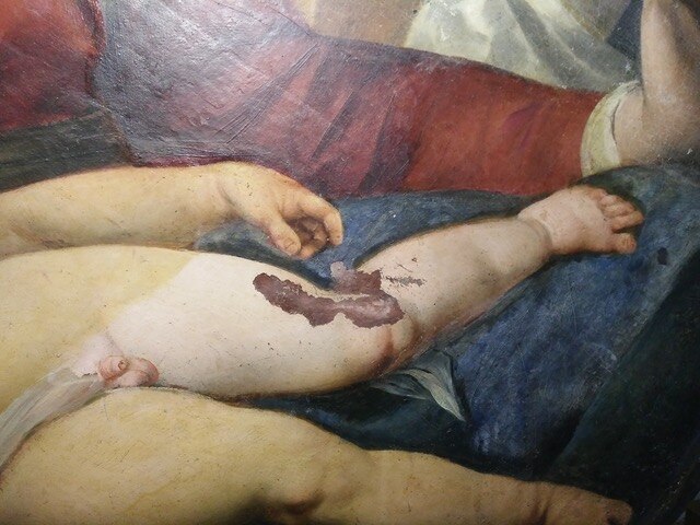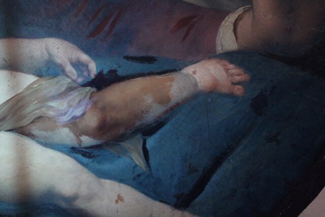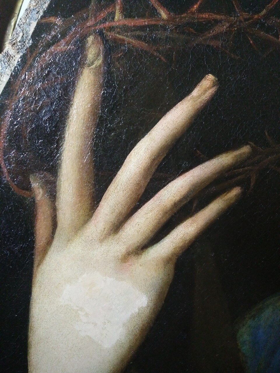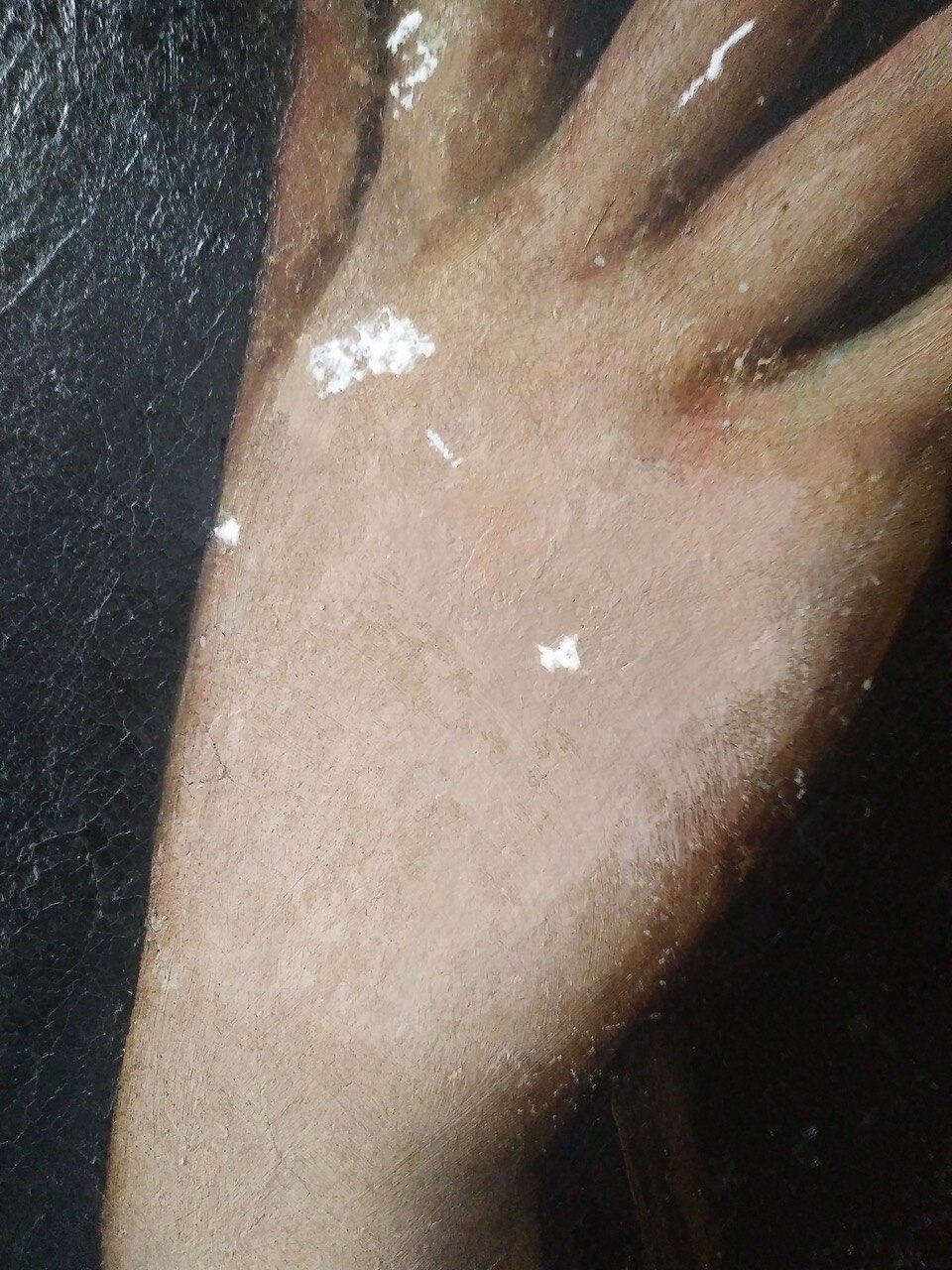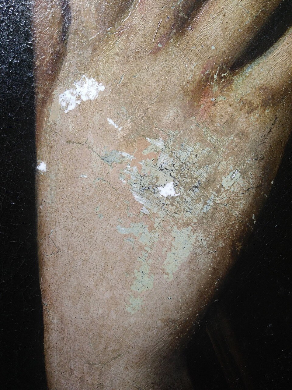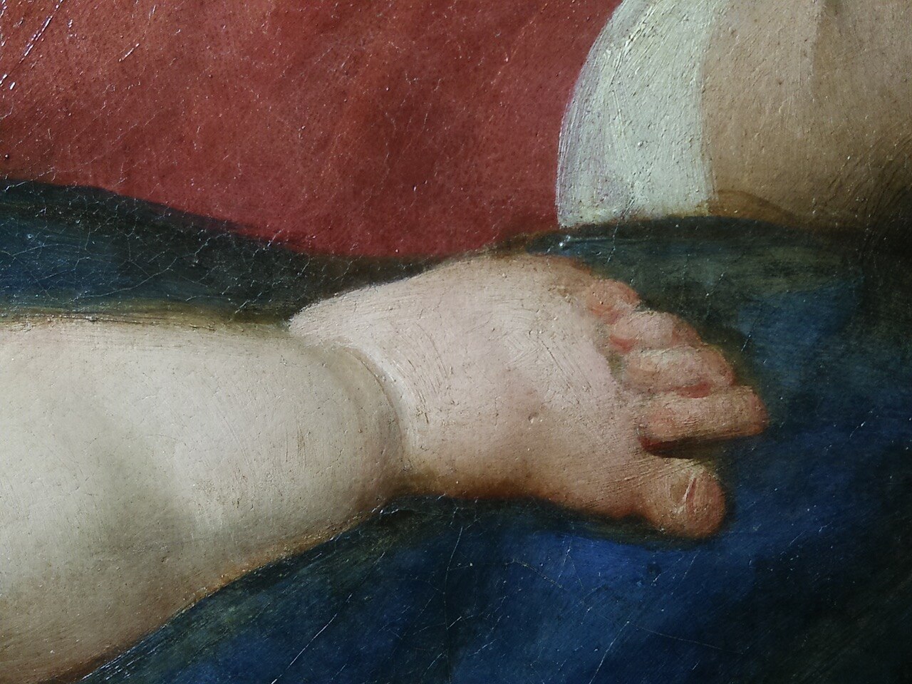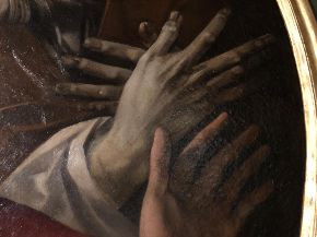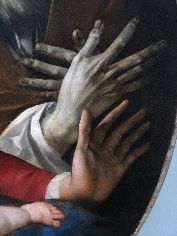 Gli ultimi ritocchi. Ecco le immagini degli ultimi ritocchi pittorici sulla mano e il polso della Vergine e di San Giuseppe.
