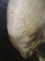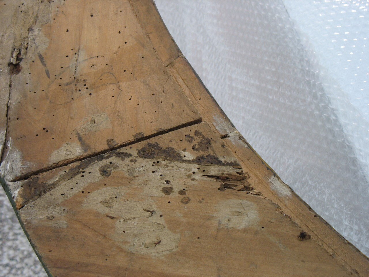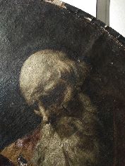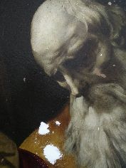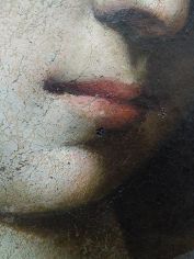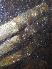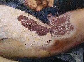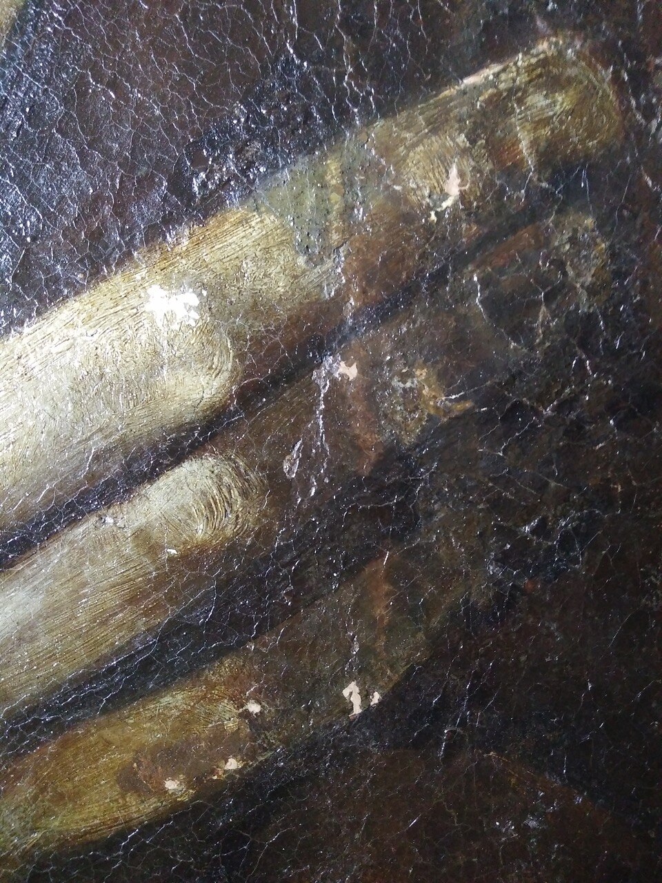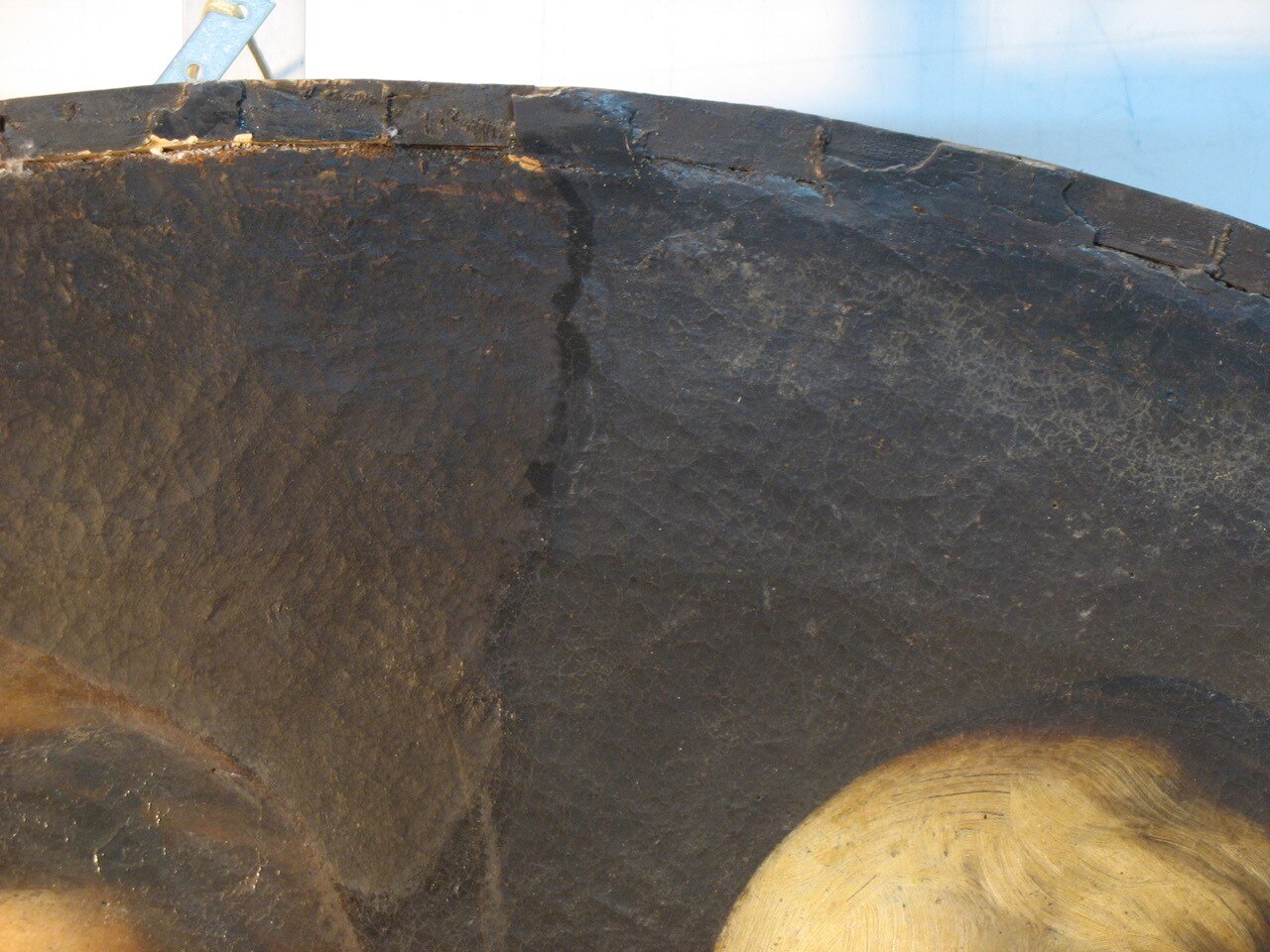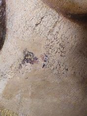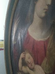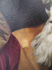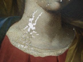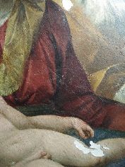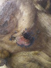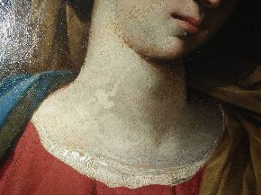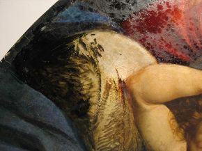 La pulitura. Le foto si riferiscono ad alcuni particolari della pulitura e all’eliminazione delle precedenti stuccature, sia sull’opera che sulla cornice.