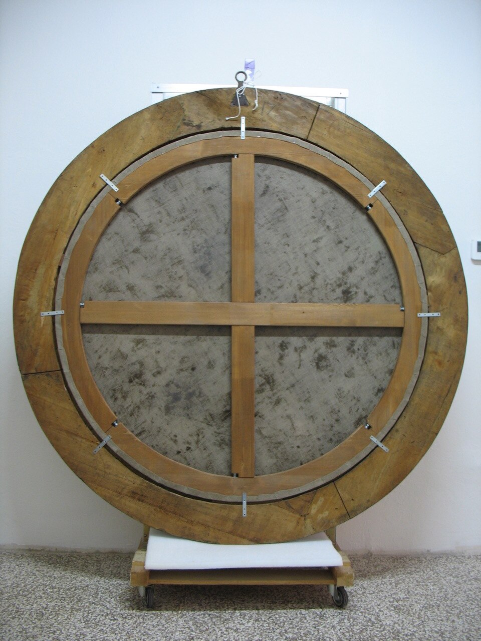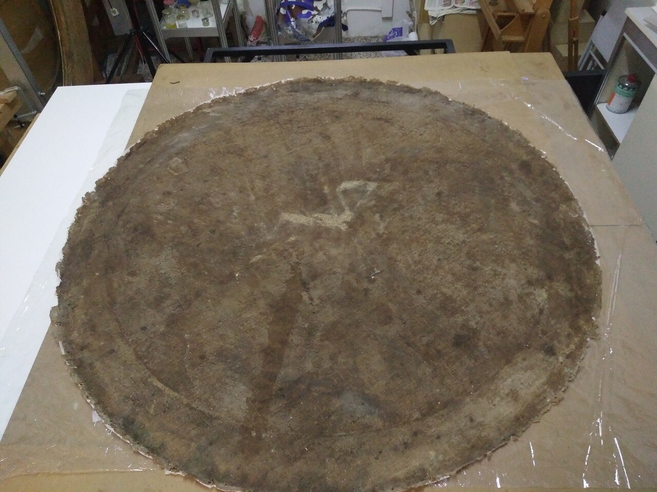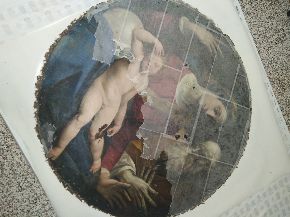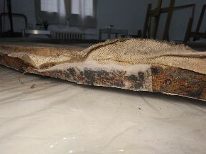 Restauro in corso! Il restauro dell'opera procede a gonfie vele: ecco le immagini delle operazioni di velatura, foderatura, tensionamento, trattamento anti-muffe e sottovuoto.
