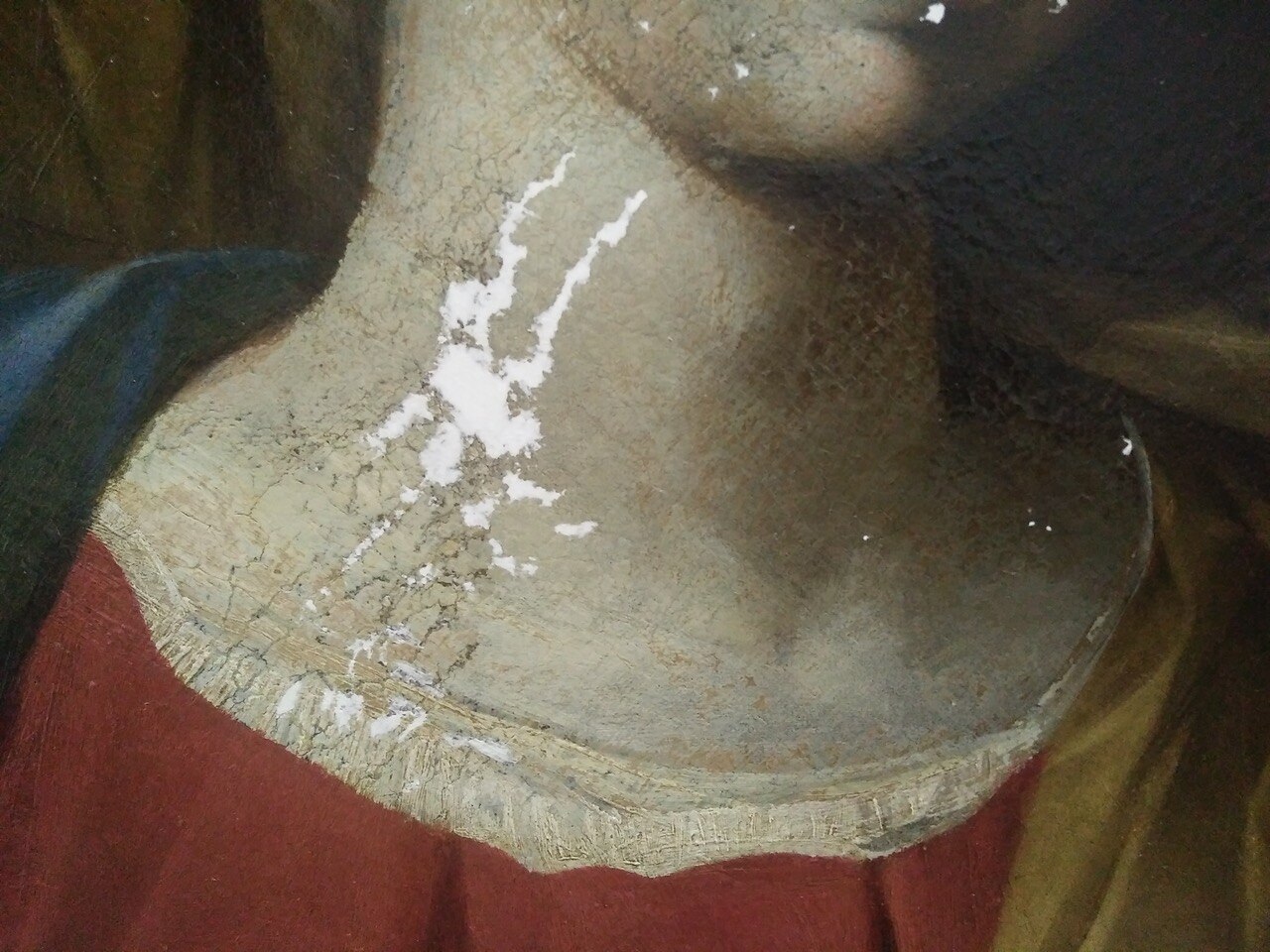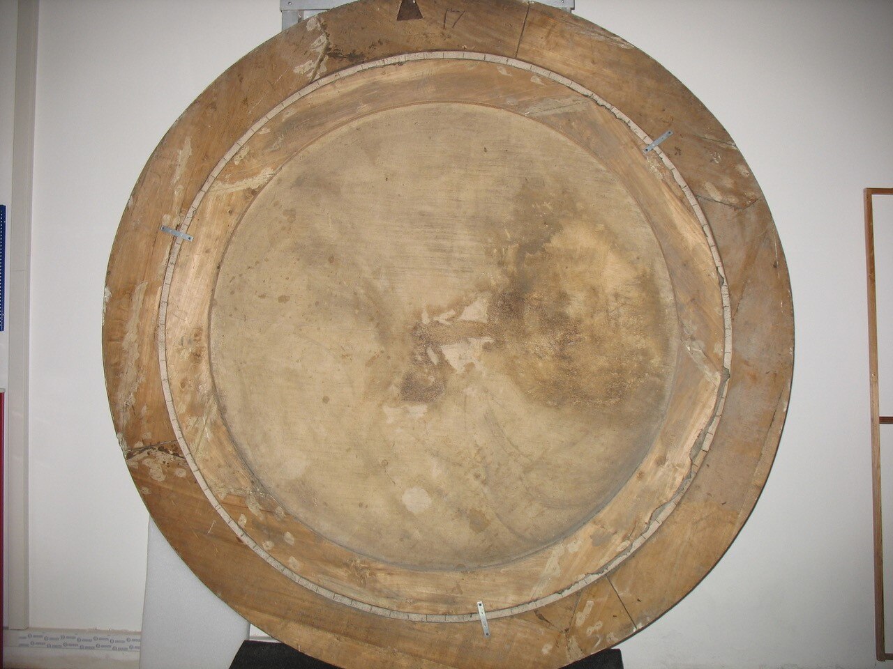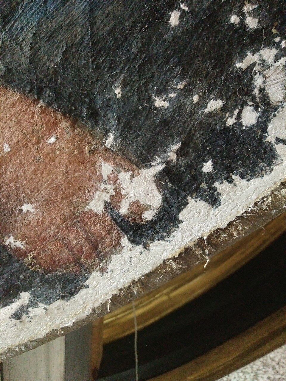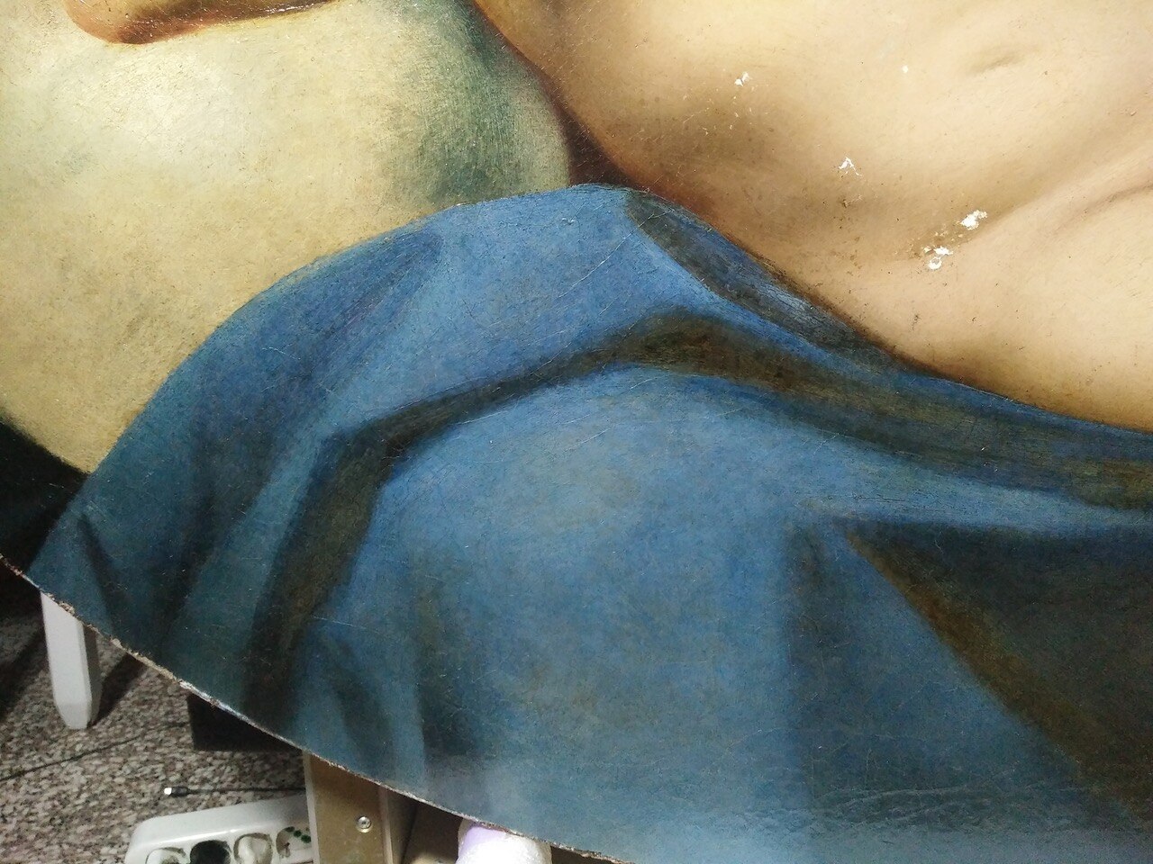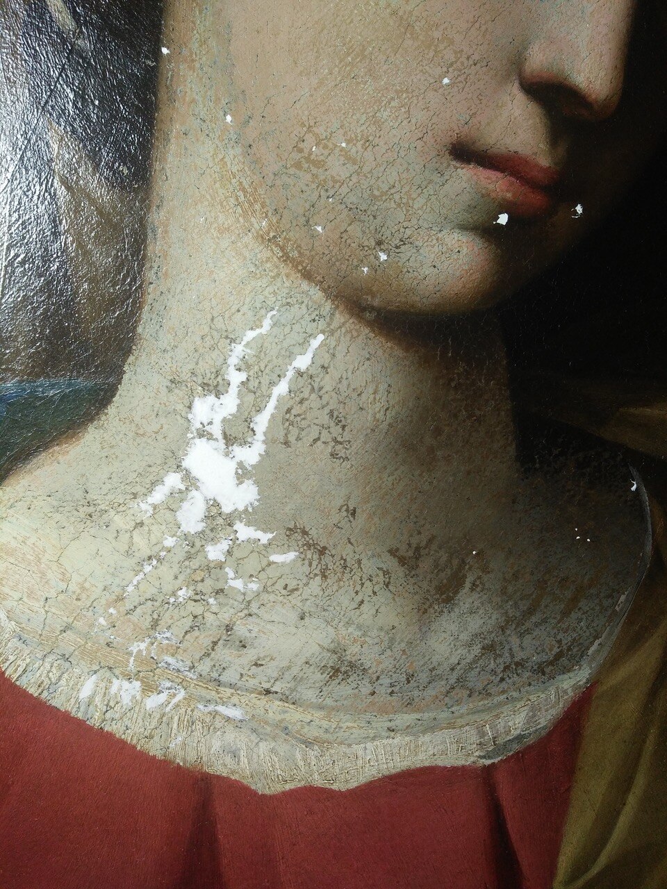 Verso la fine del restauro. Ecco le immagini delle fasi di stuccatura, di foderatura e dei primi punti di ritocco pittorico.