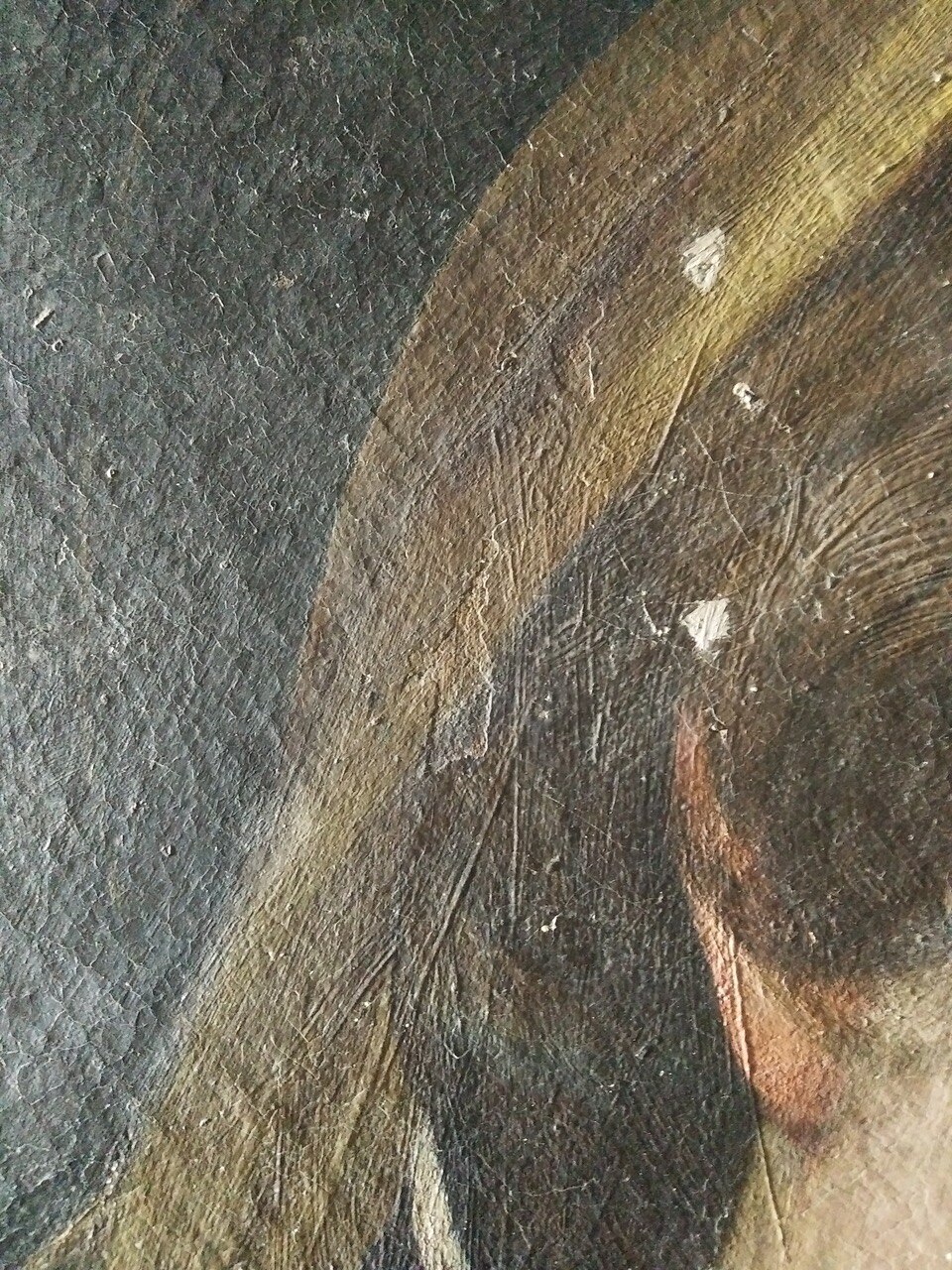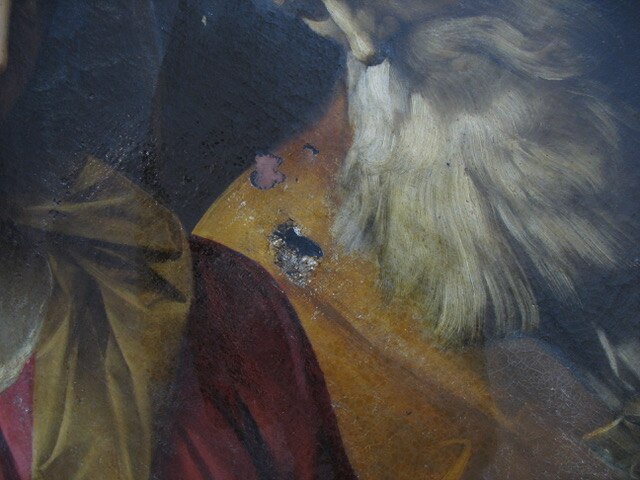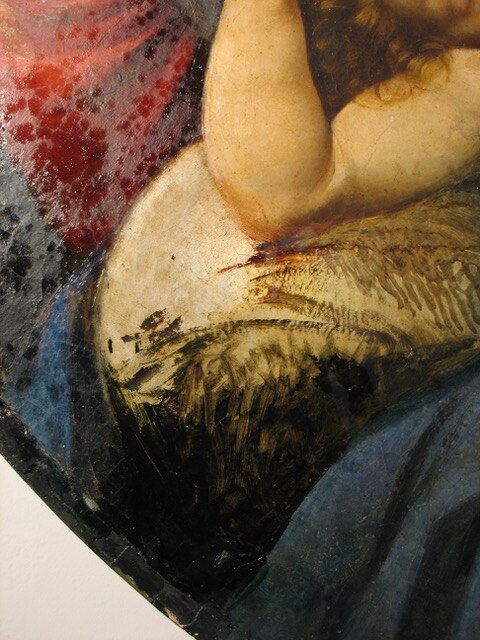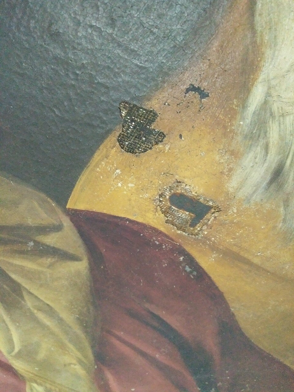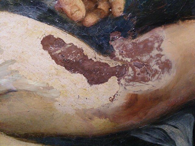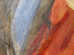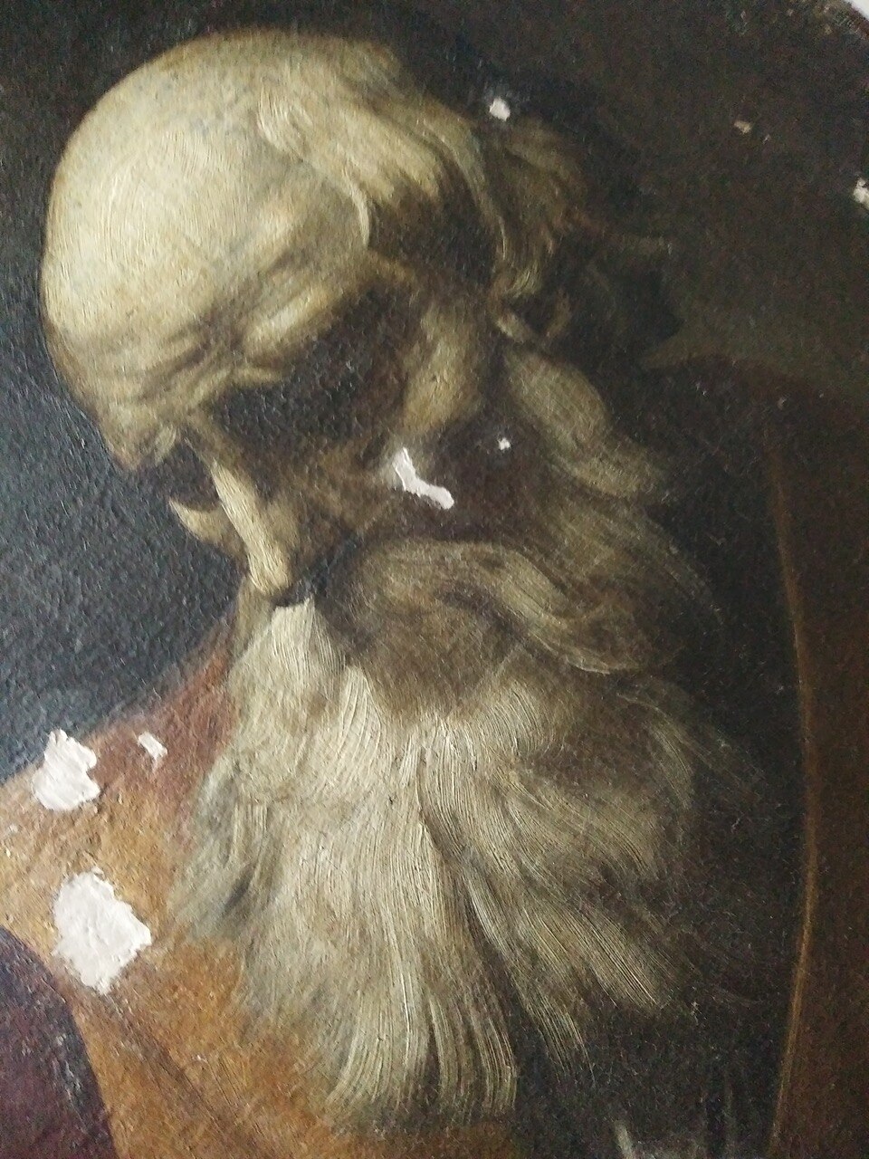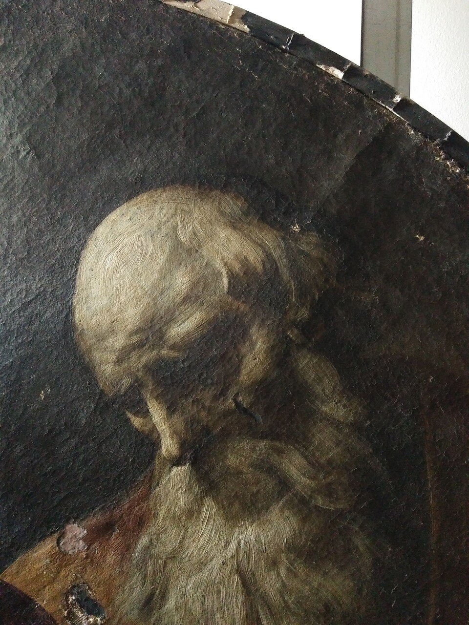 Verso la fine del restauro. Ecco le immagini delle fasi di stuccatura, di foderatura e dei primi punti di ritocco pittorico.