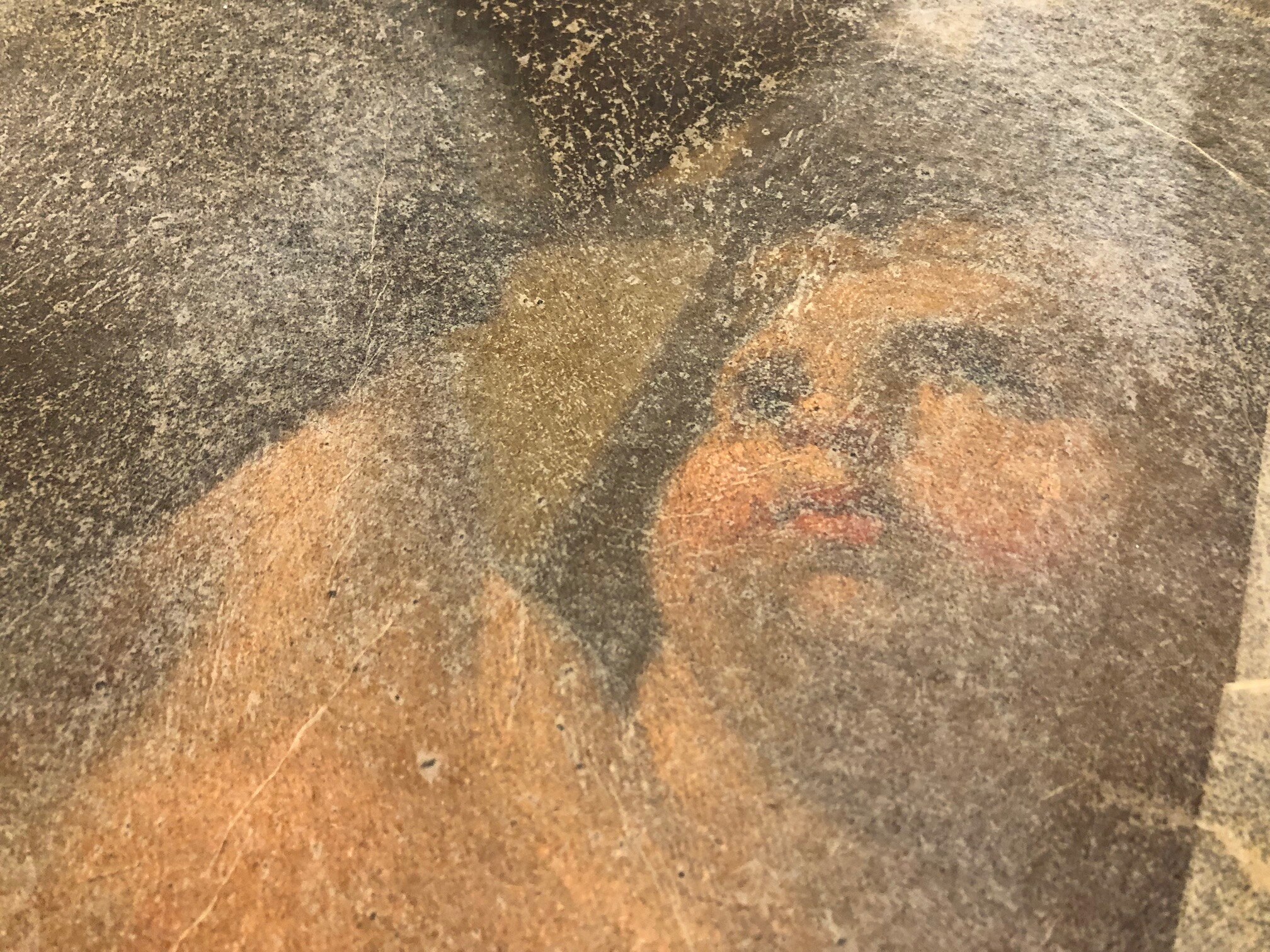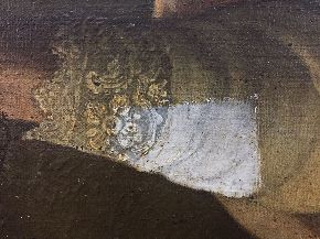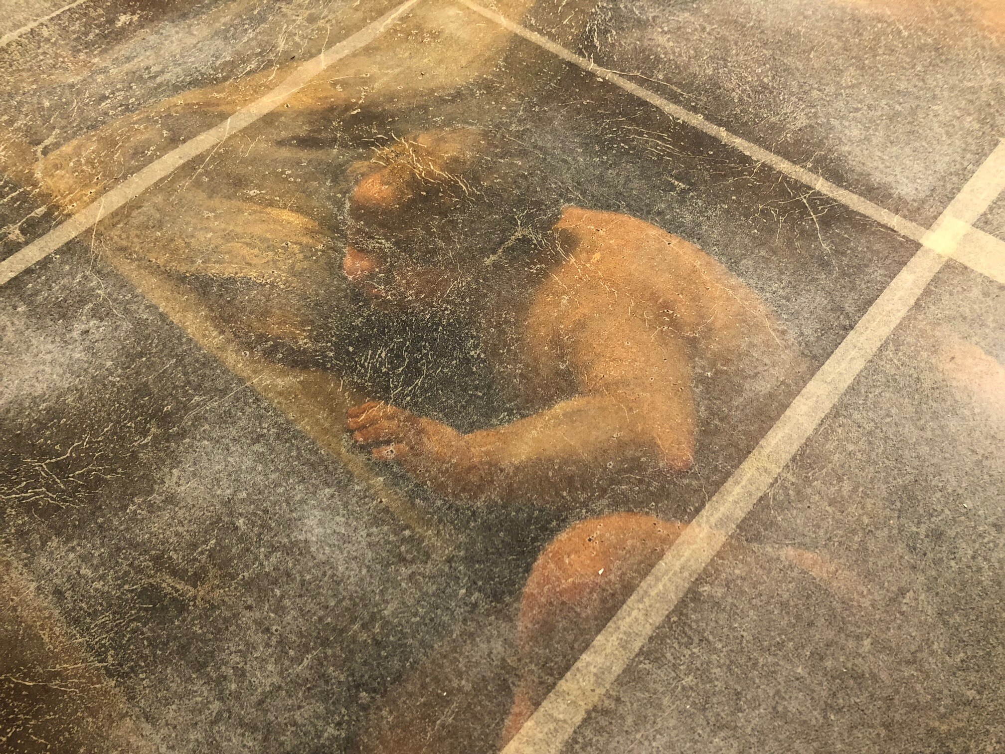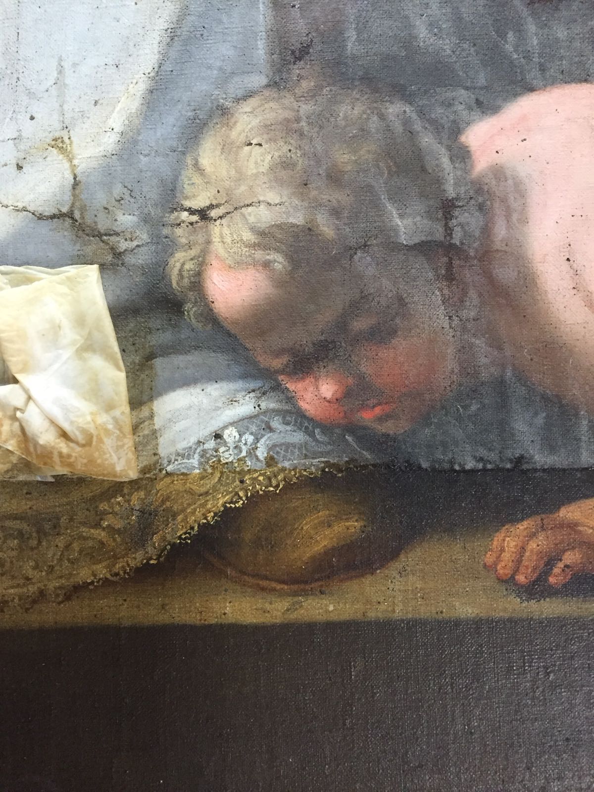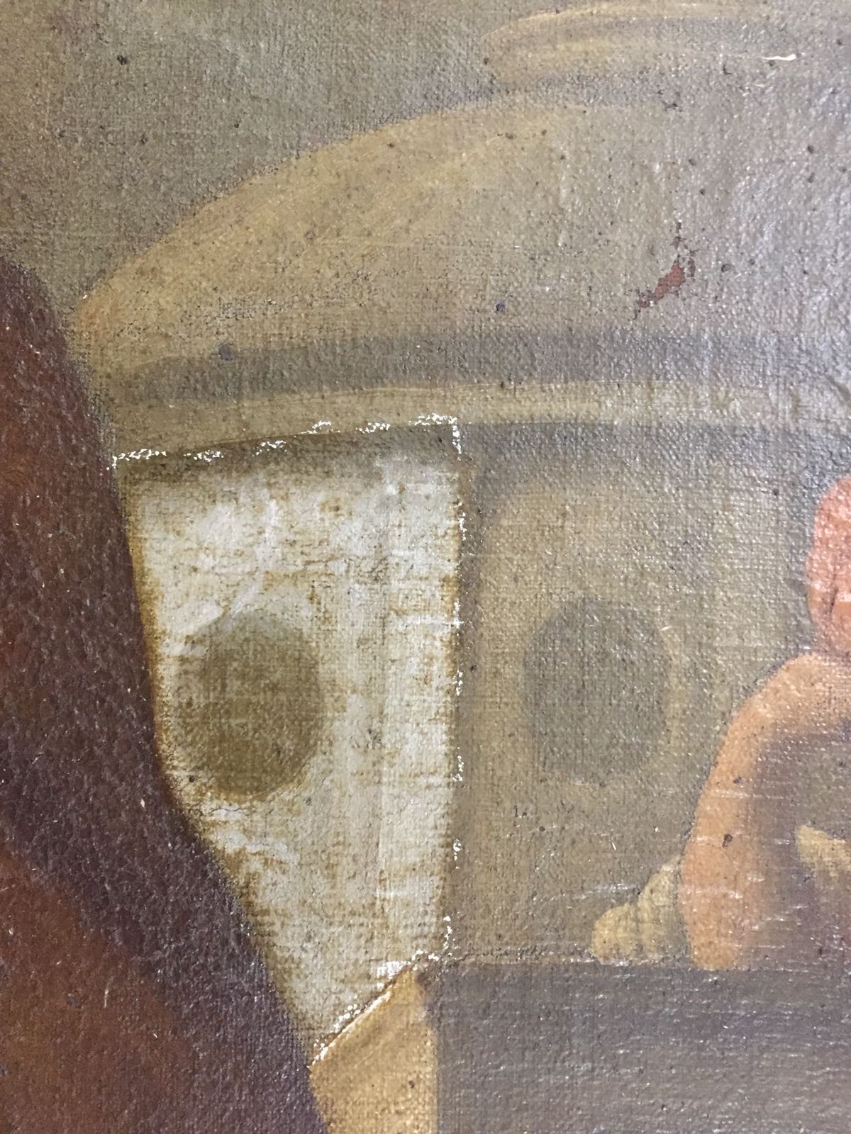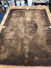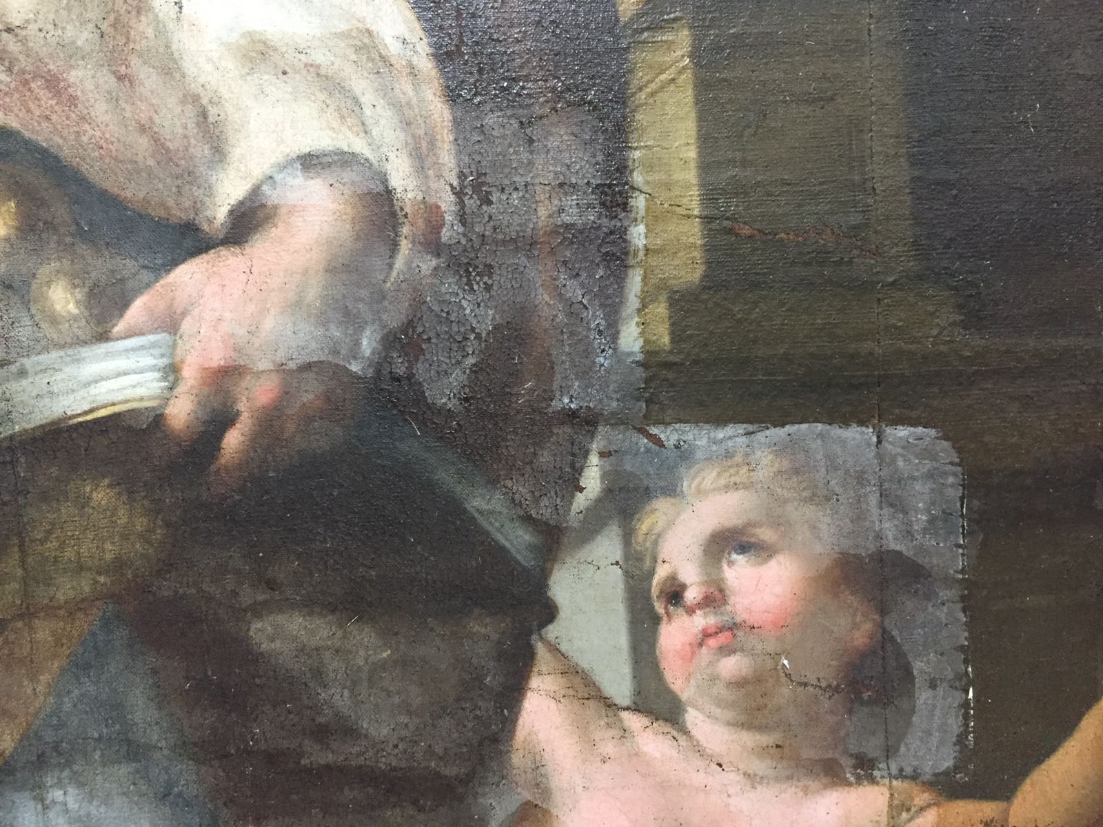 La tela pulita. Arrivati alla conclusione della pulizia della tela, siamo pronti per iniziare la fase di foderatura, il ritocco pittorico e l’applicazione del protettivo finale.