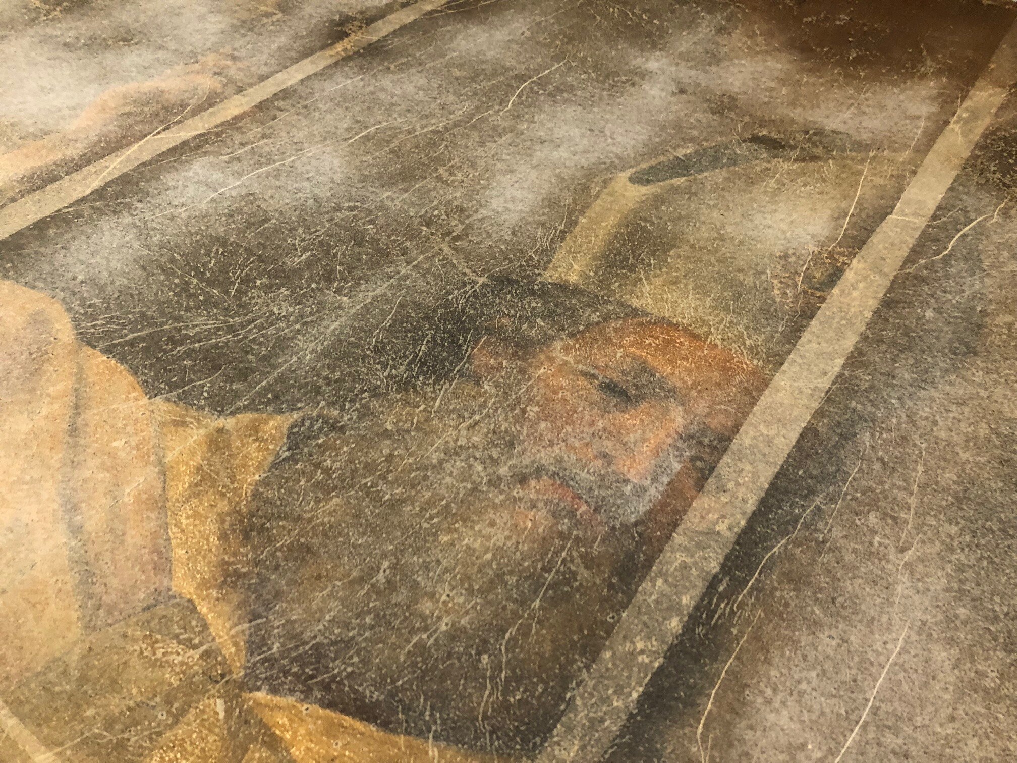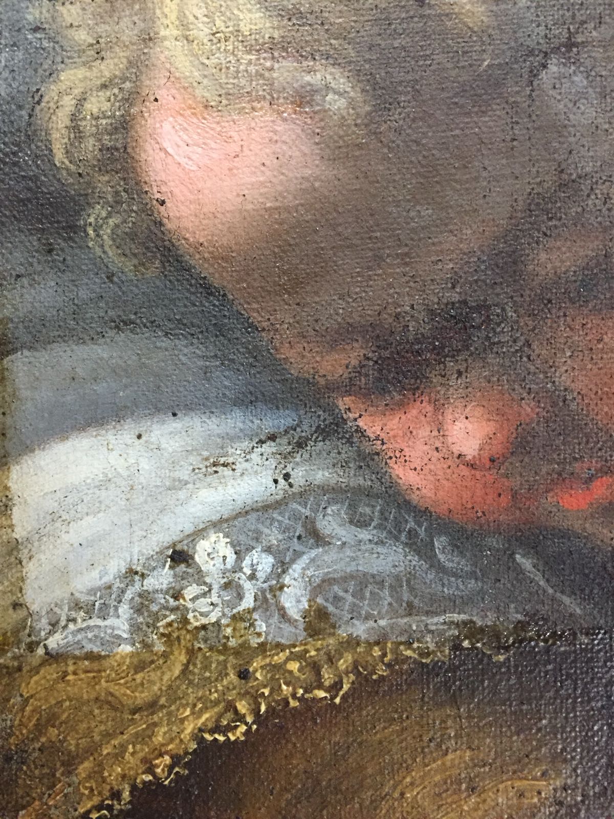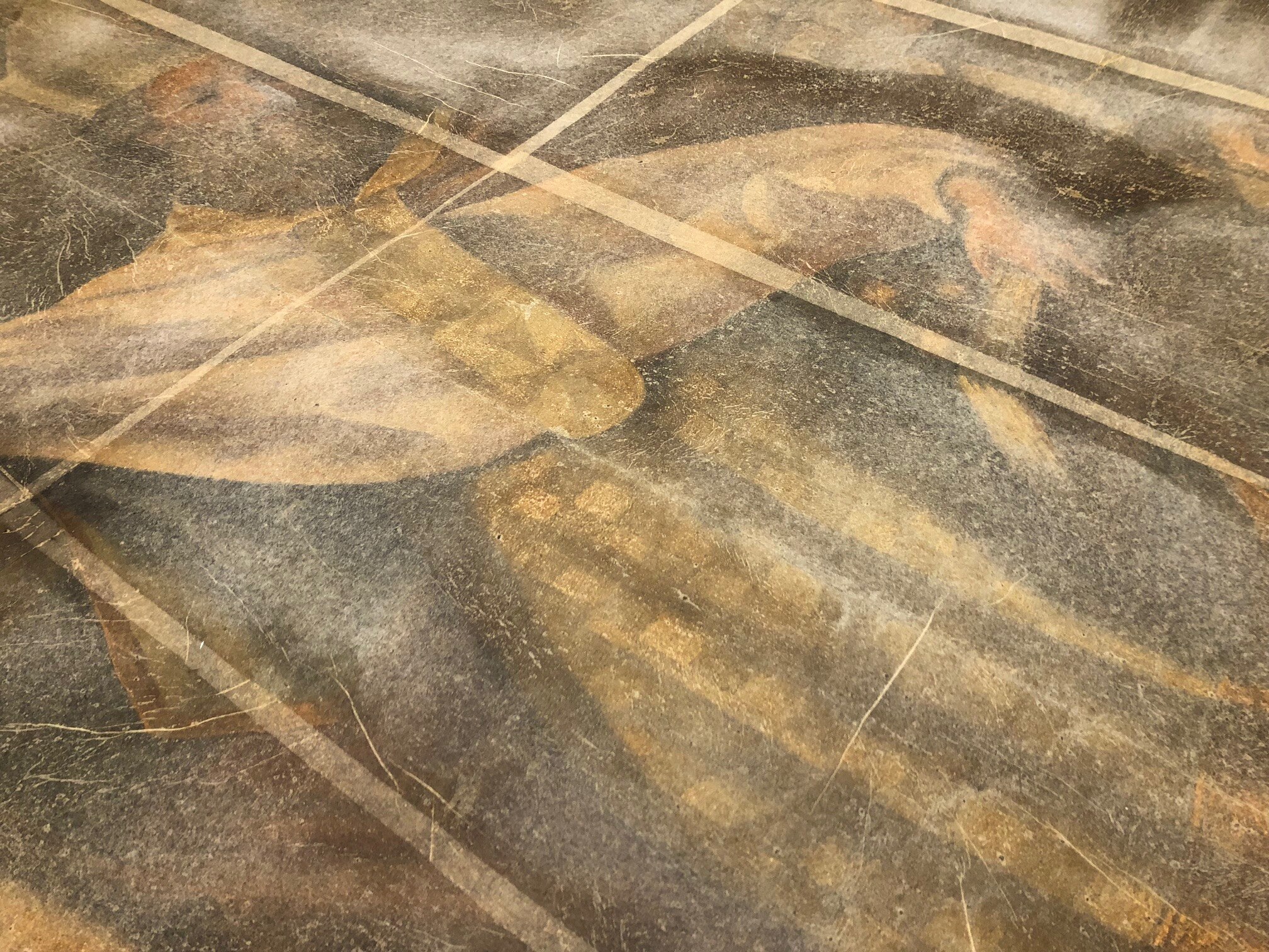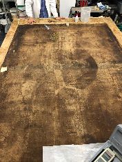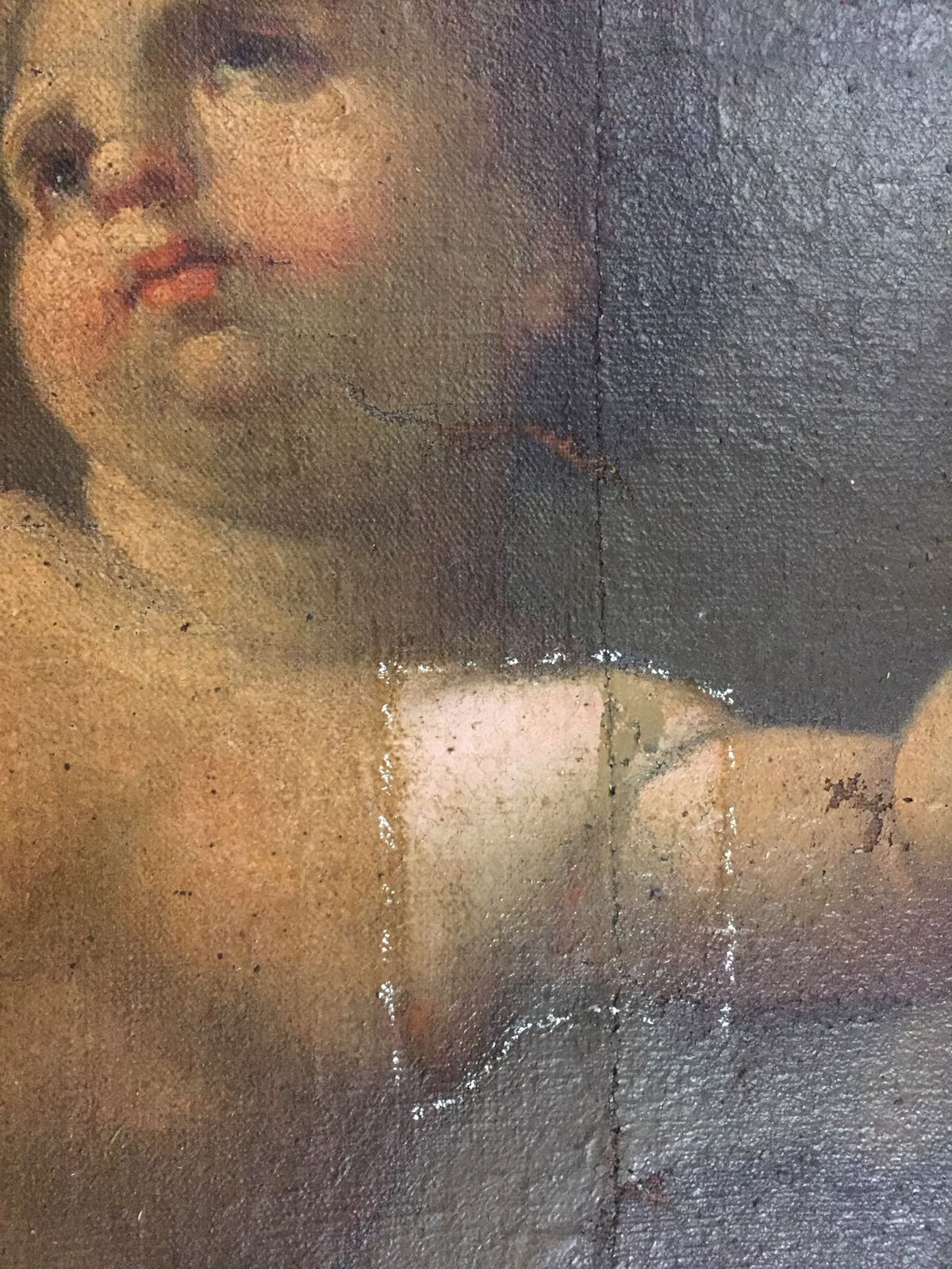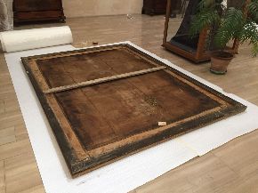 La tela pulita. Arrivati alla conclusione della pulizia della tela, siamo pronti per iniziare la fase di foderatura, il ritocco pittorico e l’applicazione del protettivo finale.