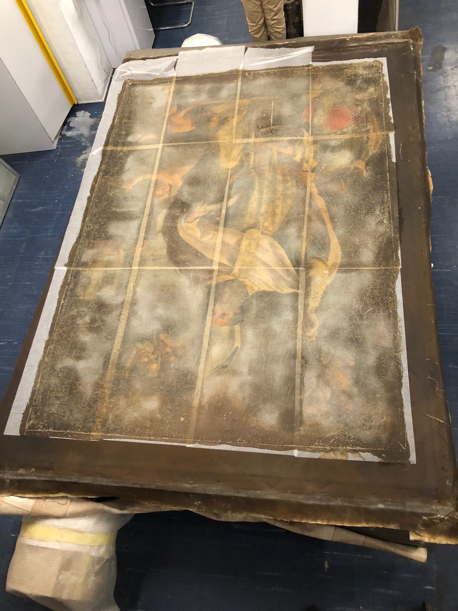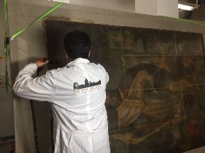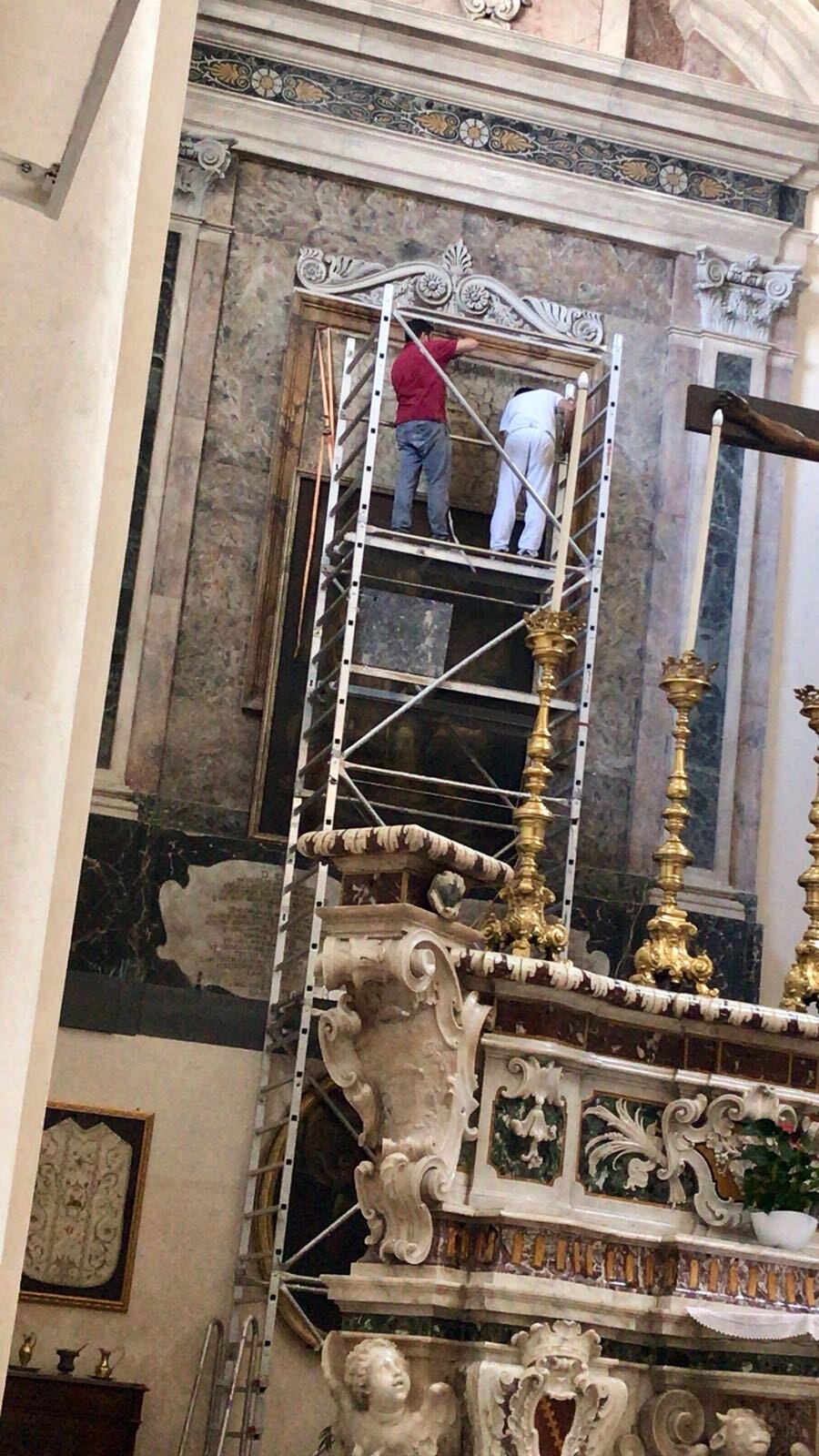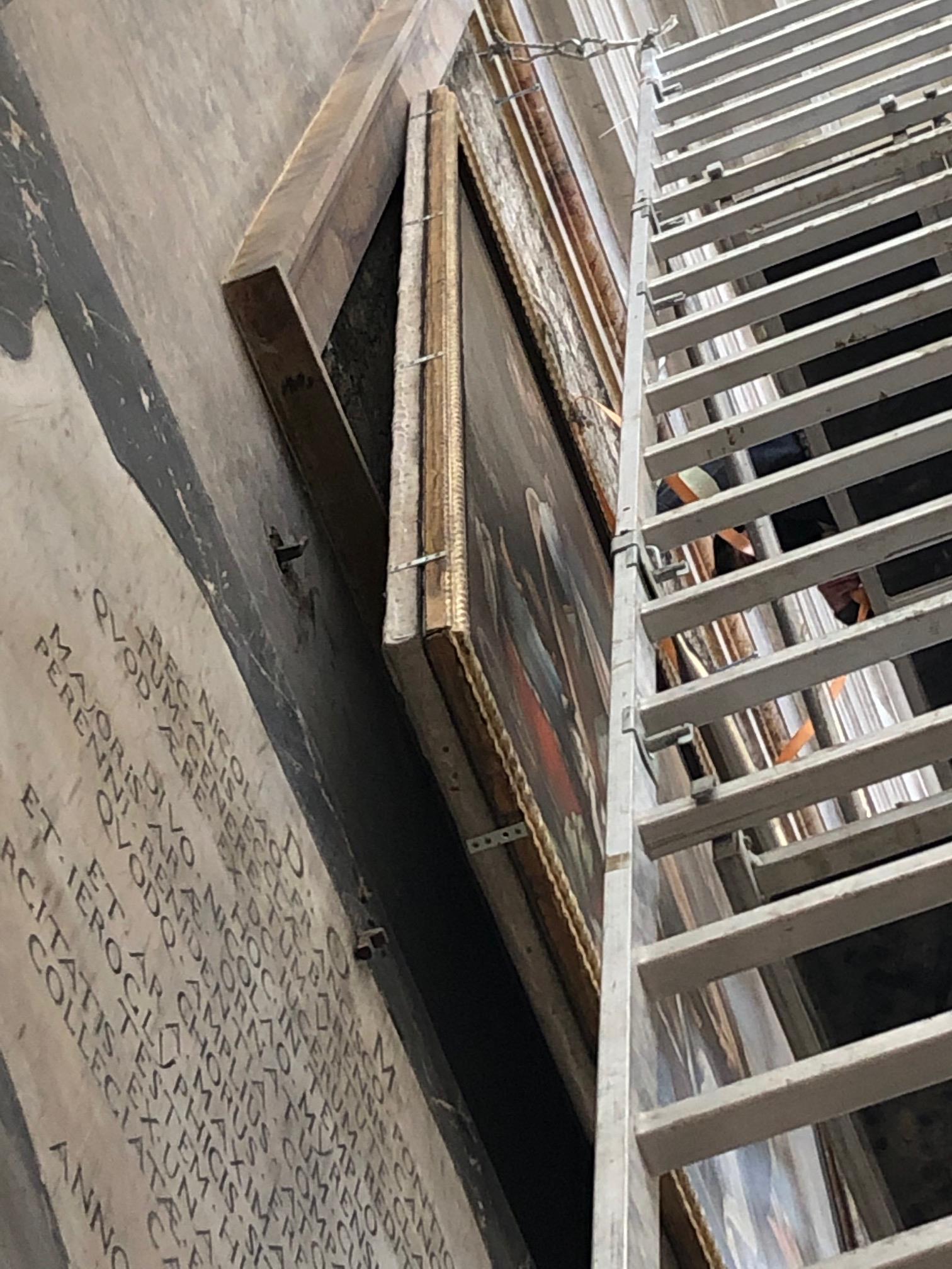Pronti, si parte! Ecco le prime immagini della tela che viene smontata dal suo supporto nella Chiesa di Andria. Nella gallery, puoi vedere tutti i particolari della pregevole opera, pronta per tornare al suo splendore!