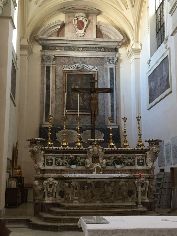 L’opera, collocata sull’abside della chiesa, sarà smontata dalla sua cornice e analizzata per individuarne l’effettiva condizione conservativa. Dopo una accurata pulitura del substrato pittorico, si procederà con la reintegrazione della materia pittorica mancante, previa stuccatura delle lacune.