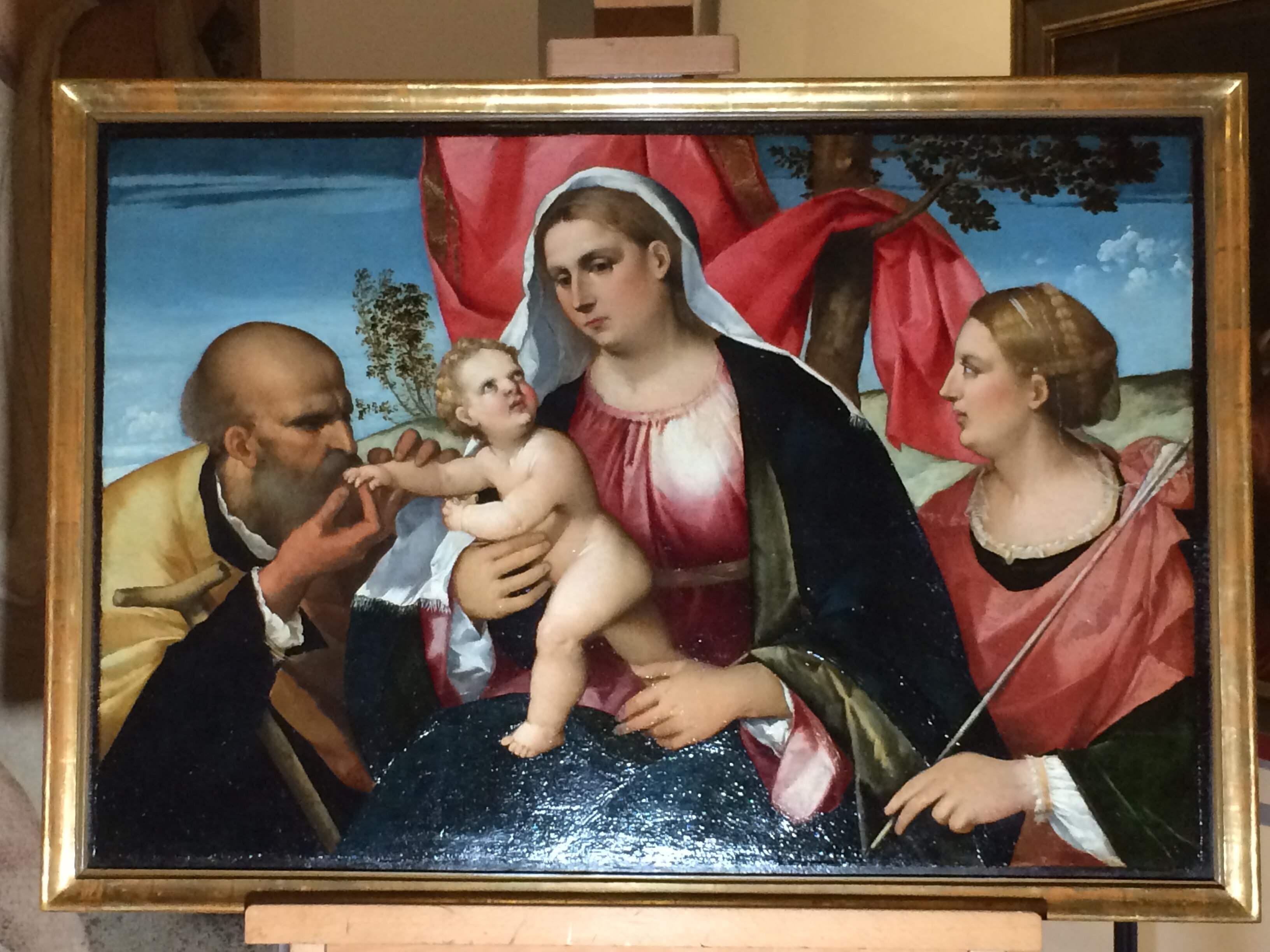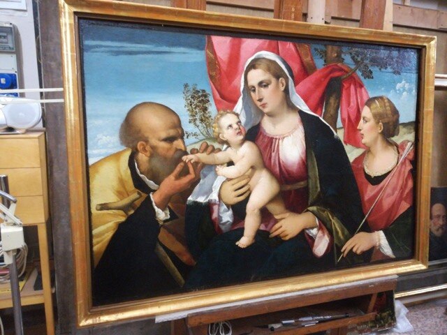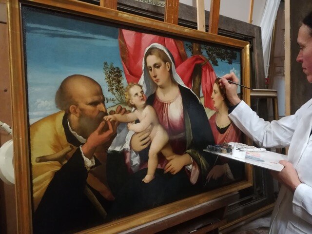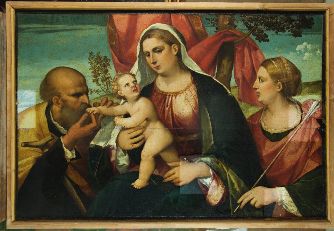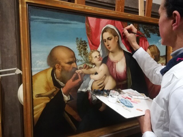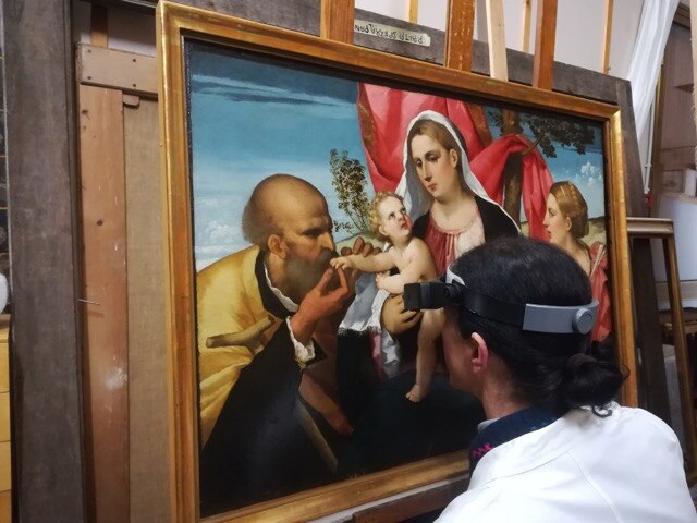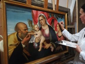 Ripercorrendo insieme le tappe del restauro, ricordiamo che il dipinto su tavola presentava discrete condizioni conservative, ma richiedeva tuttavia un sollecito intervento di restauro per ristabilire la continuità del film pittorico, in diversi punti sollevato e lacunoso, e recuperare, al di sotto della vernice alterata per ossidazione (aggiunta in precedenti restauri), la luminosità e brillantezza cangiante della tavolozza originale. Questo avrebbe consentito così di apprezzare finalmente i raffinati trapassi cromatici che resero celebre la pittura veneziana del tempo.