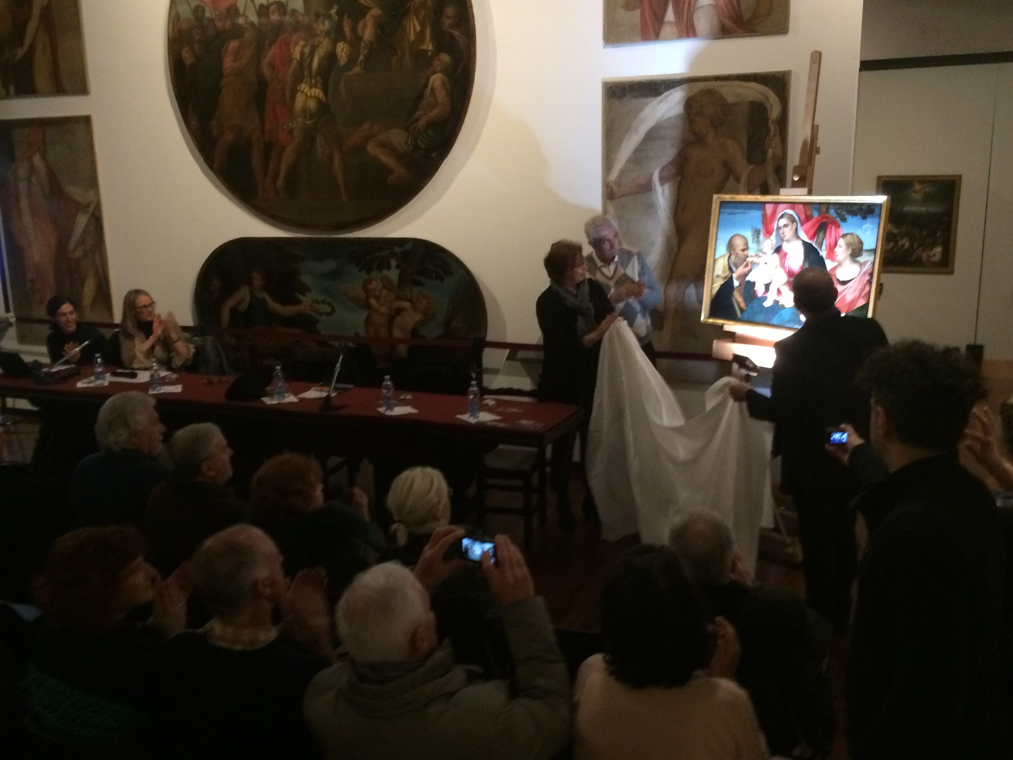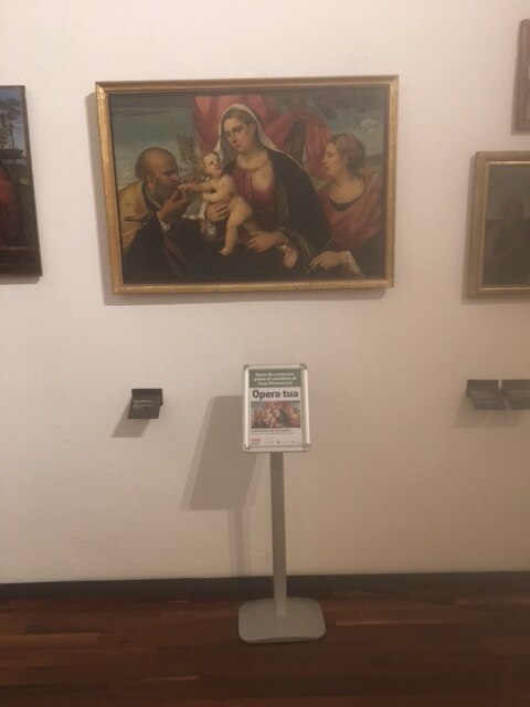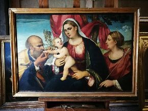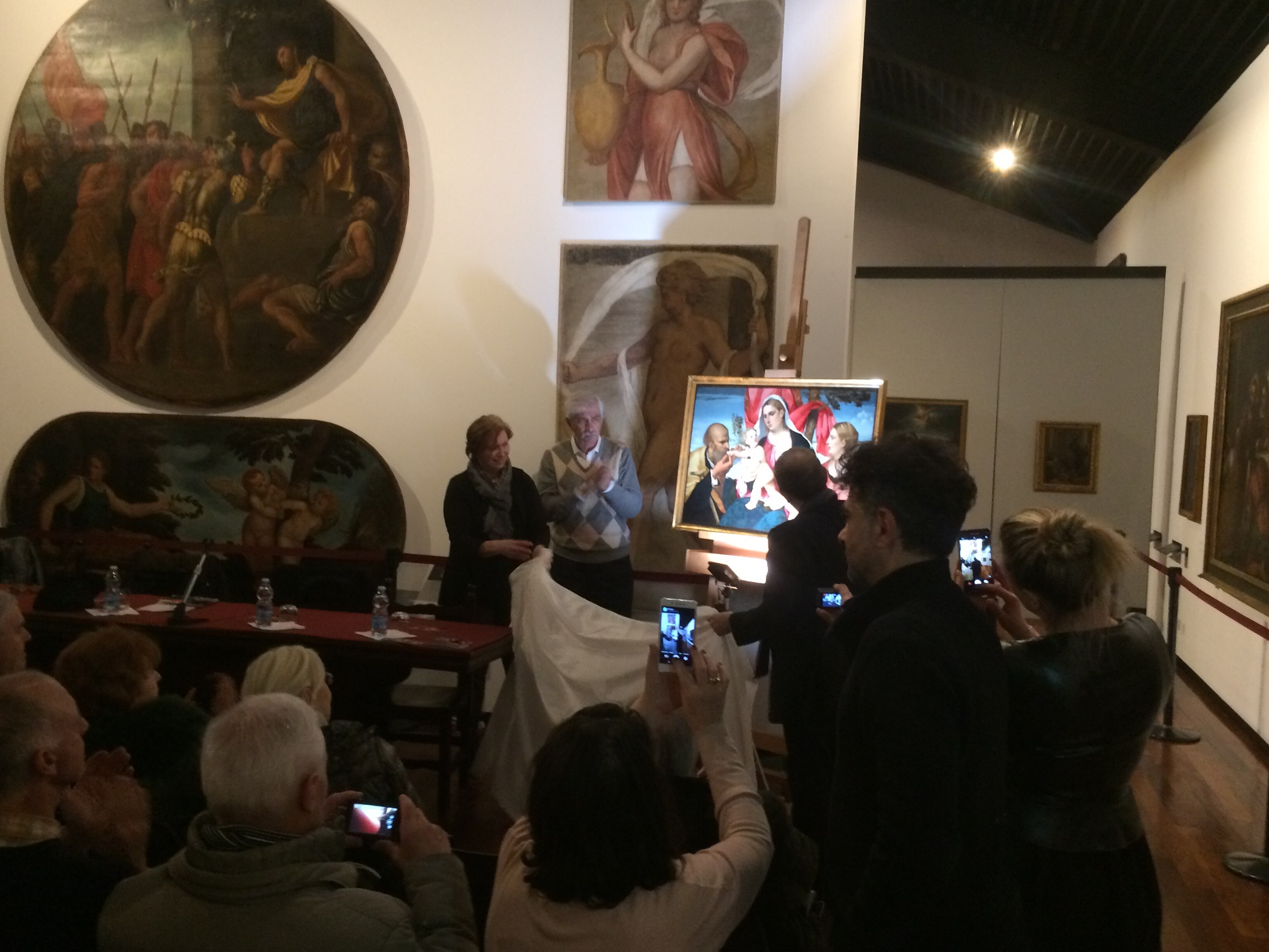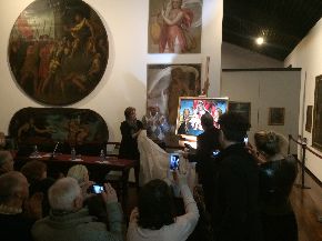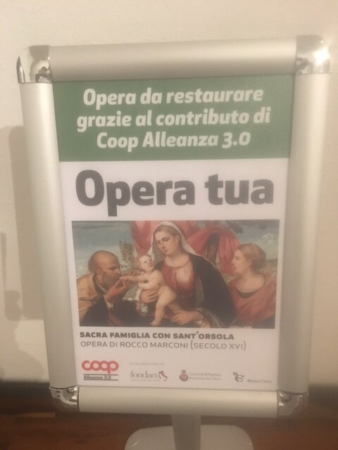 Si svela la tela restaurata! Ecco giunto al termine il restauro di Sacra Famiglia con Sant'Orsola, oggi svelata agli Eremitani alla presenza di Andrea Colasio, assessore alla cultura del Comune di Padova, Dino Bomben vicepresidente vicario Coop Alleanza 3.0, Davide Banzato Direttore Musei e Biblioteche, Elisabetta Gastaldi Funzionario Musei Civici, Museo d’Arte Medioevale e Moderna.