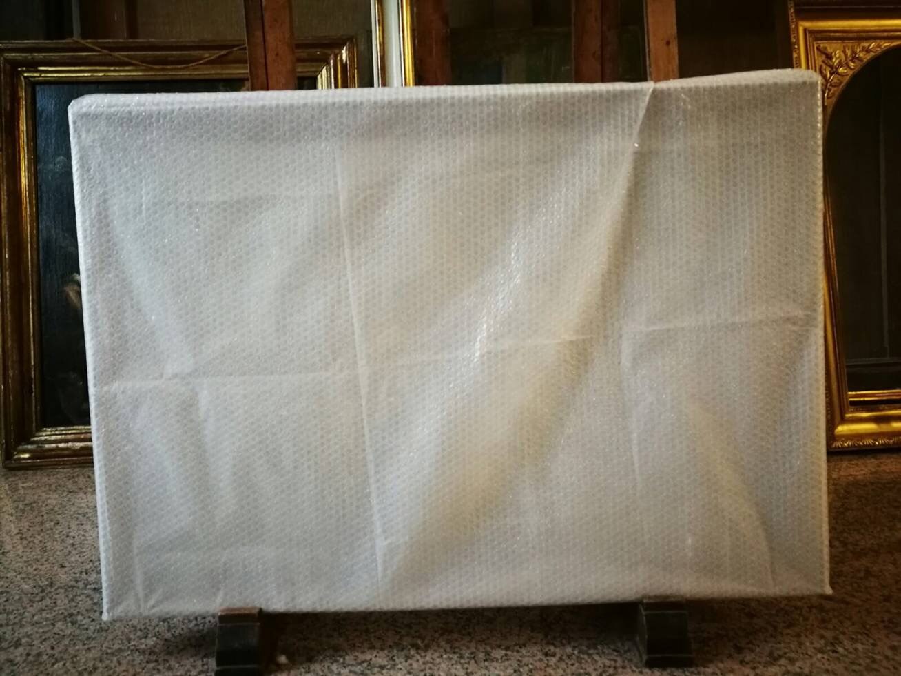 La tela è arrivata in laboratorio! Il dipinto di Rocco Marconi è pronto per i primi rilievi fotografici per la localizzazione delle zone maggiormente degradate della tela, al fine di procedere al suo consolidamento. Vi aggiorneremo presto con i primi risultati!