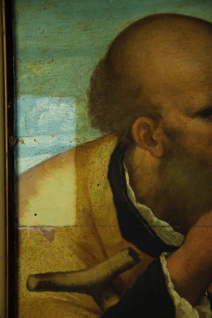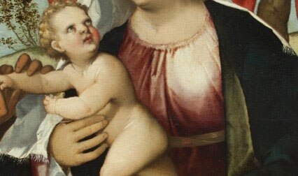 Un dipinto con soggetto devozionale, in cui i volumi corporei si distendono e il formato si amplia, a testimonianza dei contatti e delle influenze di Palma il Vecchio e di Bellini sull’autore Rocco Marconi. Attivo nel XVI secolo a Venezia con la qualifica di “Depentor”, Rocco Marconi è noto principalmente per la lunga serie di pitture a tema religioso, testimonianze di una vera e propria specializzazione in una produzione che gli consentì di ritagliarsi un ruolo di un certo spicco nel mercato artistico veneziano.