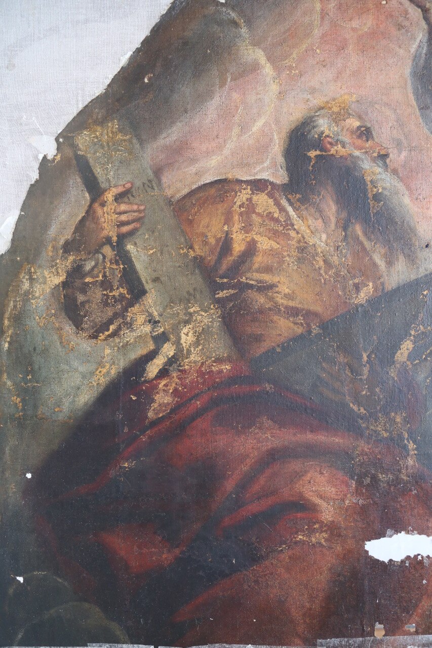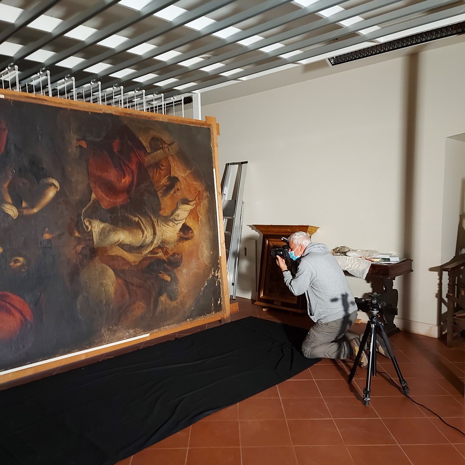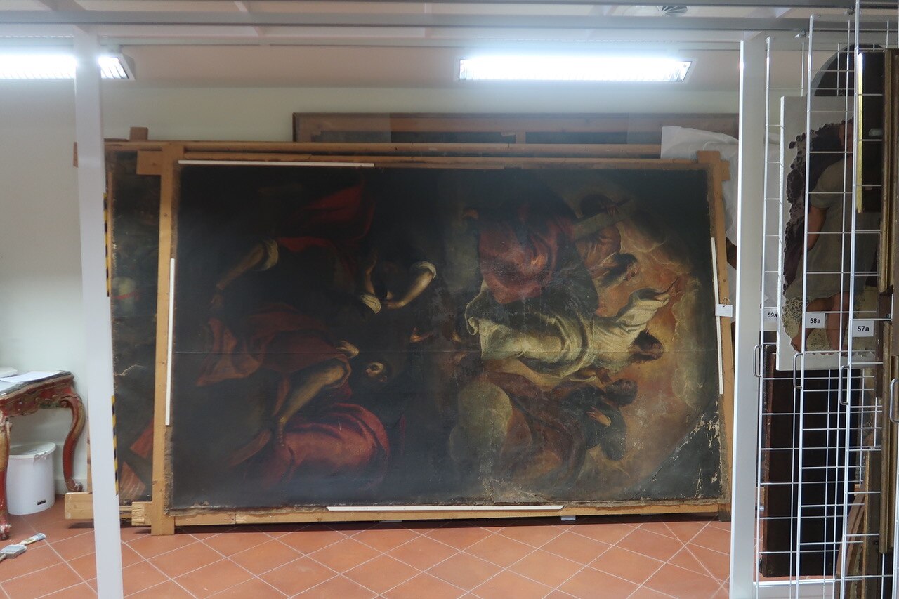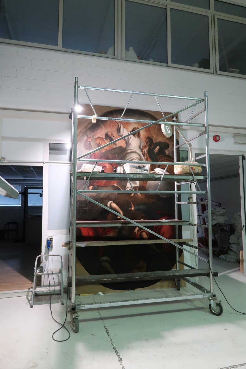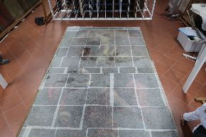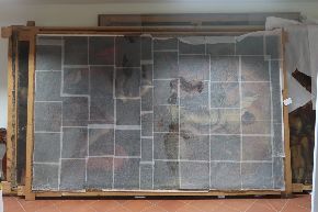 Il rilievo fotografico. Ecco le prime foto da Udine sul rilievo fotografico per il degrado dell'opera. Le prossime fasi saranno quelle di velinatura e rullatura dell’opera che verrà trasportata in laboratorio.