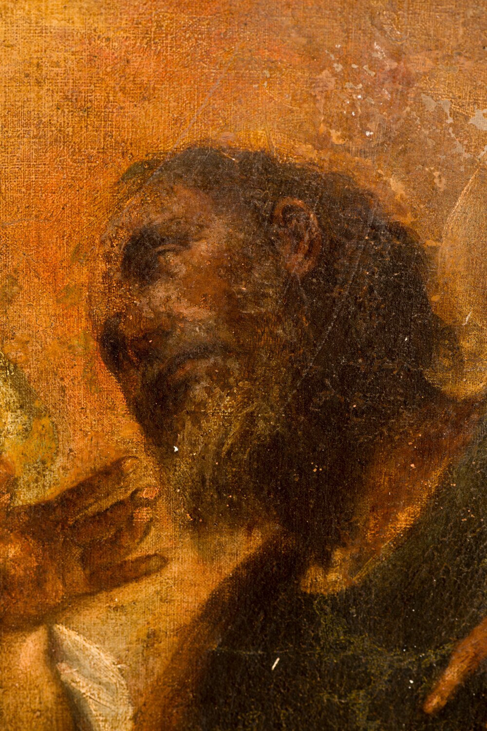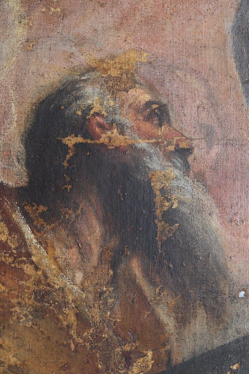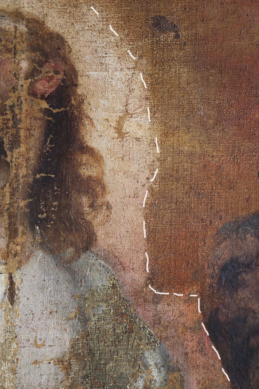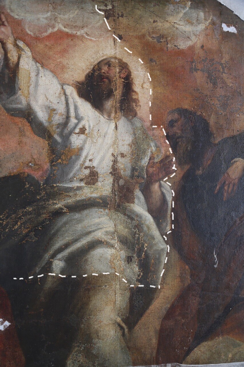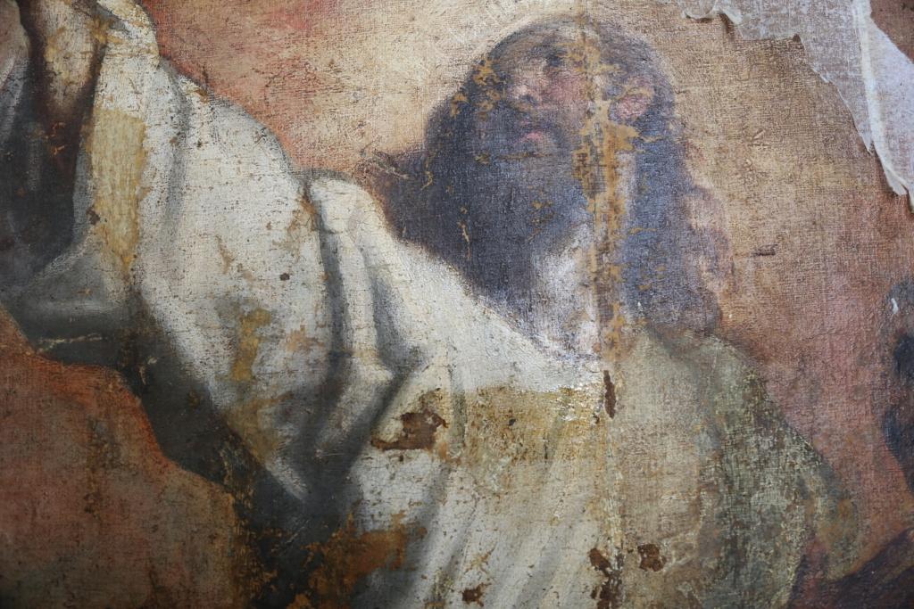 Il ritocco e il reintegro pittorico. Ecco alcune foto che evidenziano il ritocco ed il reintegro pittorico in alcune parti. Si tratta di un restauro veramente molto delicato viste le condizioni critiche dell’opera (basti vedere i cedimenti della tela nelle foto).