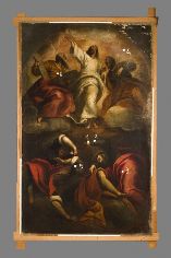 In origine collocata nella non più esistente Chiesa di Santa Barbara di Udine, questa Trasfigurazione attribuita a Palma il Giovane (1544 – 1628) vede Gesù raffigurato tra Mosè e il profeta Elia tra le nubi.