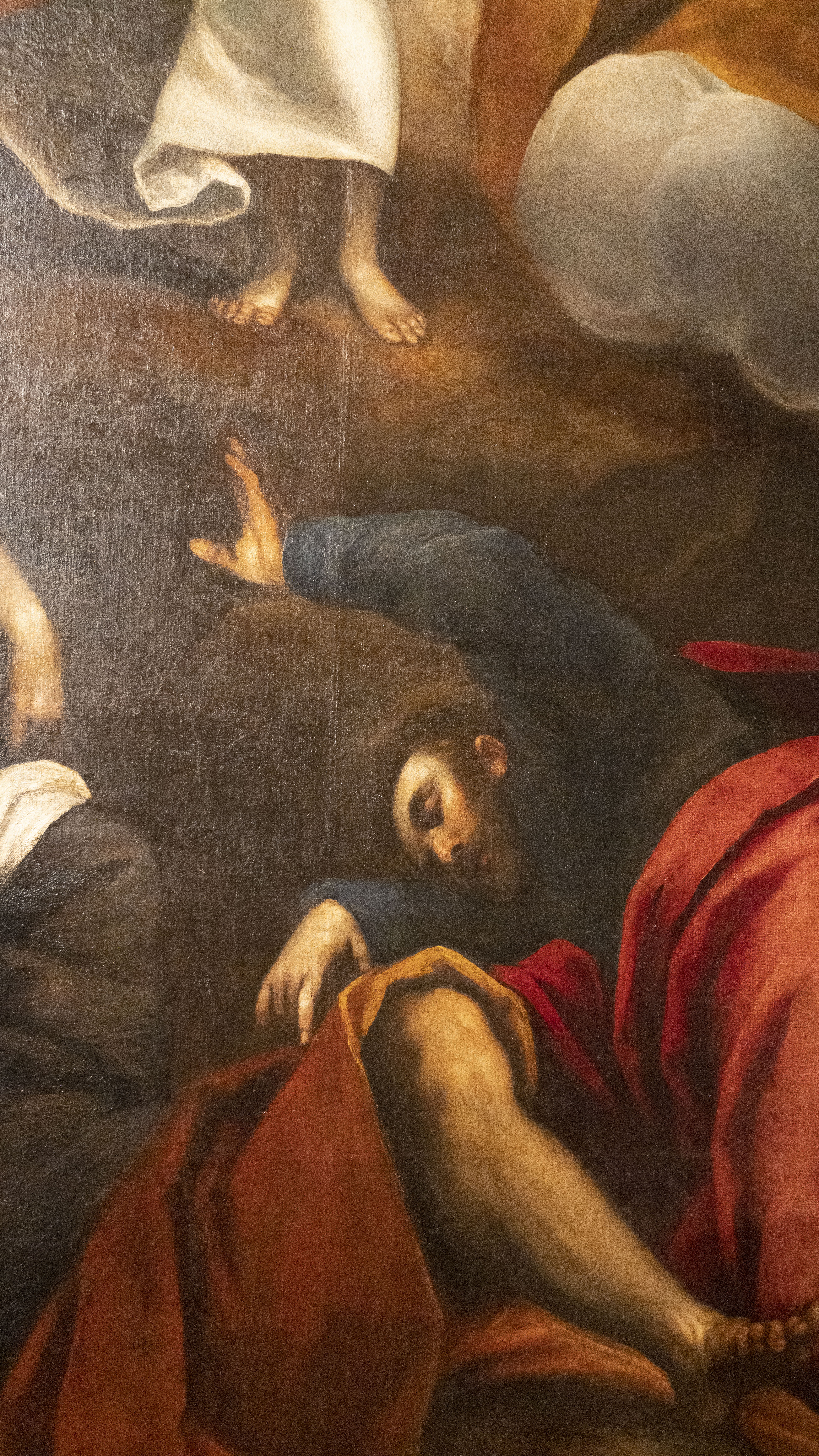 Nella parte inferiore del quadro possiamo ammirare gli apostoli Pietro, Giacomo e Giovanni sconvolti dall’apparizione. Attualmente l’opera è conservata nei depositi dei Musei Civici di Udine.