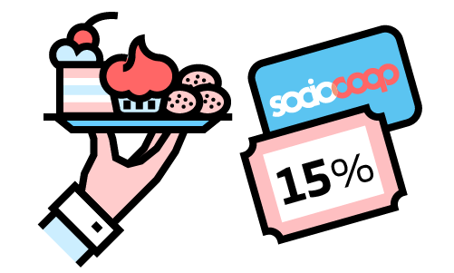 Solo per te da sabato 8 a venerdì 14 febbraio c'è uno sconto del 15% sui prodotti freschi della pasticceria (a banco e confezionati). Sono esclusi i prodotti in promozione, e lo sconto è valido su una spesa massima di 100€, con uno sconto massimo di 15€. Lo sconto è personale, ed è caricato direttamente sulla tua Carta socio Coop. Nel periodo dell’iniziativa, lo sconto si attiverà in automatico una sola volta al primo acquisto di prodotti del reparto indicato, al passaggio della Carta socio.